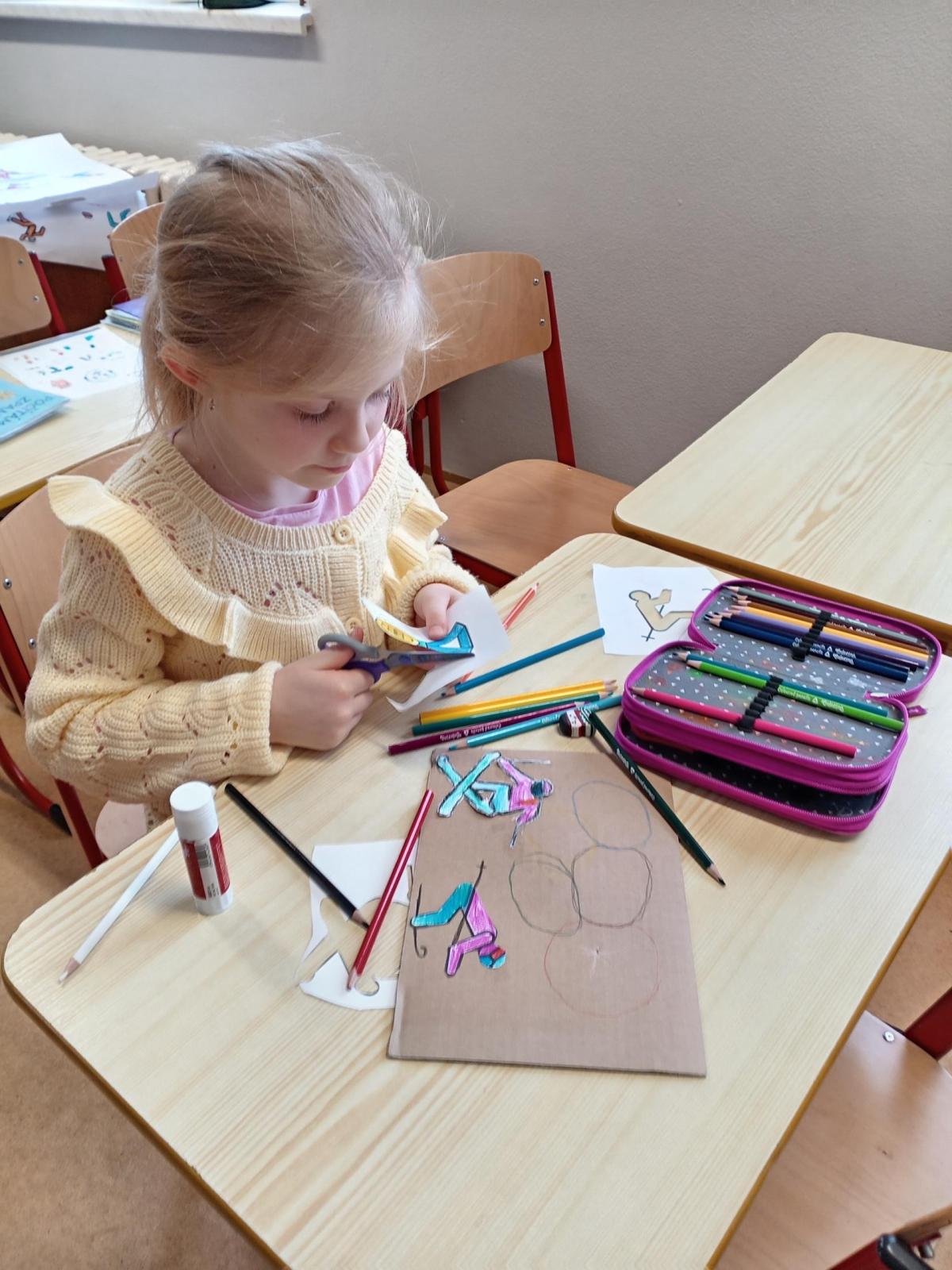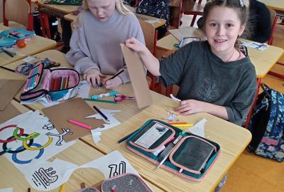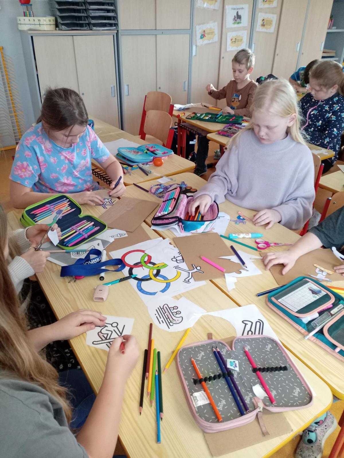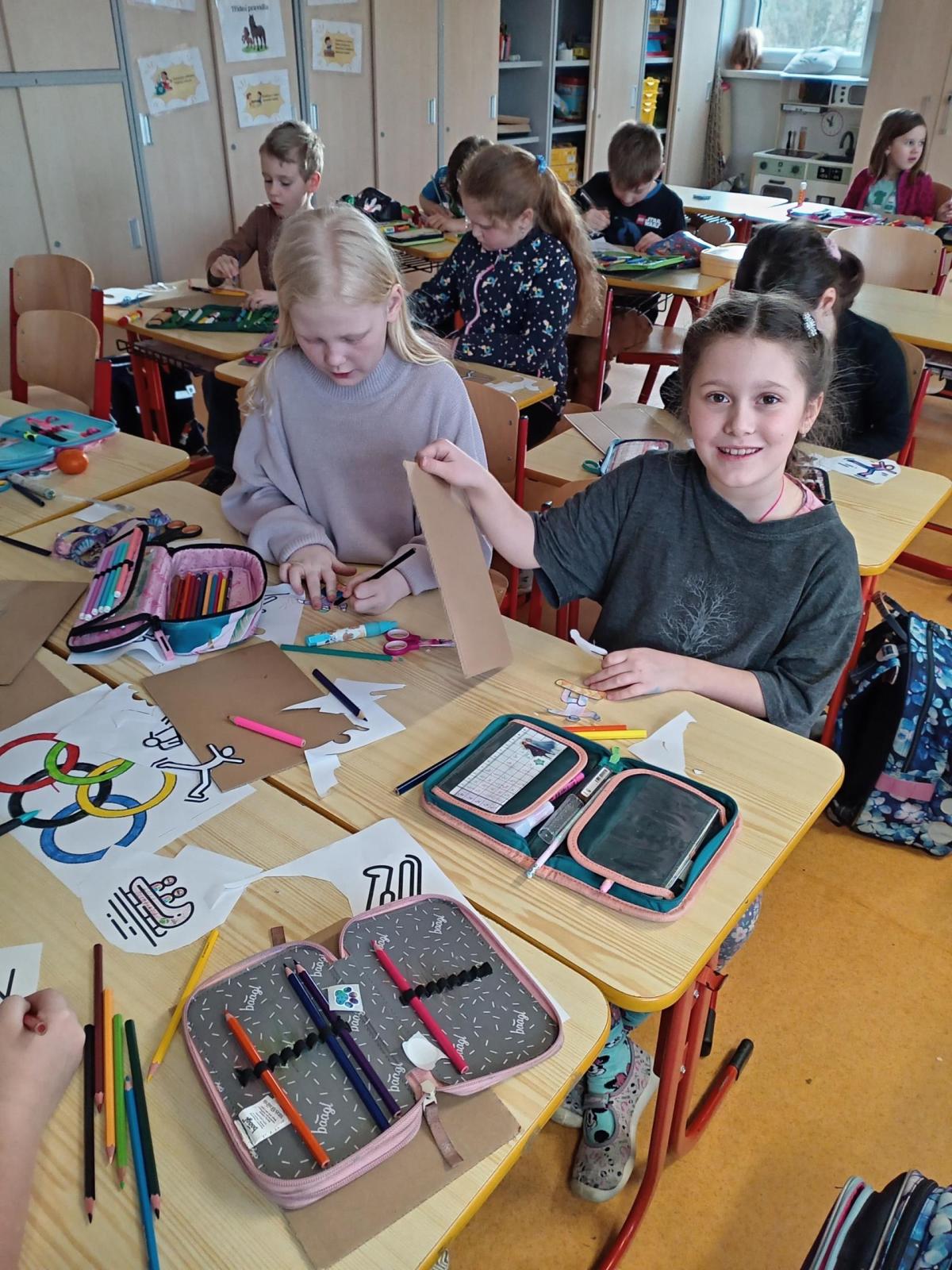 O zimní olympiádě si s dětmi povídáme každý den. Na výtvarném kroužku se děti snažily ztvárnit zimní sporty.