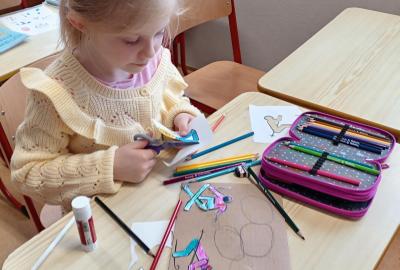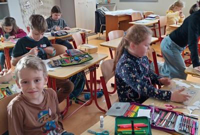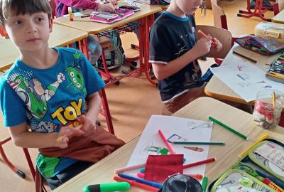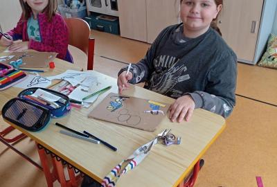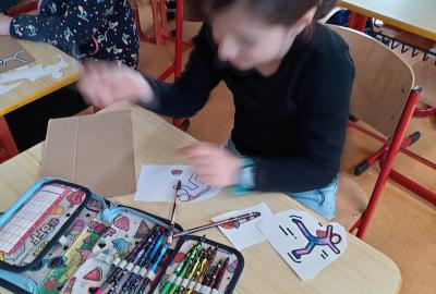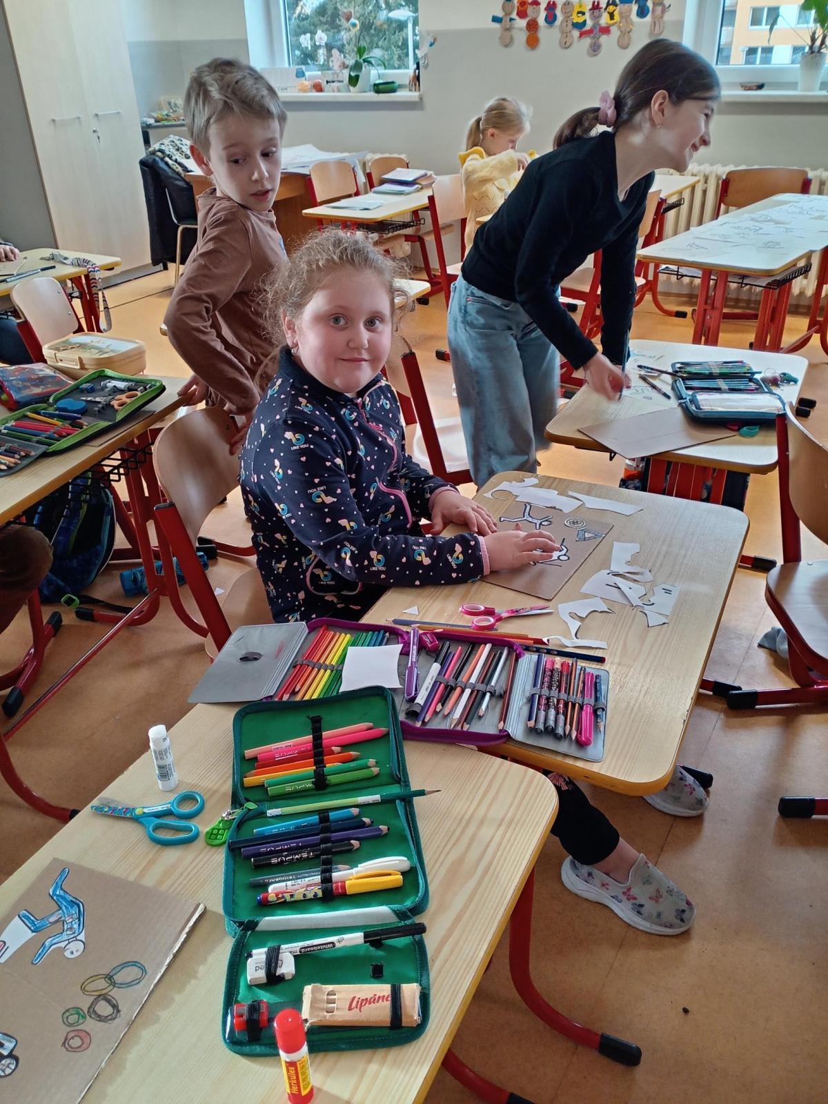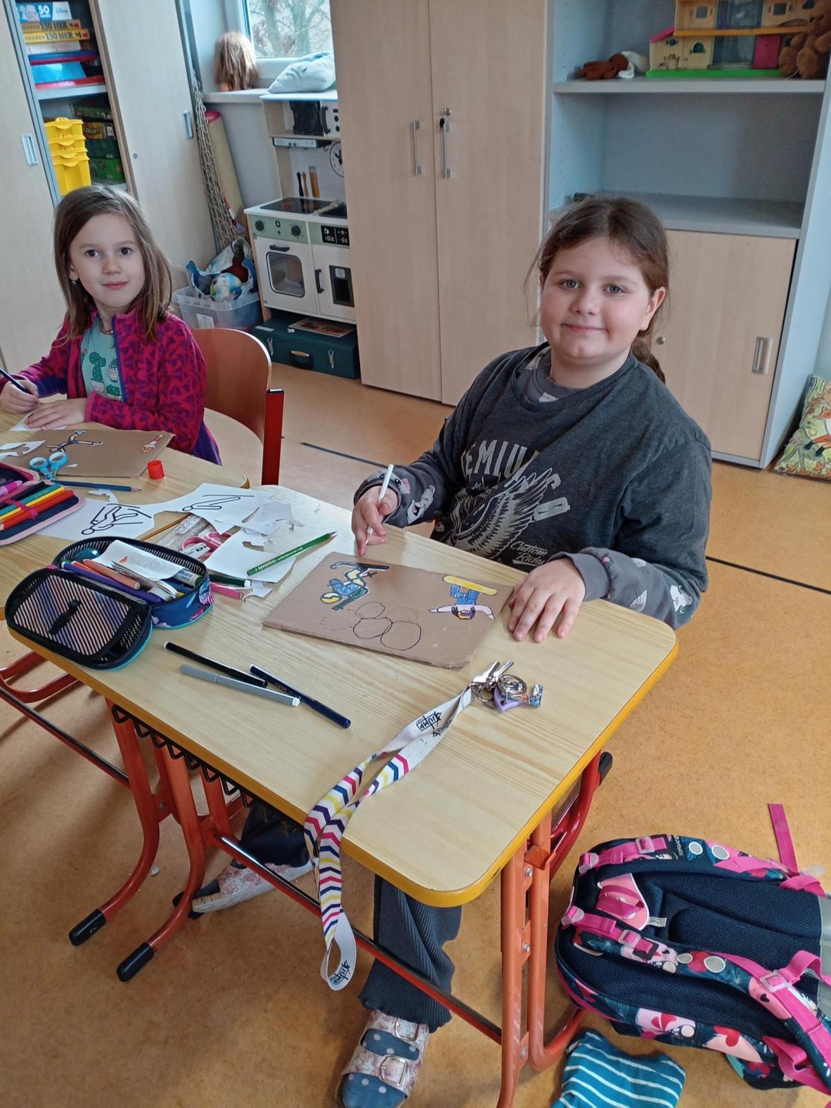 O zimní olympiádě si s dětmi povídáme každý den. Na výtvarném kroužku se děti snažily ztvárnit zimní sporty.