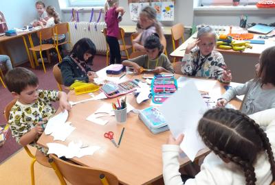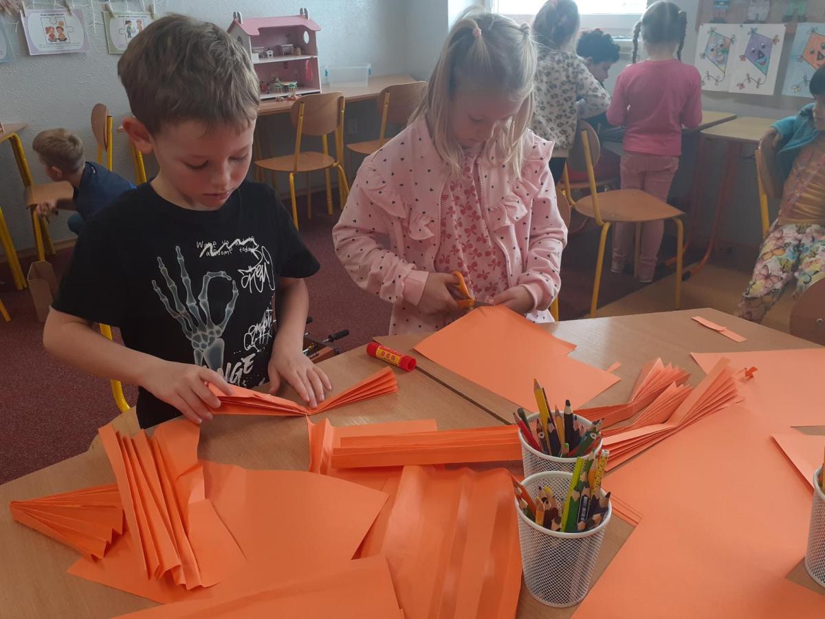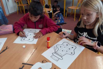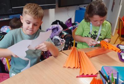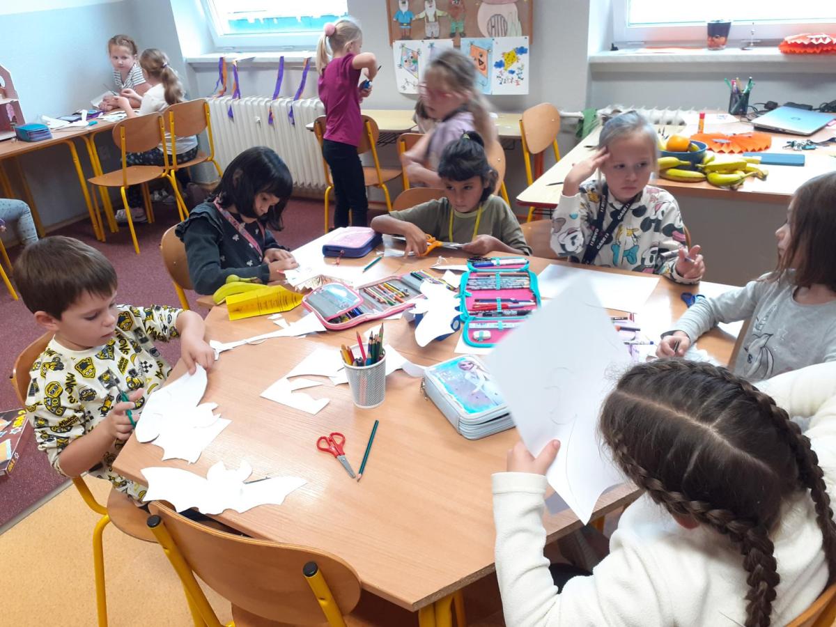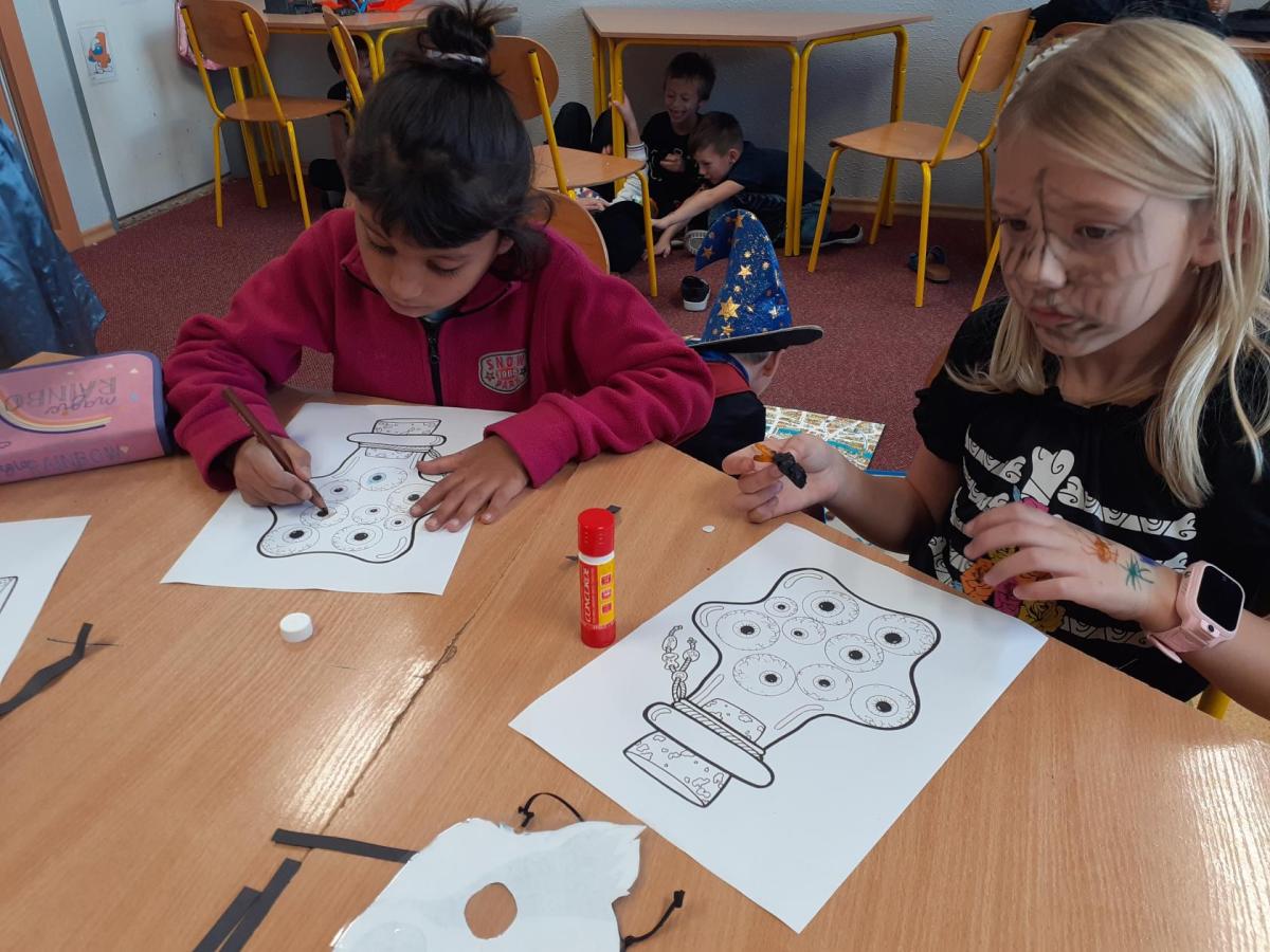 Společně jsme si vyrobili halloweenskou výzdobu, která vykouzlila tu správnou atmosféru. Nechyběli dýně, netopýři, pavouci ani kouzelné lektvary.