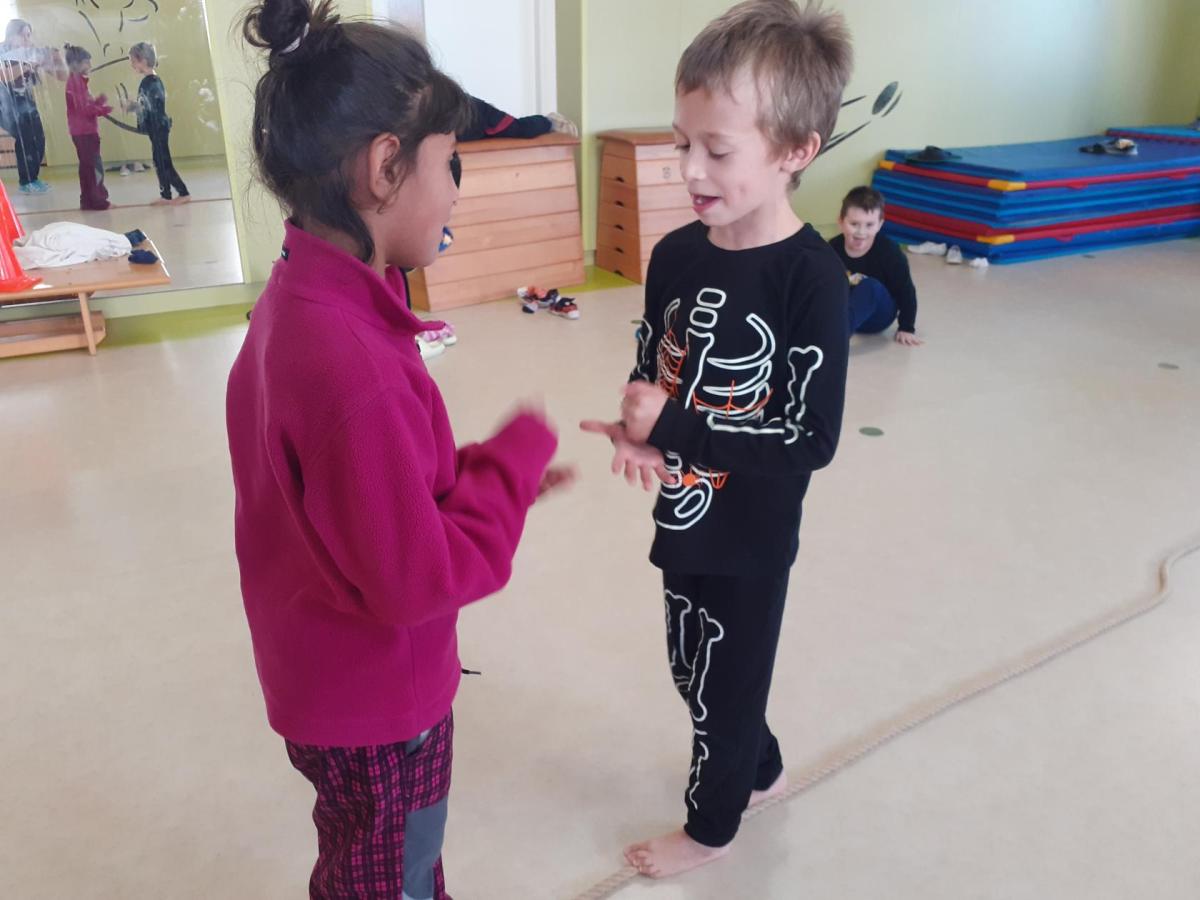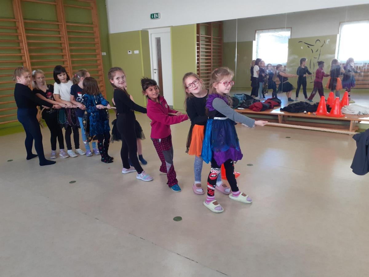 V gymnastickém sále jsme si užili soutěže i hry. Tým děvčat poměřoval síly s týmem chlapců a výkony byly vyrovnané. Na všechny čekala sladká odměna.
