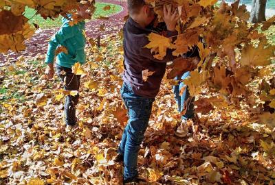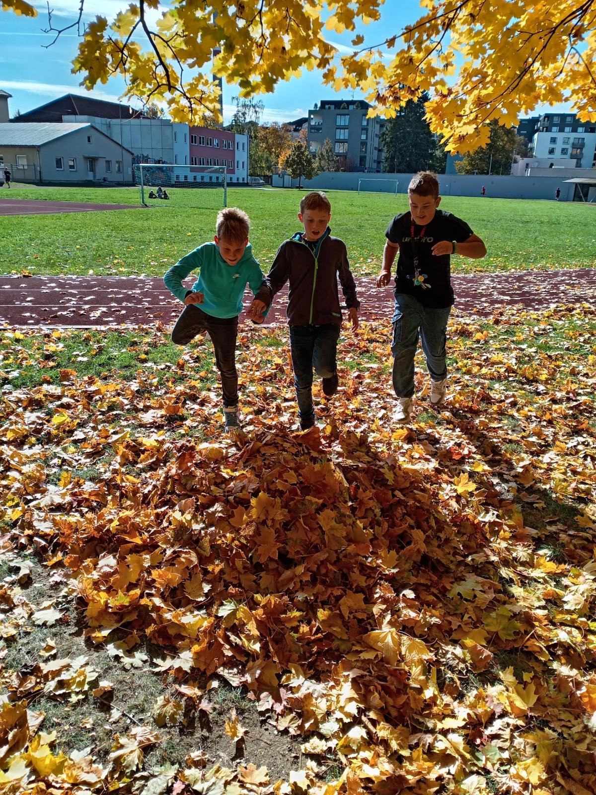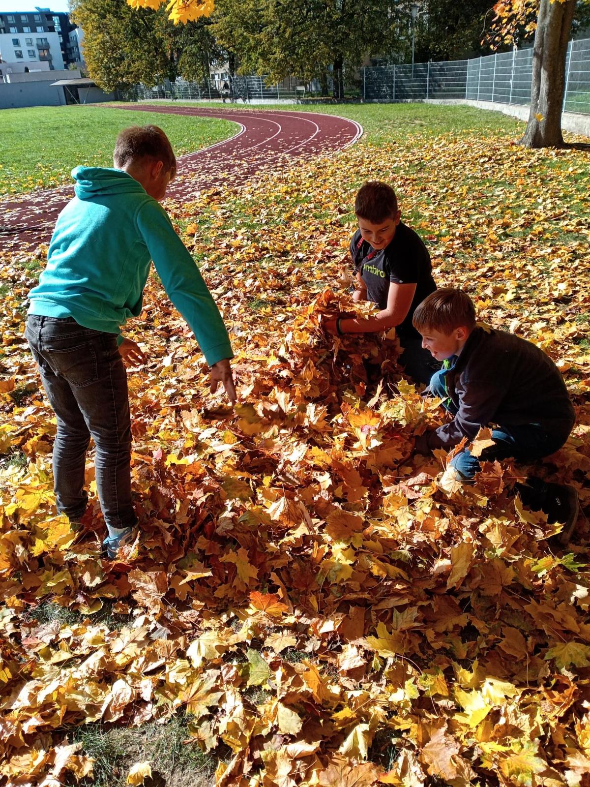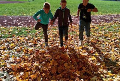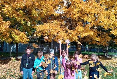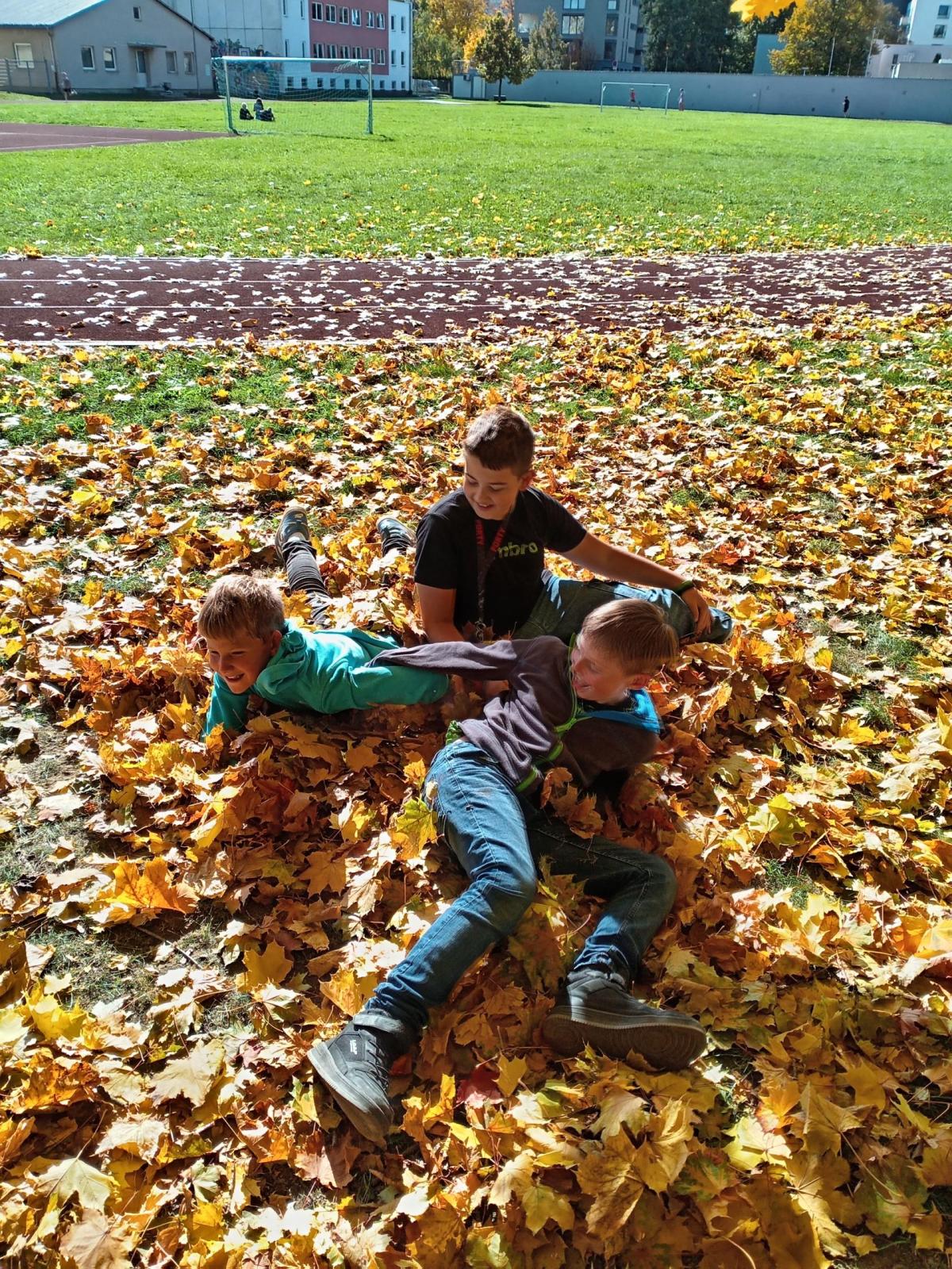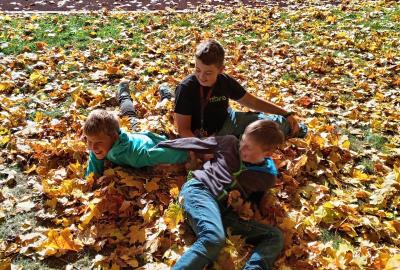 Za příznivého podzimního počasí děti rády tráví čas venku na čerstvém vzduchu. Hry v listí, kde se děti pořádně vyřádí, jsou v naší družině již každoroční tradicí.