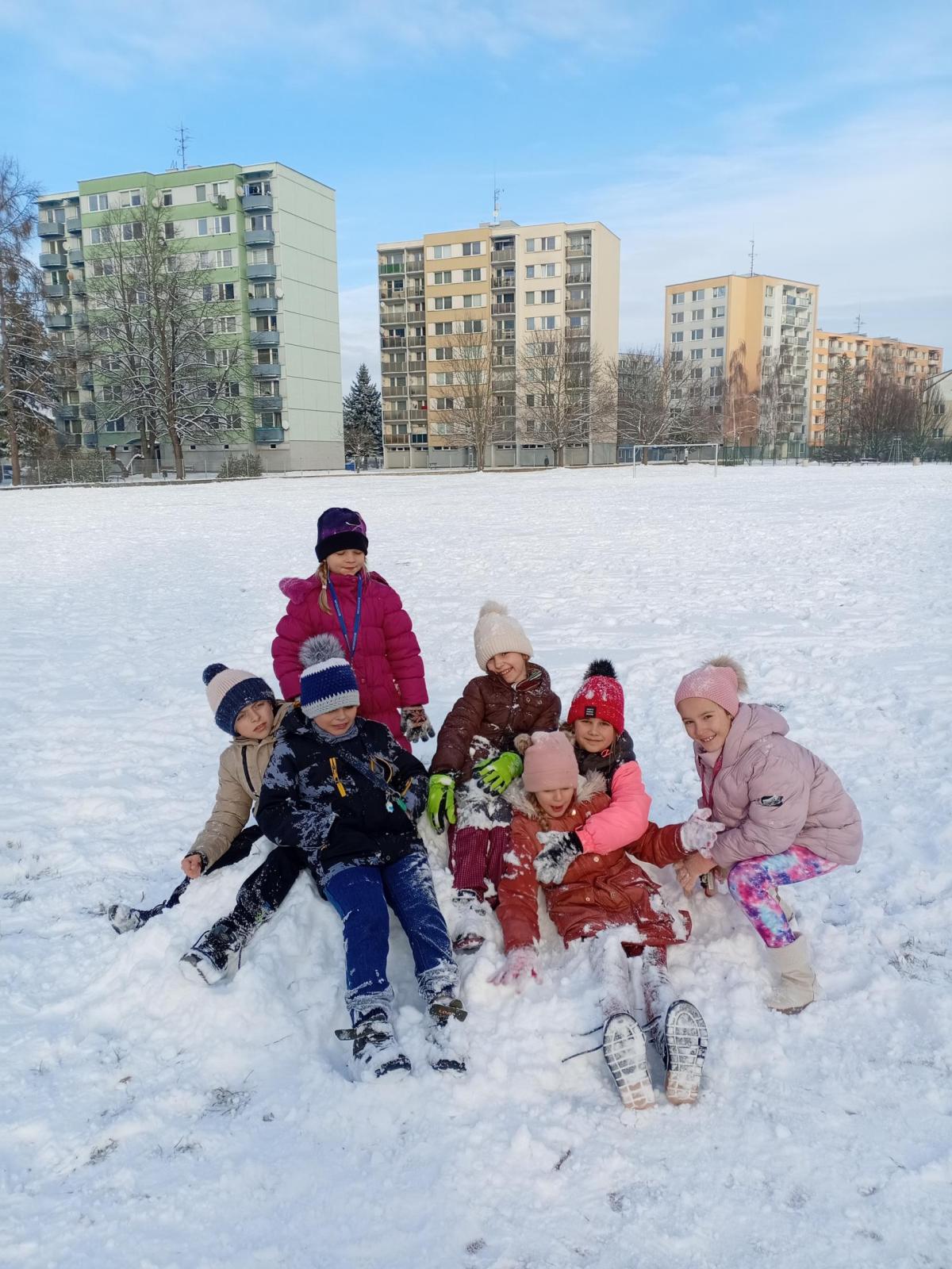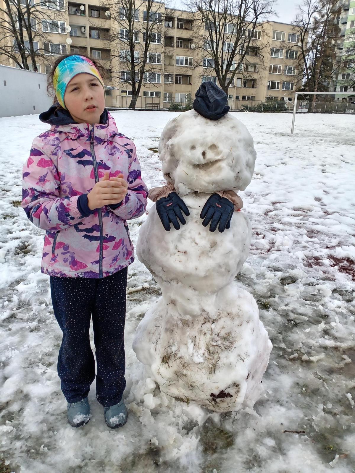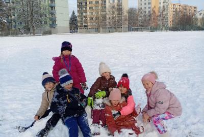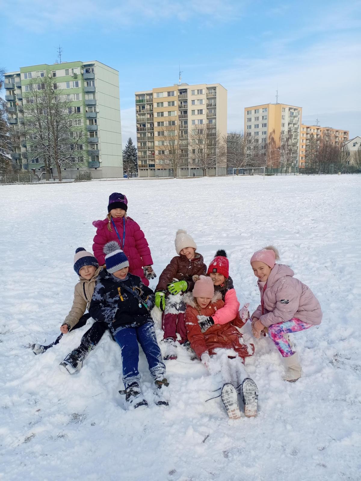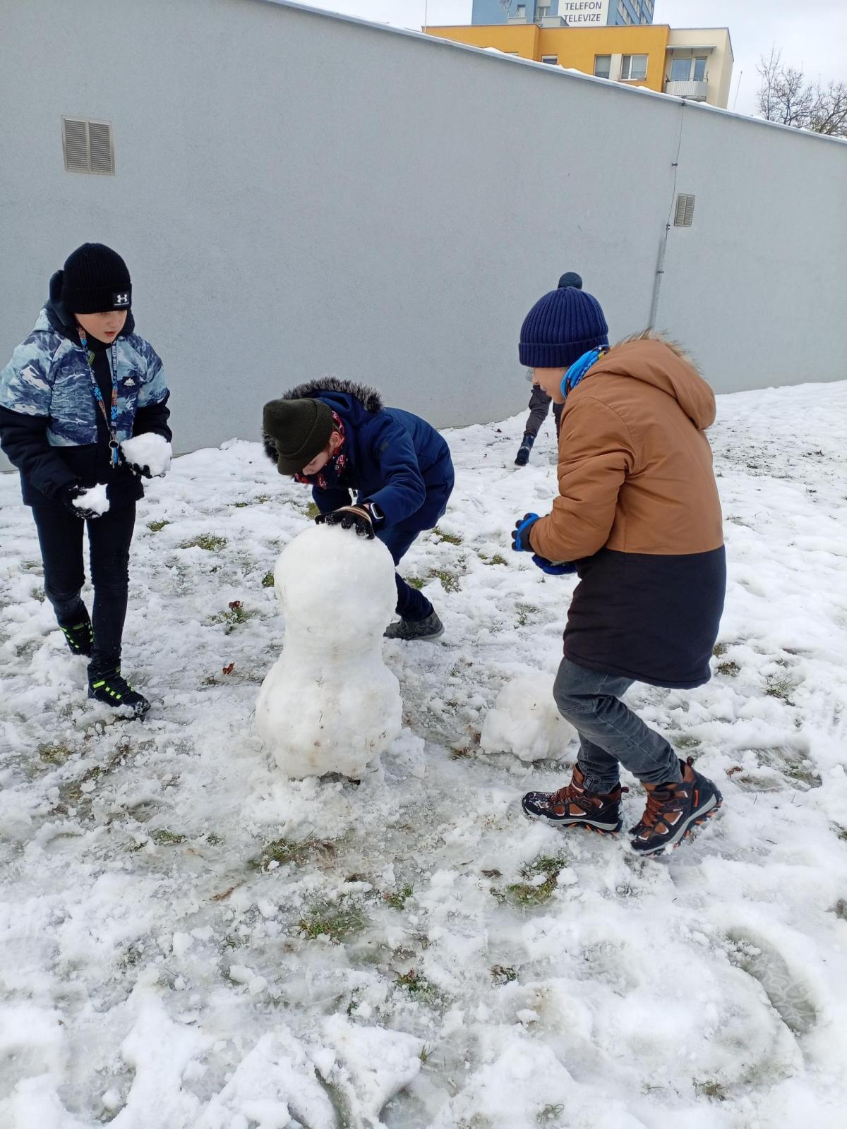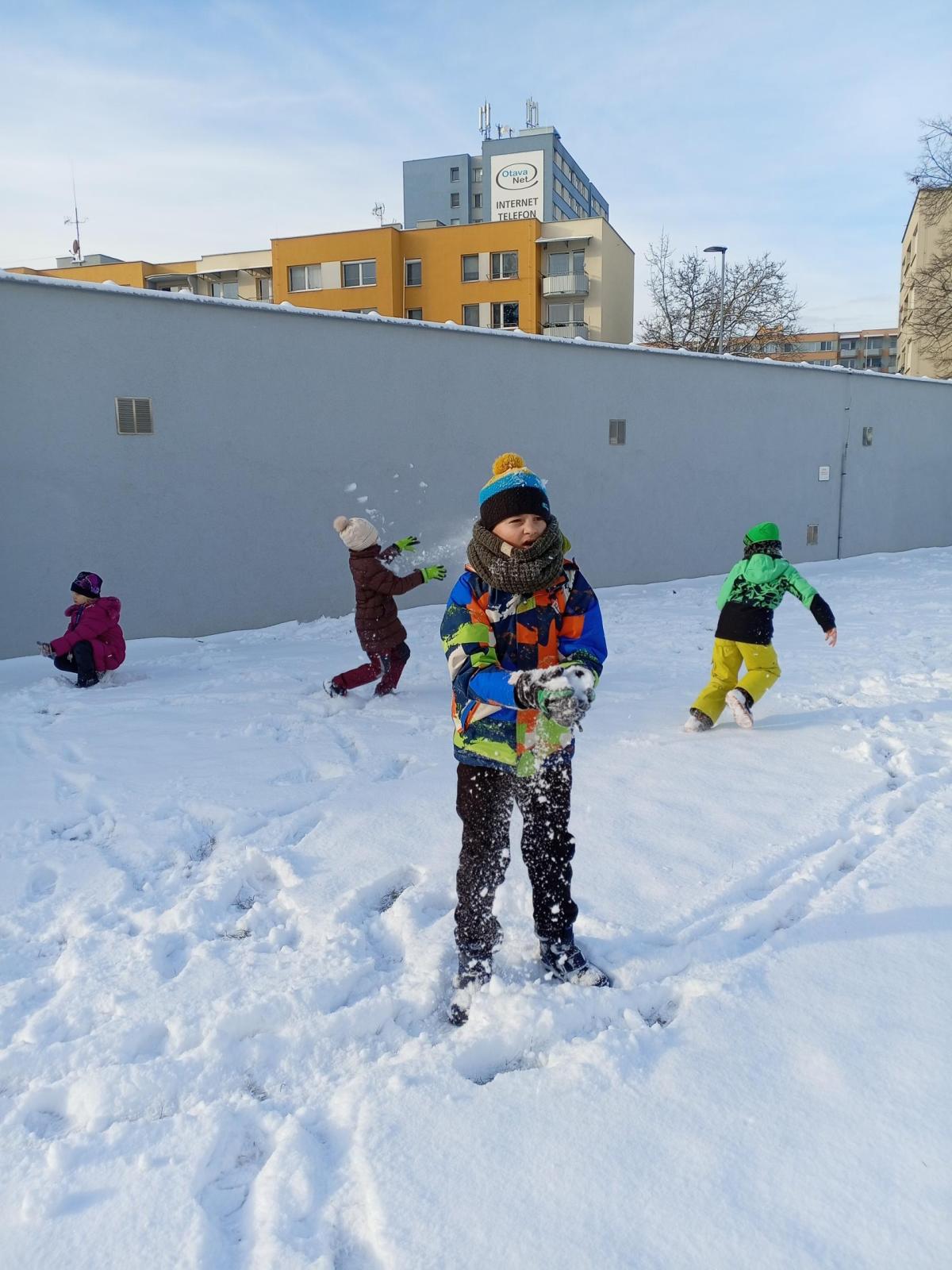 Tak jsme se konečně dočkali sněhové nadílky. Děti s radostí ve sněhu řádily a soutěžily o nejhezčího sněhuláka.