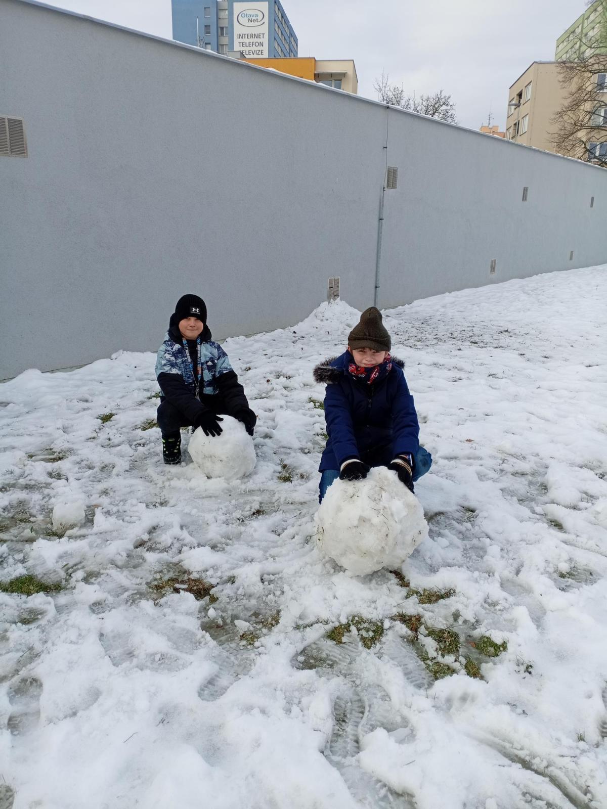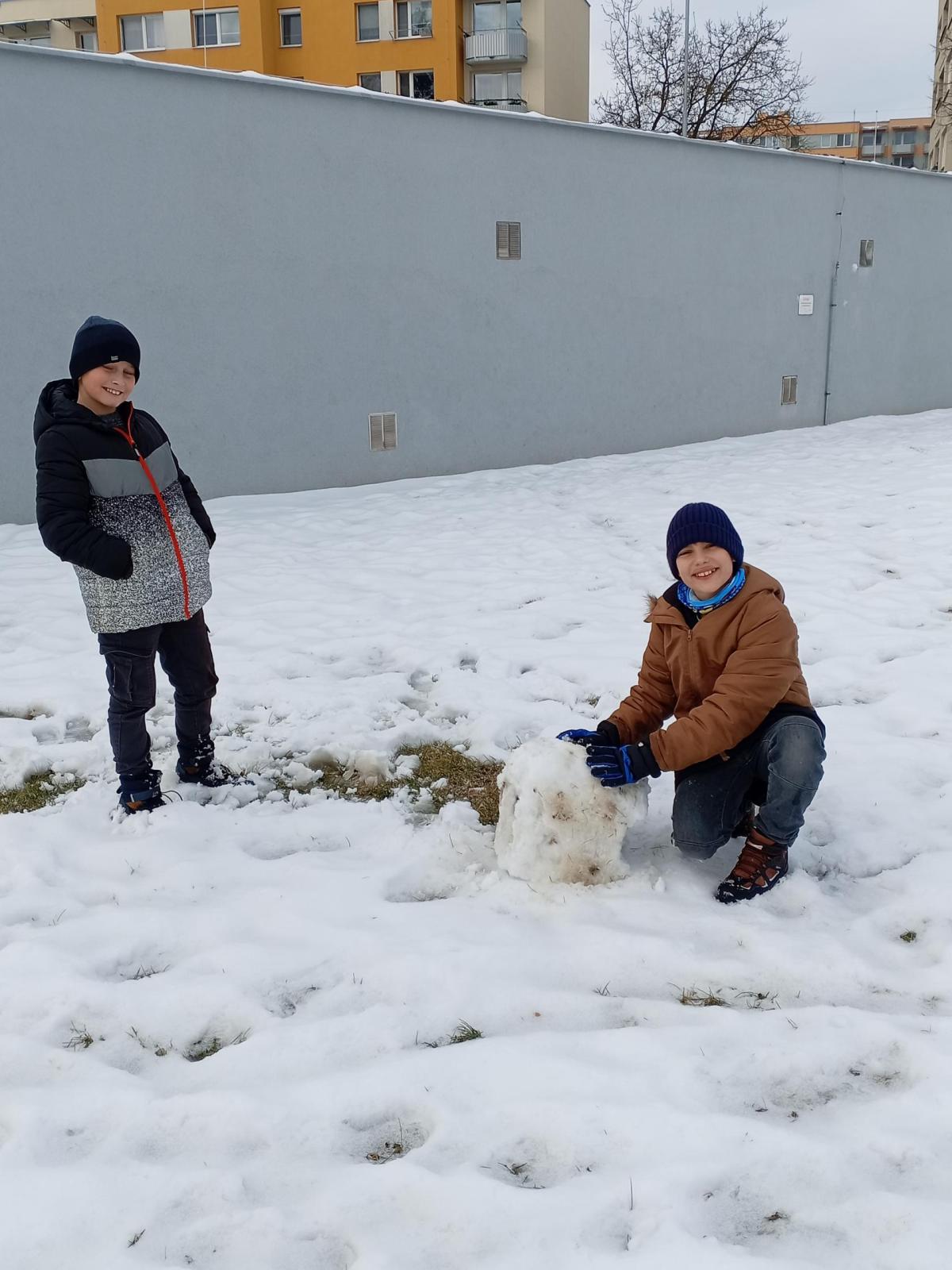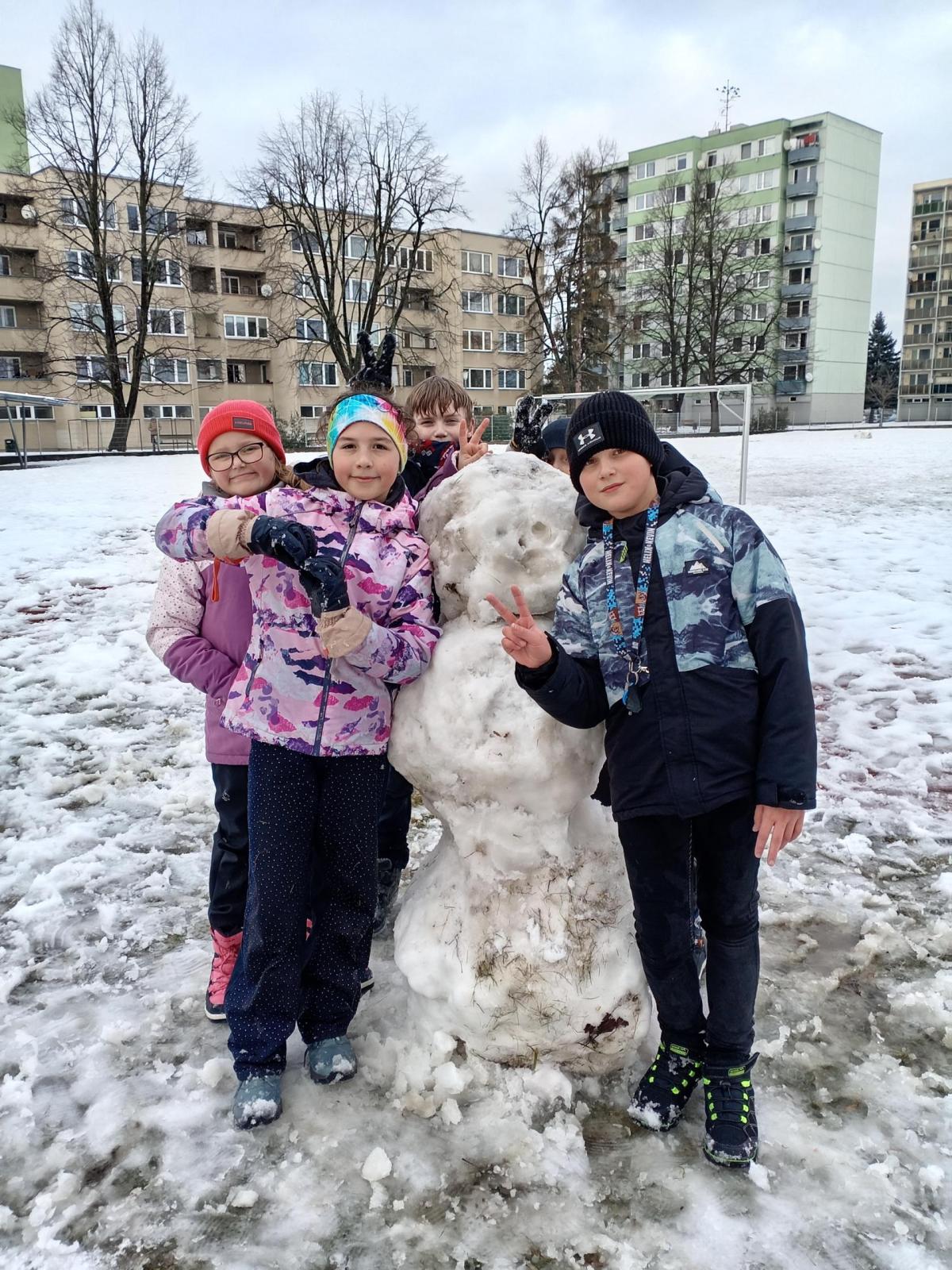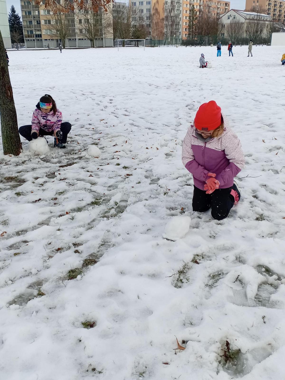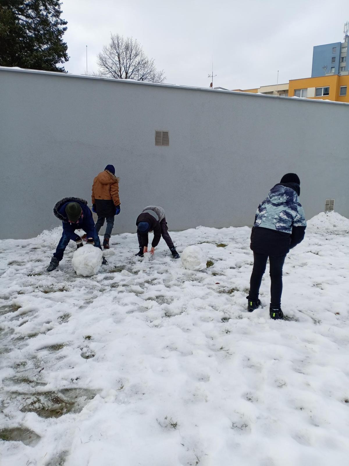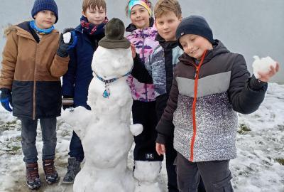 Tak jsme se konečně dočkali sněhové nadílky. Děti s radostí ve sněhu řádily a soutěžily o nejhezčího sněhuláka.
