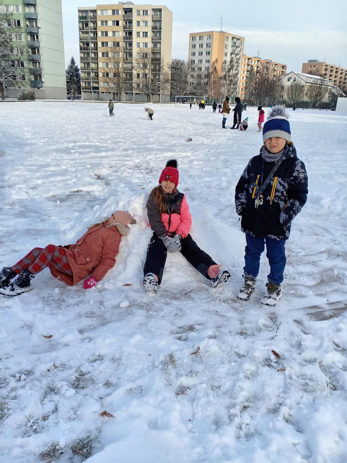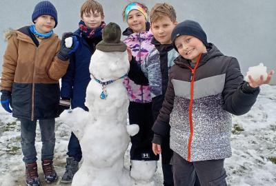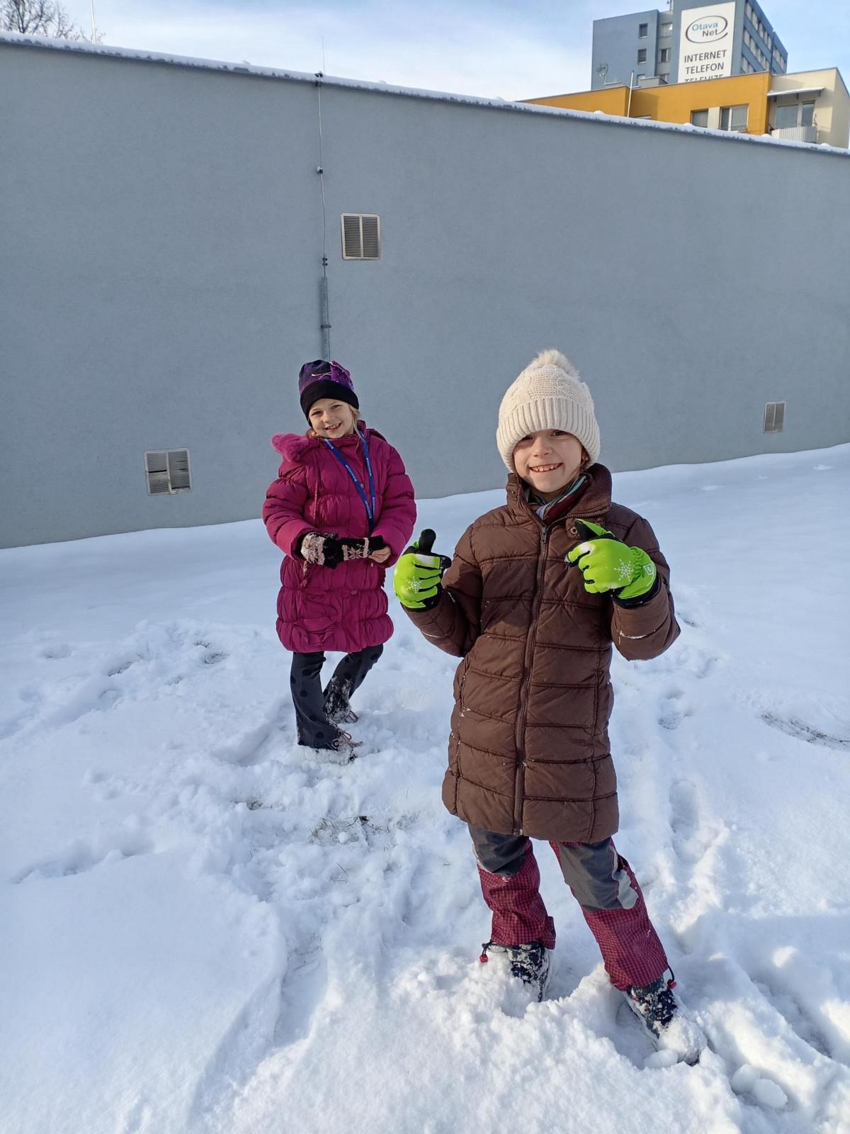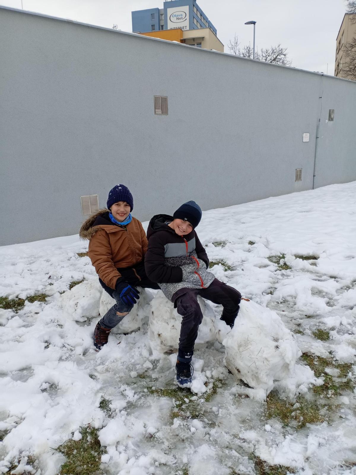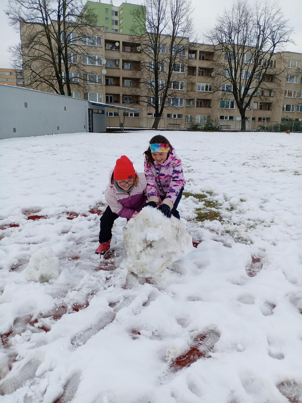 Tak jsme se konečně dočkali sněhové nadílky. Děti s radostí ve sněhu řádily a soutěžily o nejhezčího sněhuláka.