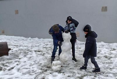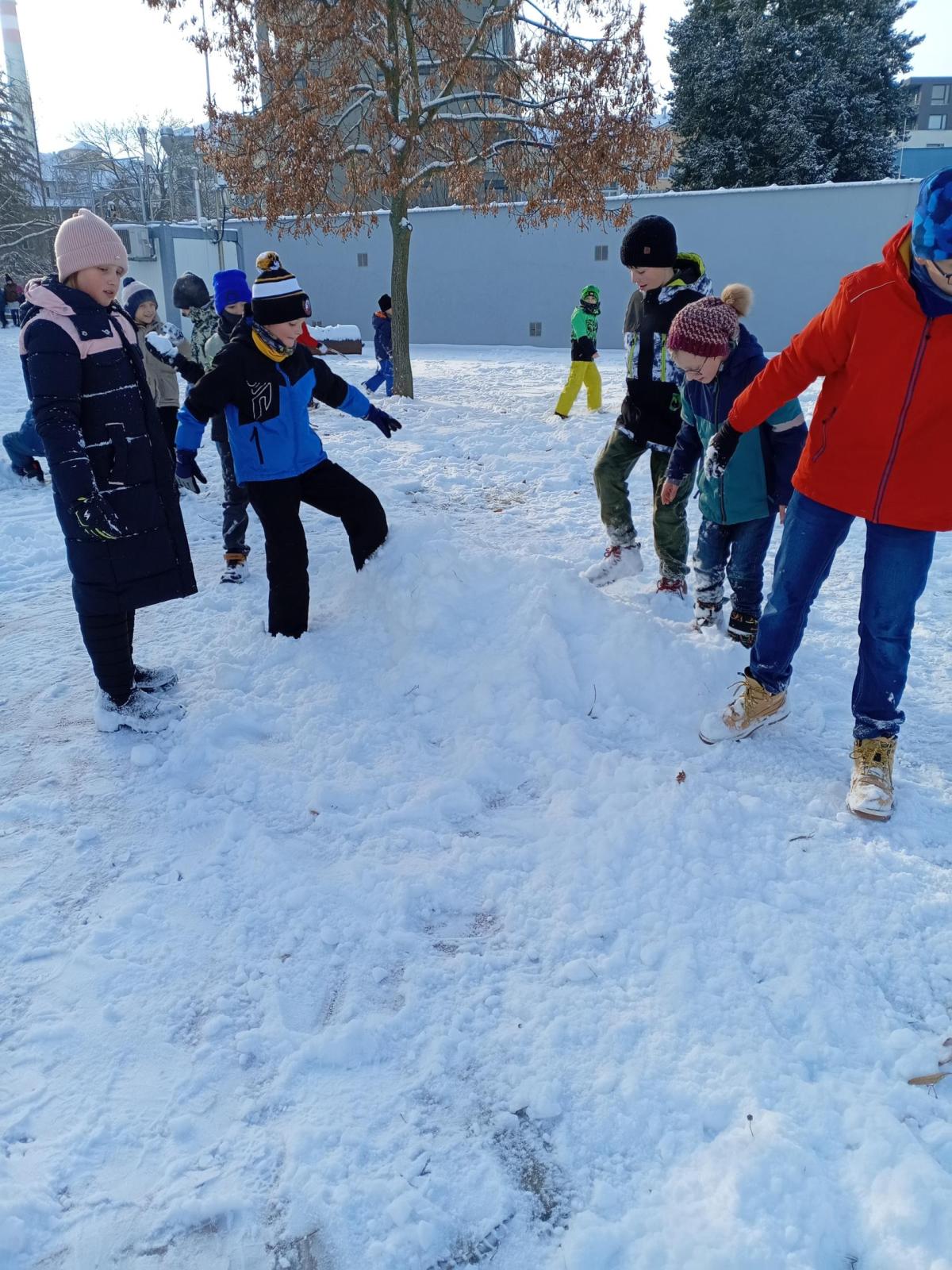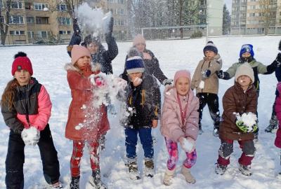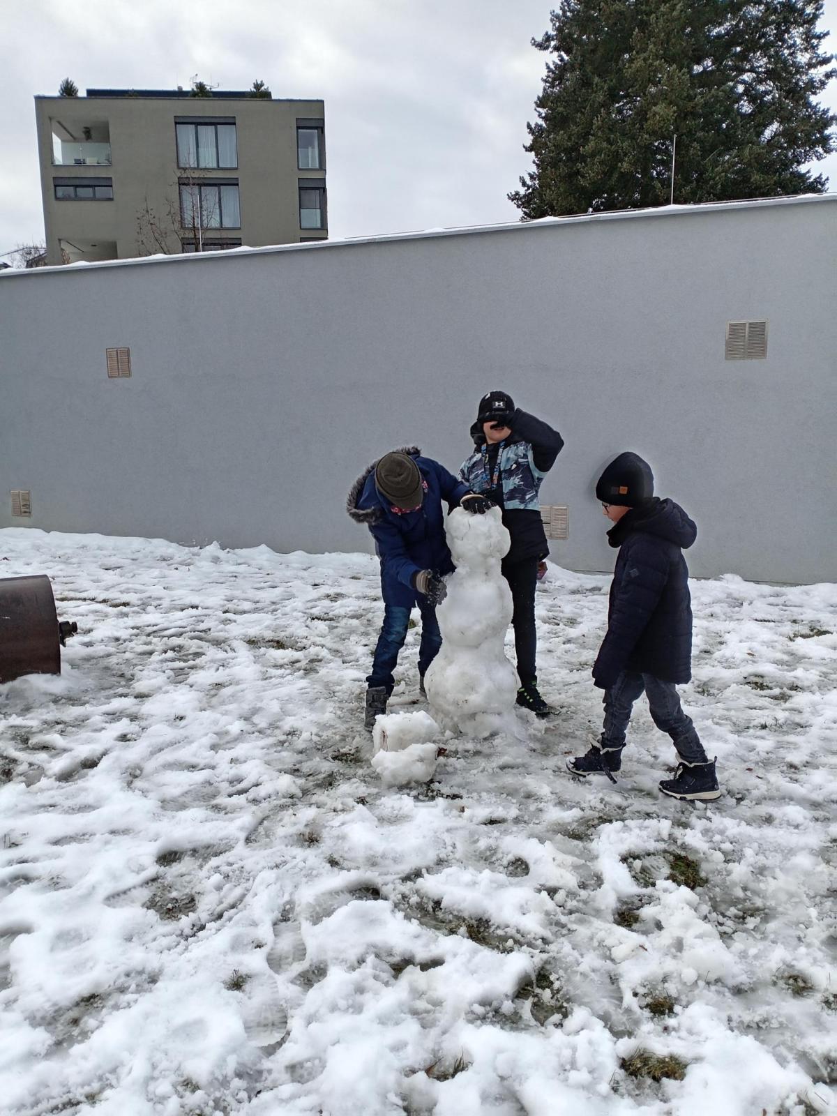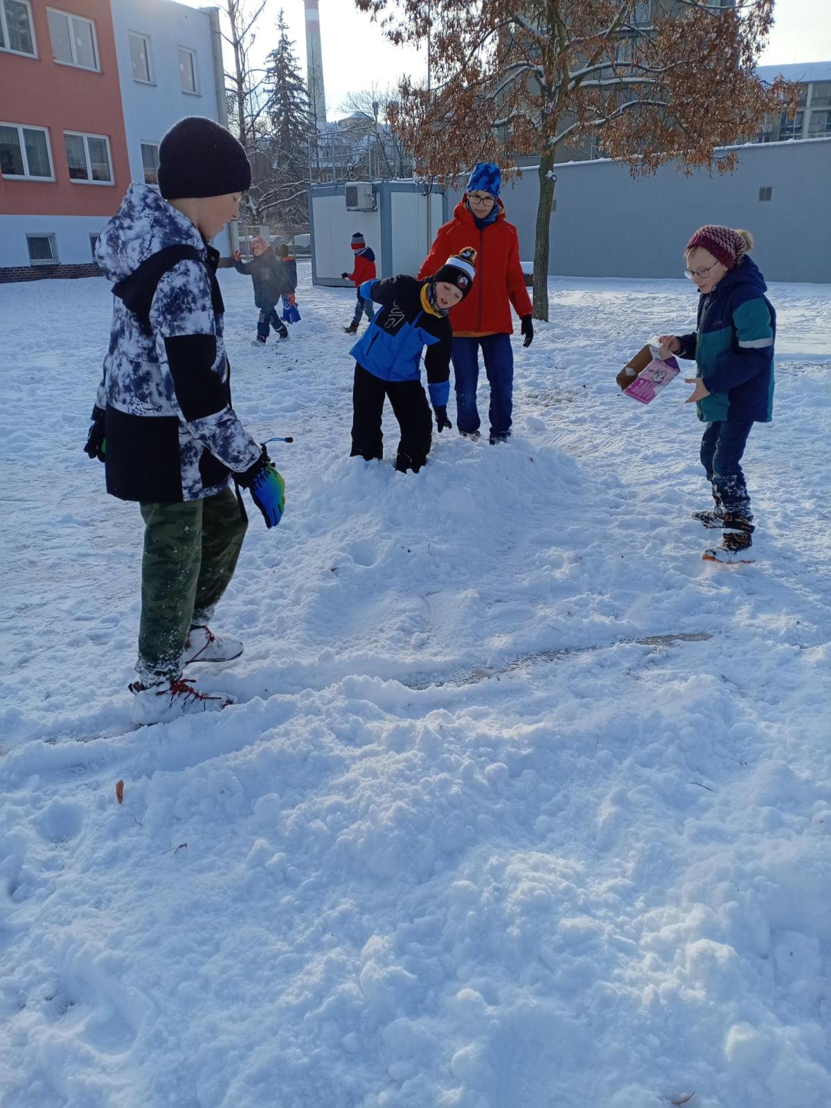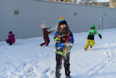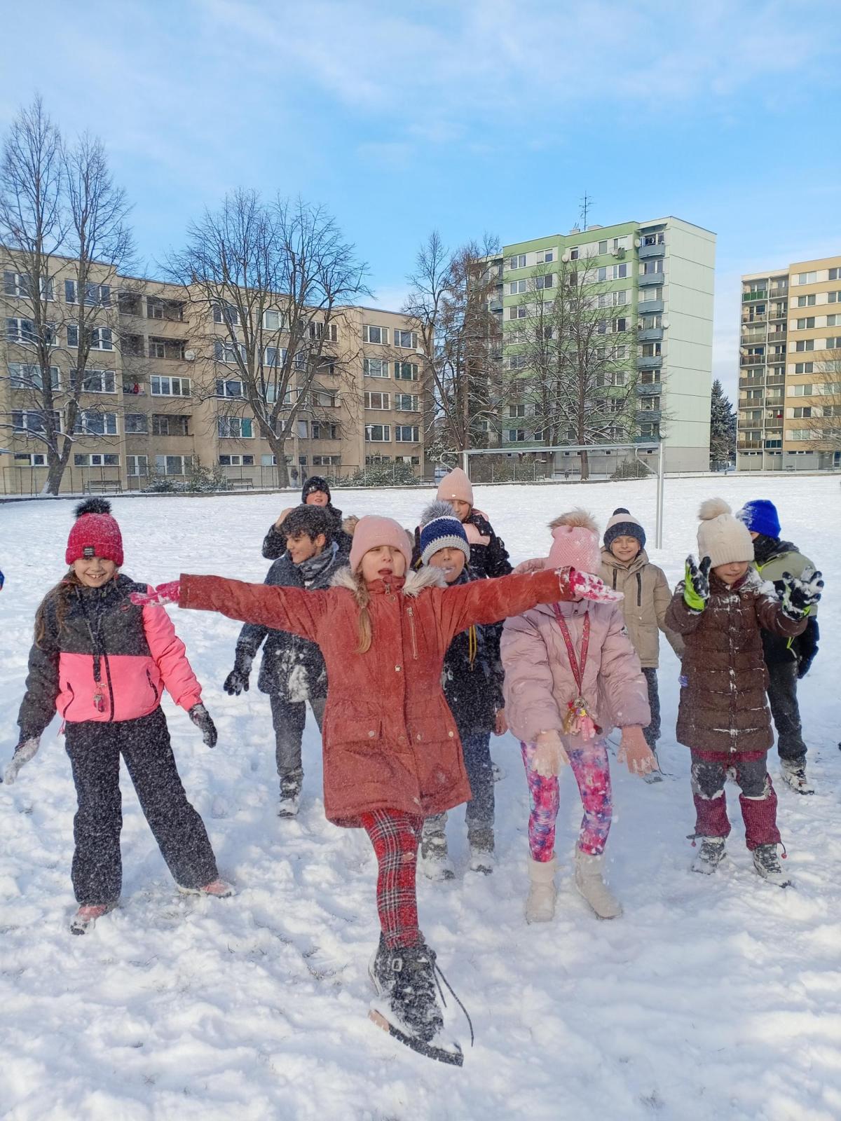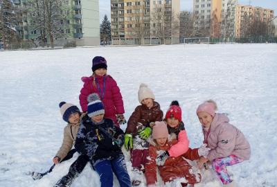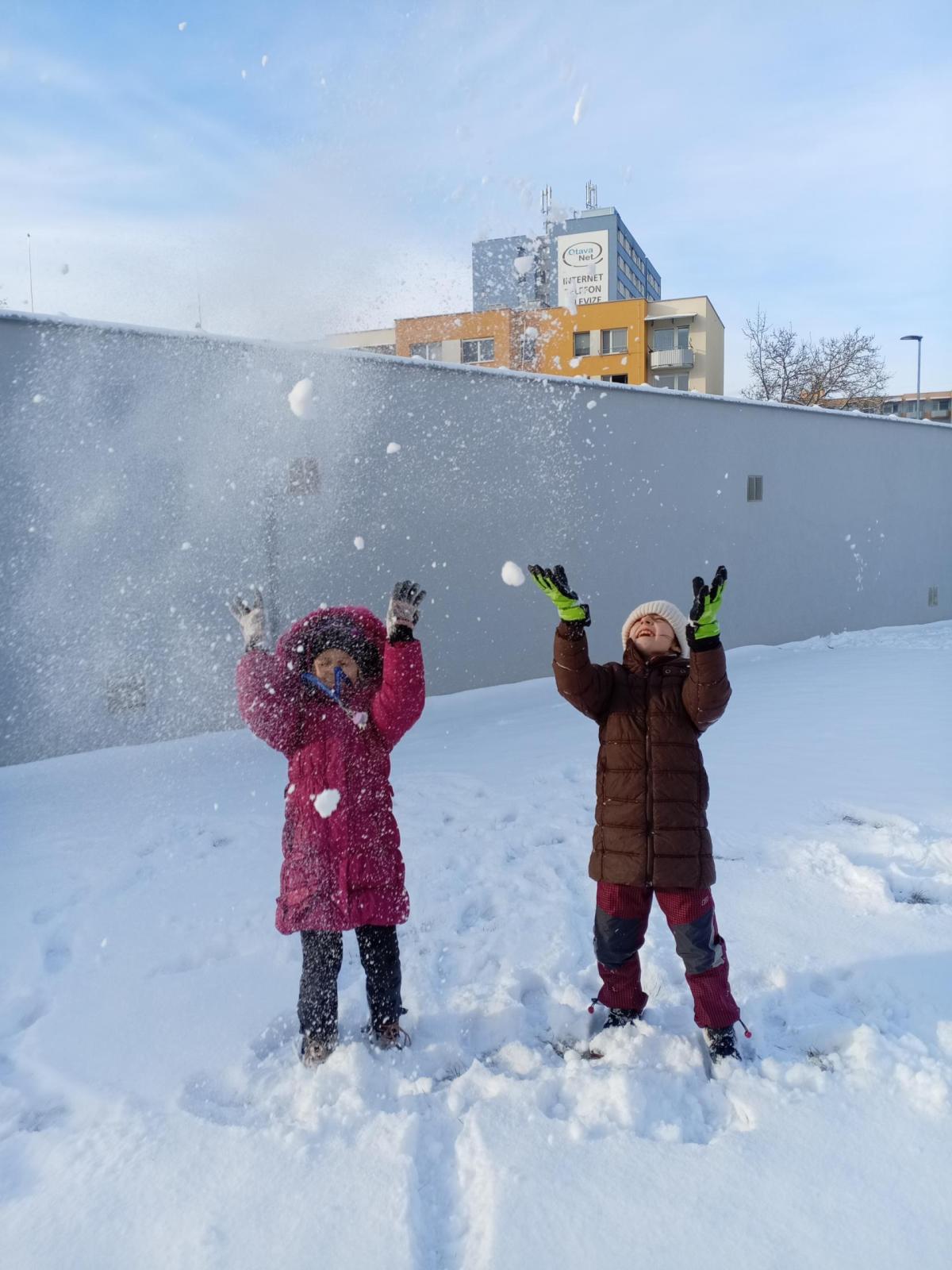 Tak jsme se konečně dočkali sněhové nadílky. Děti s radostí ve sněhu řádily a soutěžily o nejhezčího sněhuláka.