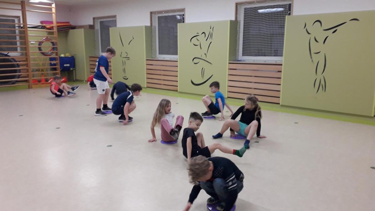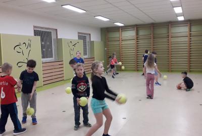 Na kroužku míčových her je vždy živo a plno pohybu. Každé setkání začínáme společnou rozcvičkou, po které následují soutěže a hry s míčem. Děti si při nich rozvíjejí obratnost, koordinaci i základní sportovní dovednosti a lezou po žebřinách. Velkým favoritem je opičí dráha, na které si děti vyzkouší překonávání různých překážek. Mezi oblíbené hry patří Na rybáře, Na houbaře, vybíjená nebo Na jelena.