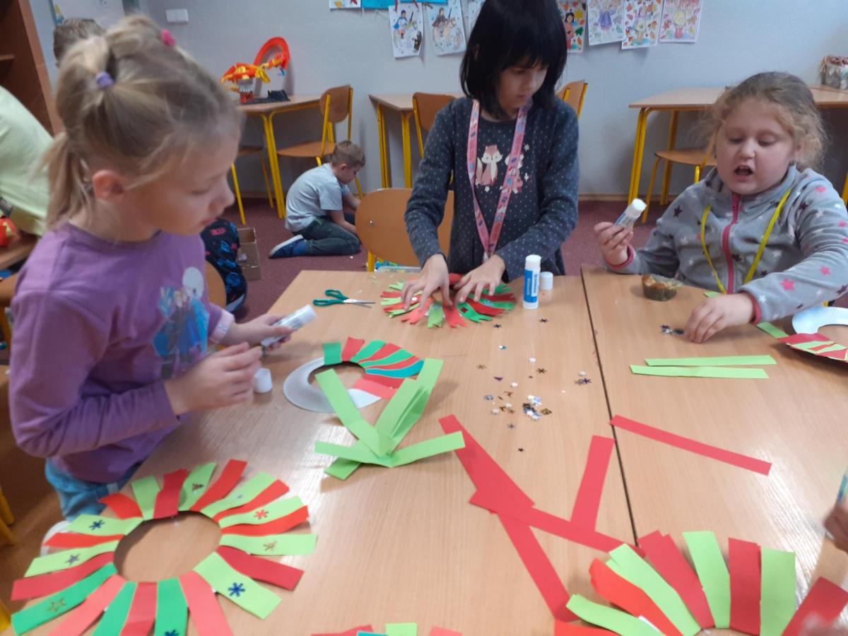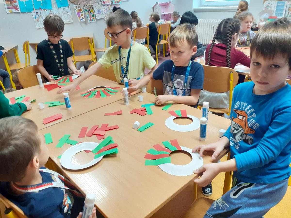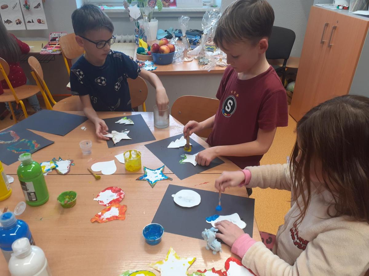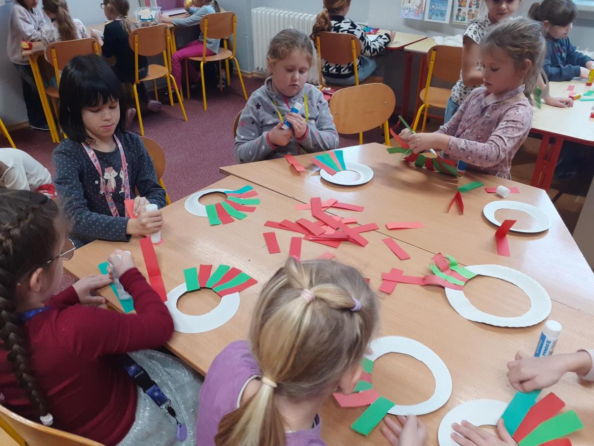 Děti se s nadšením zapojily do adventního tvoření a společně jsme si vyzdobili družinu vánočními motivy. Vznikaly krásné dekorace - adventní věnce, peklo s čerty, vánoční kapři i zasněžené krmítko. Družina se tak postupně proměnila v místo plné vánočního kouzla.