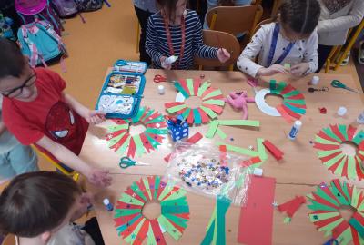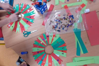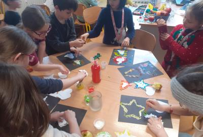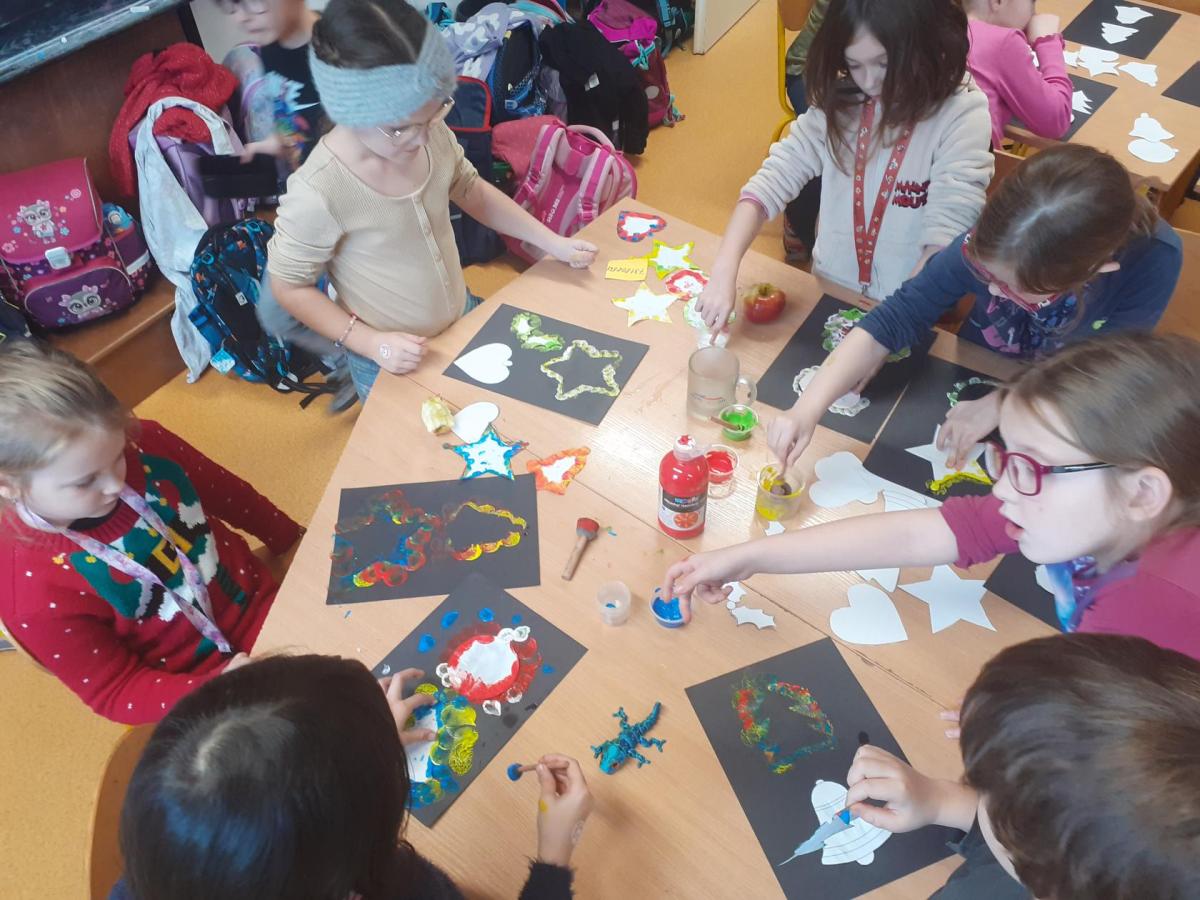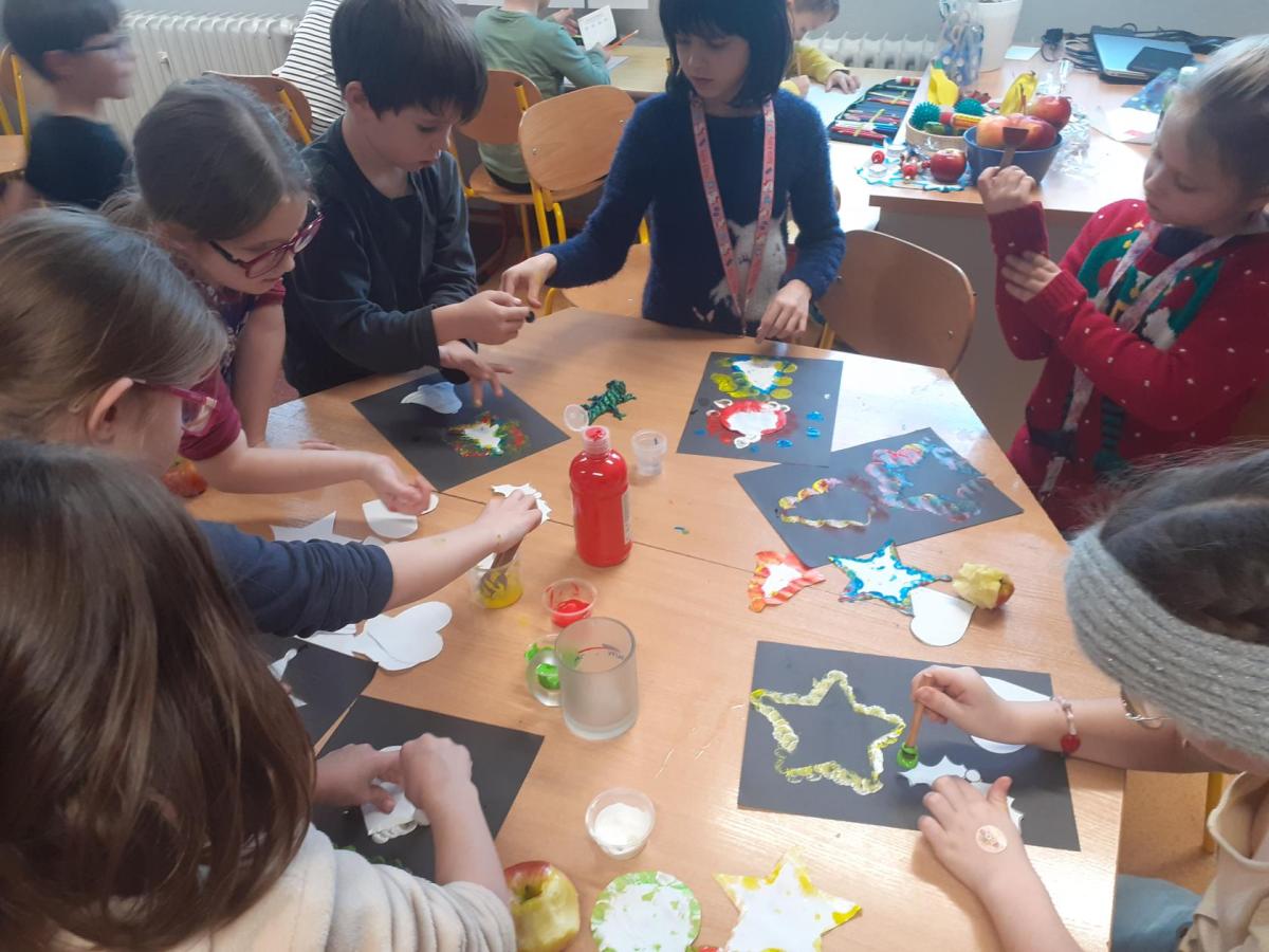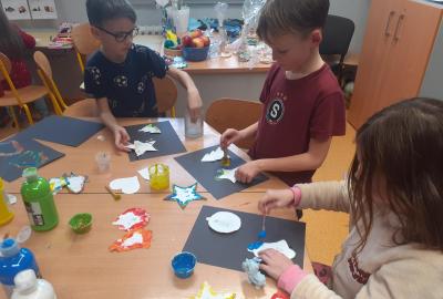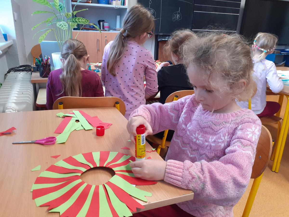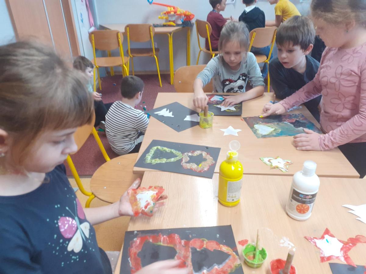 Děti se s nadšením zapojily do adventního tvoření a společně jsme si vyzdobili družinu vánočními motivy. Vznikaly krásné dekorace - adventní věnce, peklo s čerty, vánoční kapři i zasněžené krmítko. Družina se tak postupně proměnila v místo plné vánočního kouzla.