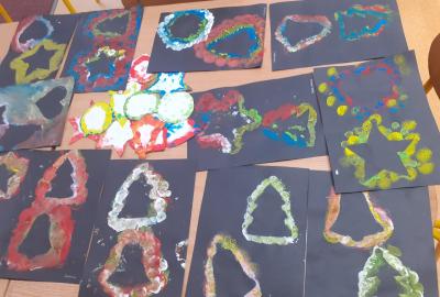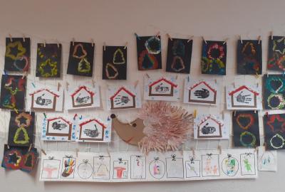 Největší radost dětem přinesla práce s temperami a vodovkami. Naplno si užívaly barvy, které nanášely dlaněmi, prsty nebo houbičkou. Na naší nástěnce nechybí ani obrázky pro Ježíška s vánočními dárky. Děti si je jistě zaslouží.