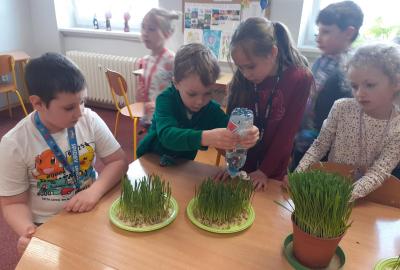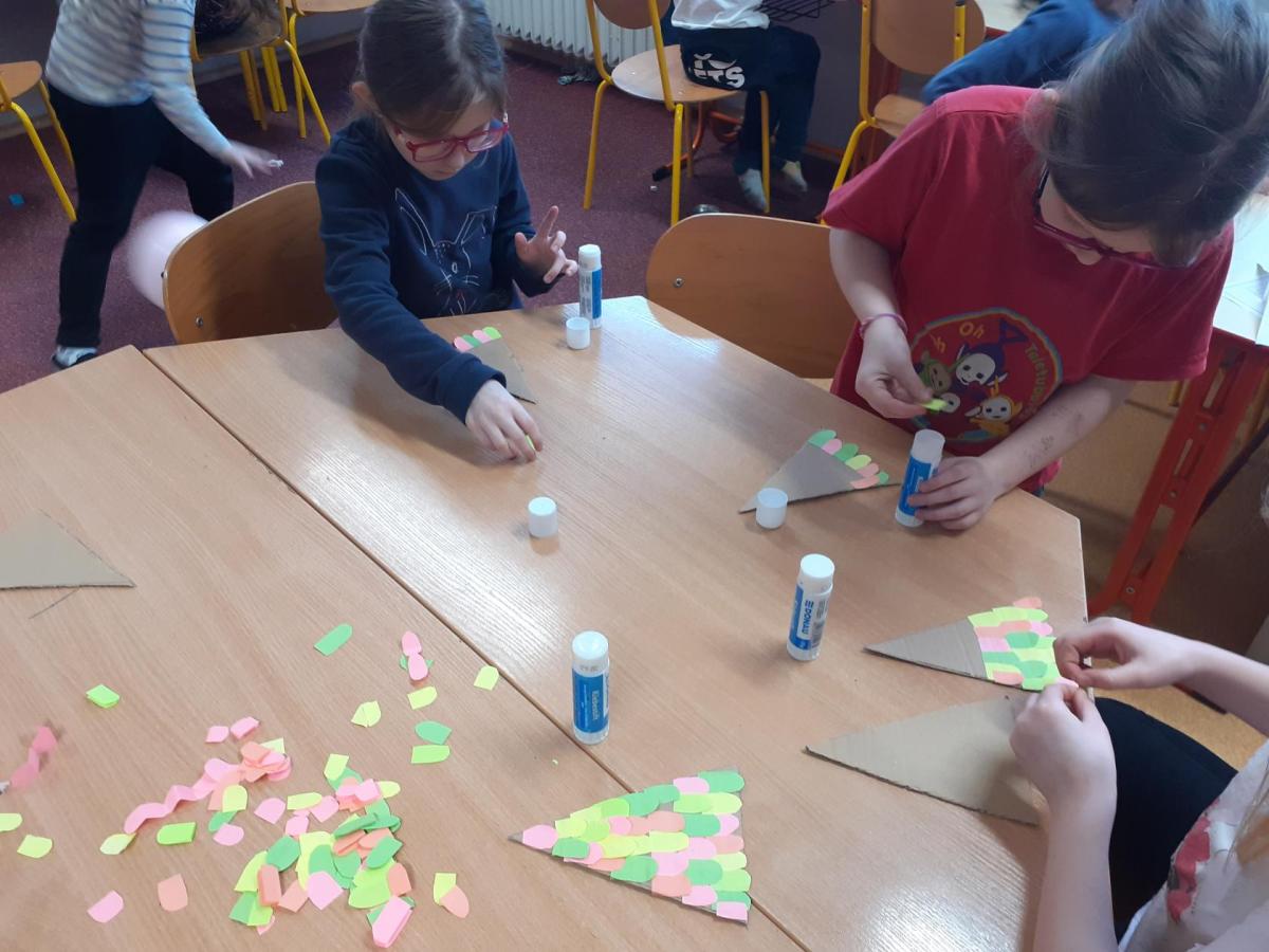 Jarní měsíc byl plný kreativního tvoření, pracovali jsme s barvami, kartonem i modelínou a jaro jsme přivítali písničkou: „Jaro dělá pokusy".