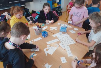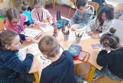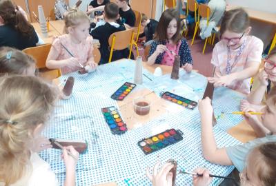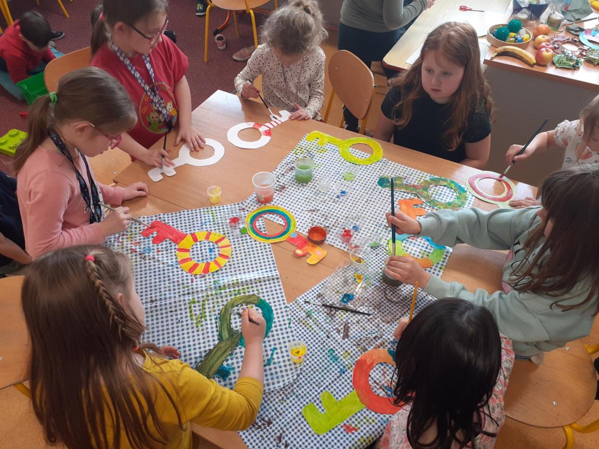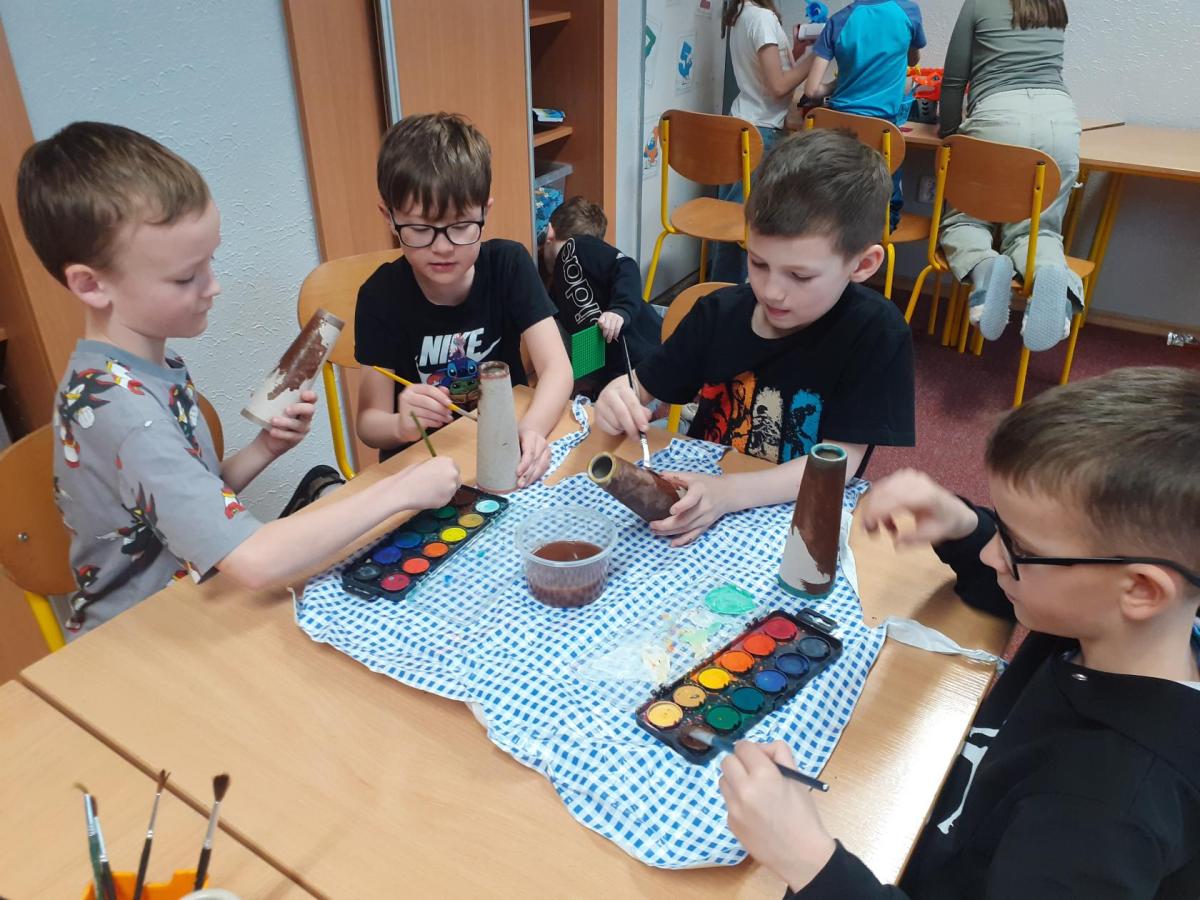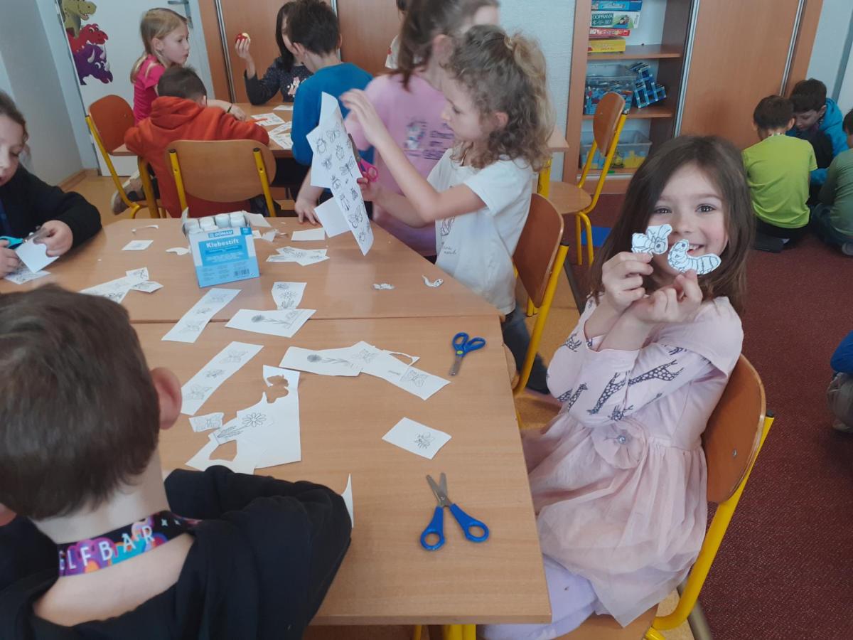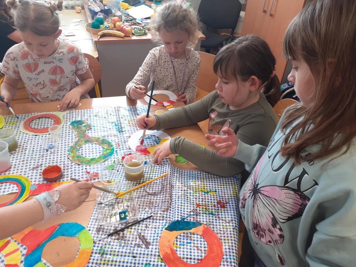 Děti svými výrobky přispěly do prodeje na Velikonočních trzích. Největší úspěch z velikonočního vyrábění měl zajíček, kterého si prvňáčci s radostí odnesli domů.