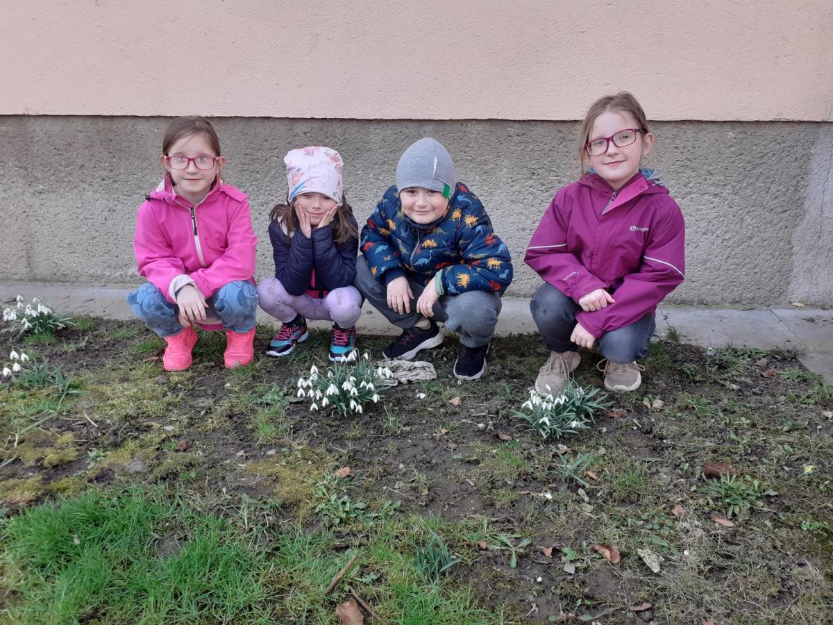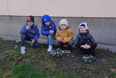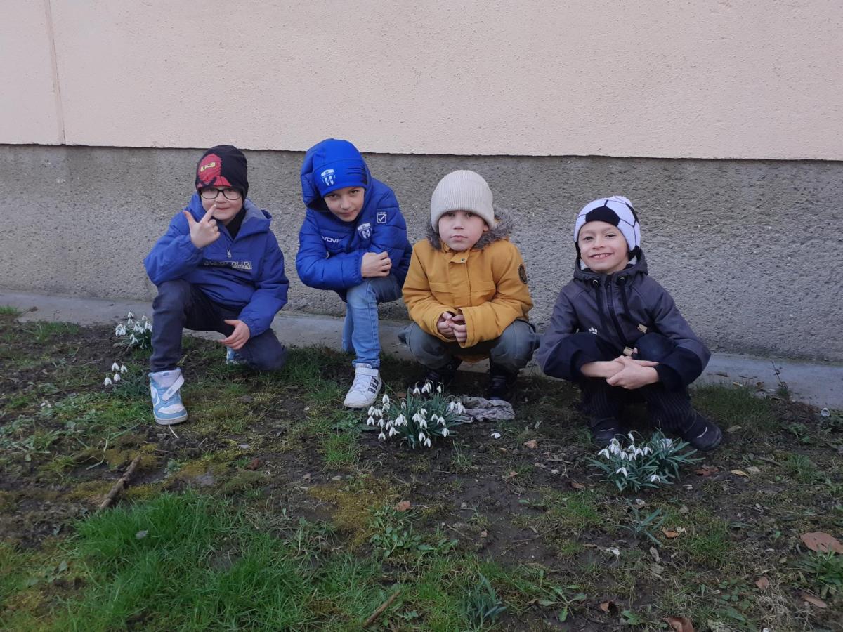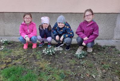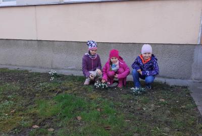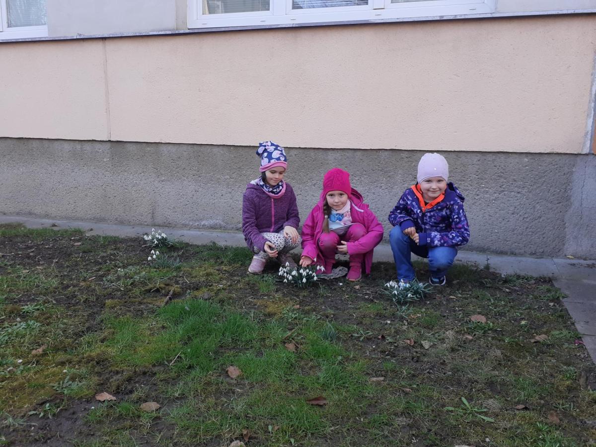 Březen nám přinesl jarní teploty, a tak jsme s dětmi vyrazili do okolí naší školy pozorovat, jak se příroda probouzí, a hledat první symbol jara - sněženky.