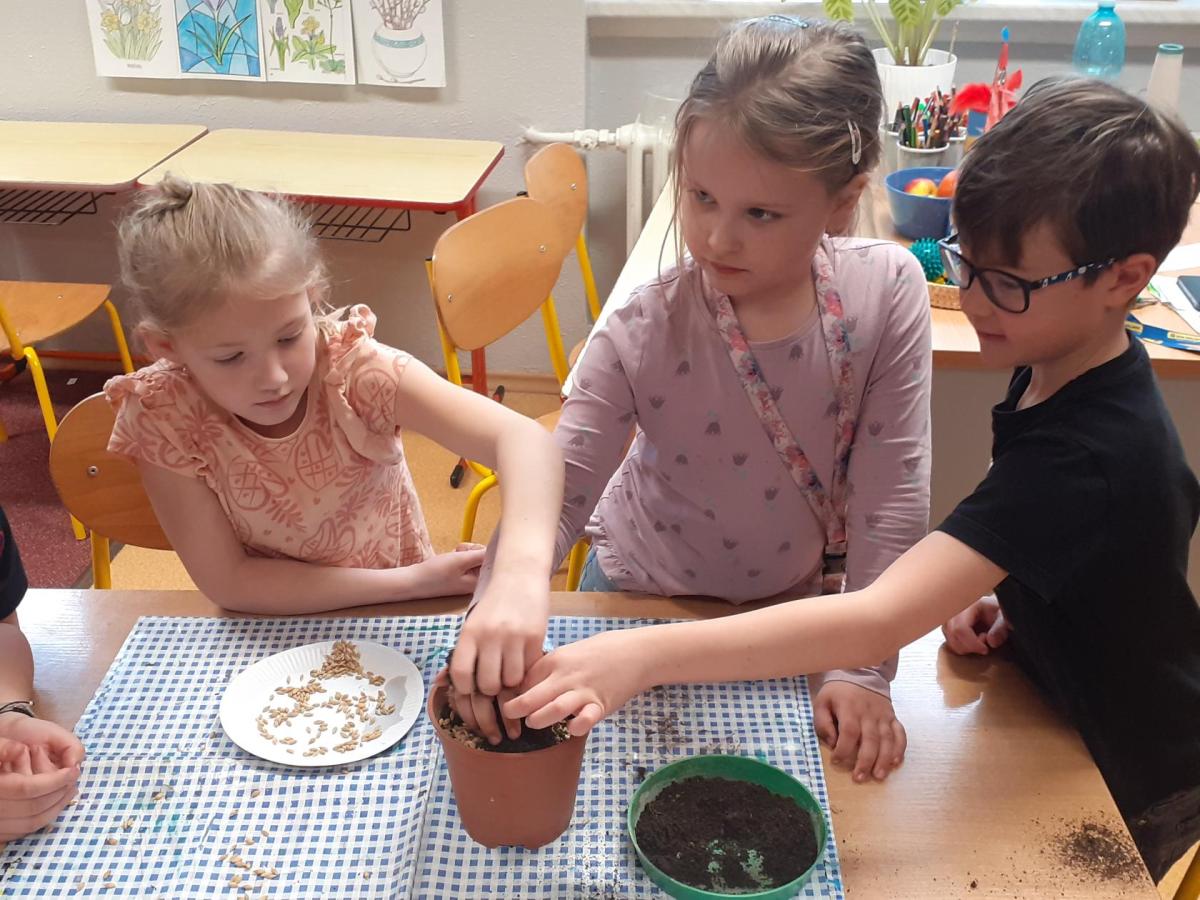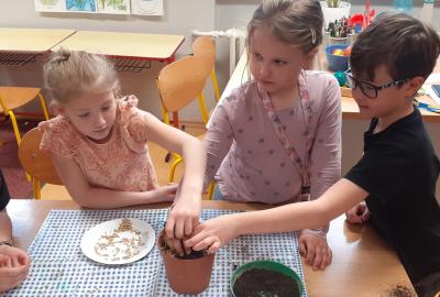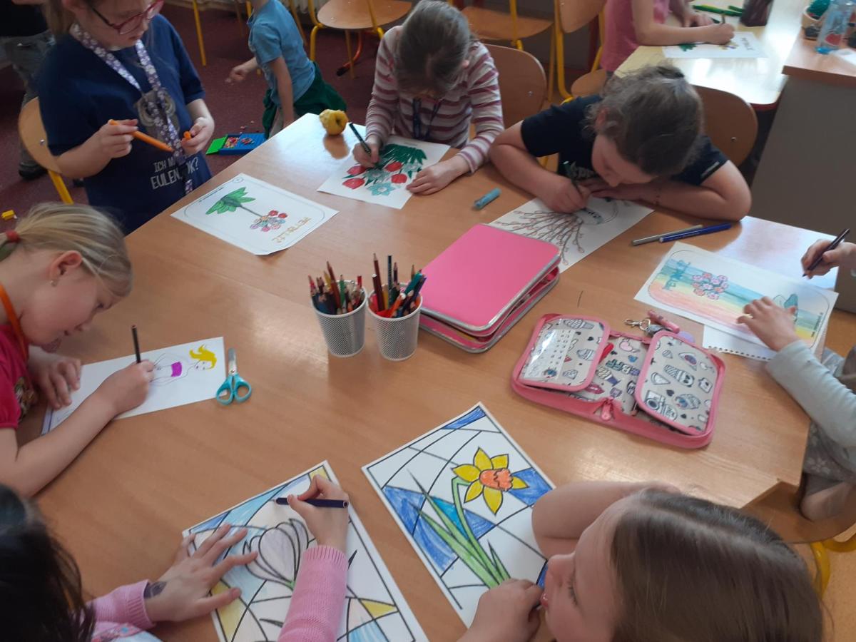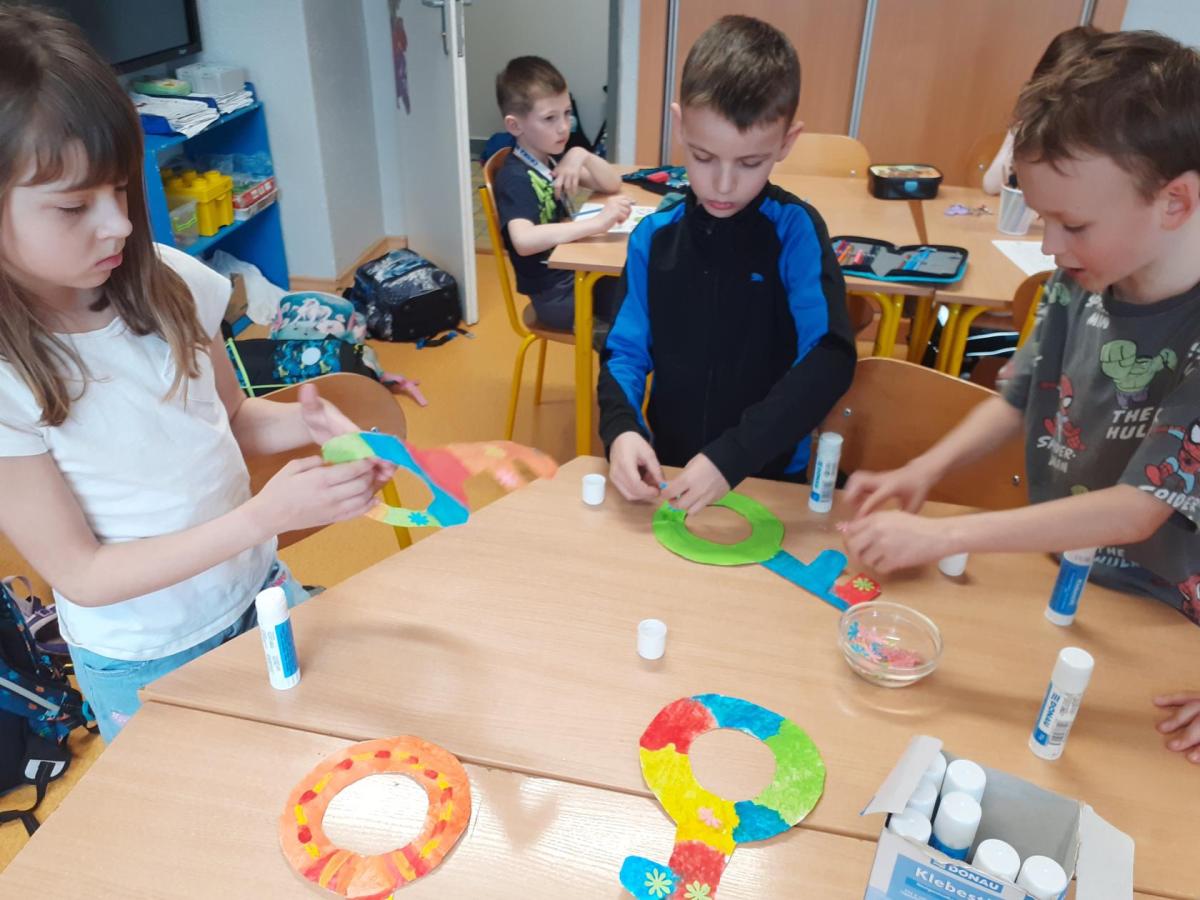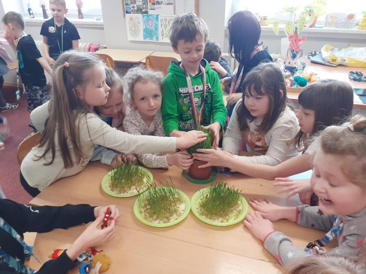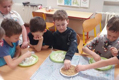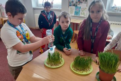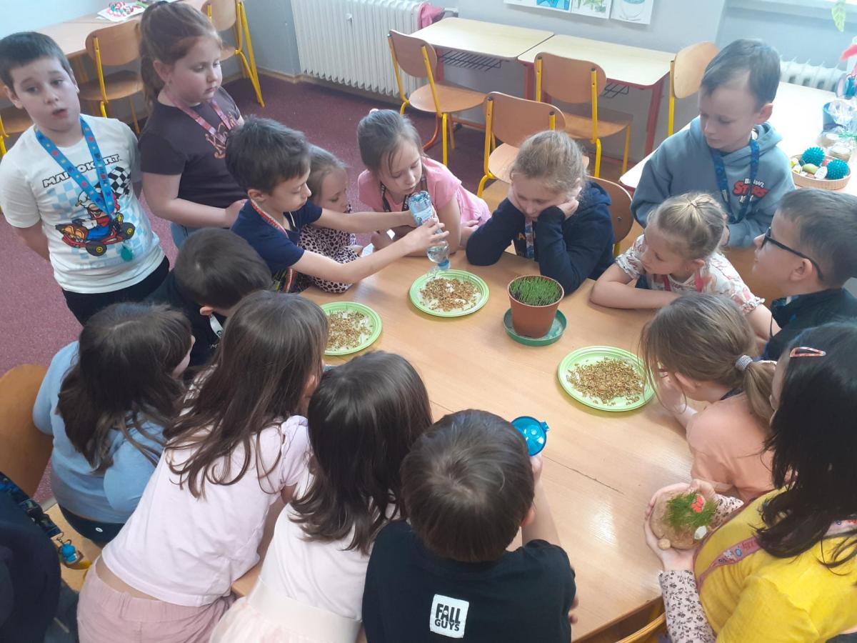 Přicházející jaro se promítlo i do našeho tvoření. Celá družina rozkvetla všemi barvami a pomocí vodovek a temper jsme si vytvořili jarní louku s nejznámějšími květinami, kam si každý umístil svého hmyzáka. Také jsme zaseli osení a pozorovali, jak semínko ožívá a vyvíjí se v novou rostlinu.