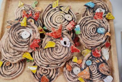 V keramickém kroužku jsme se s odchodem zimy pustili do nové tvorby a přivítali jaro i blížící se velikonoční svátky. Děti s nadšením pracovaly na jarních výrobcích a postupně začaly vznikat i krásné velikonoční dekorace.