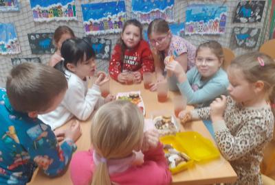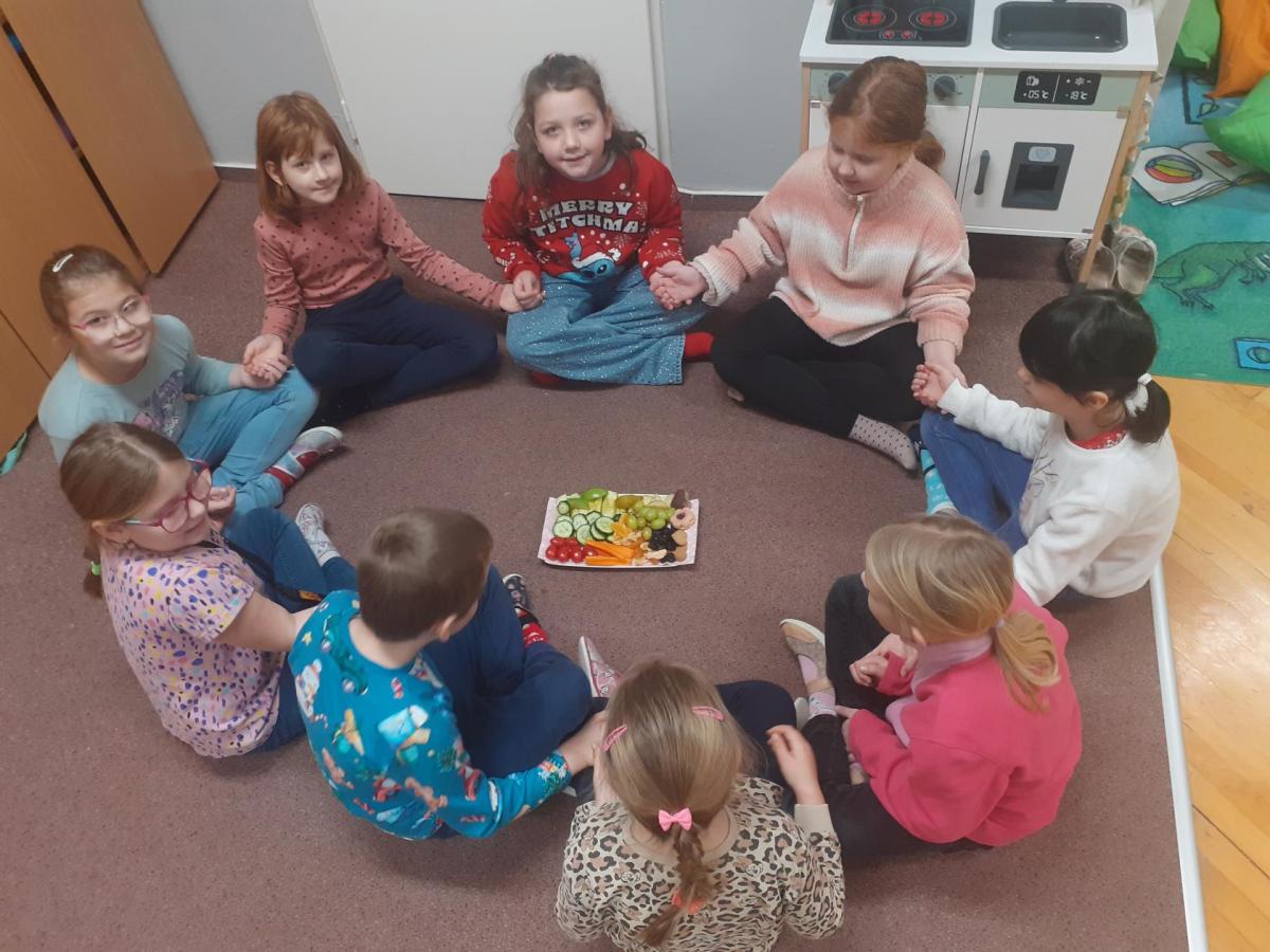 Po krátké jógové rozcvičce nás čekalo občerstvení a příjemná společná chvíle u teplého čaje. Jsem velice ráda, že se dětem naše setkávání líbí a vnímají jej jako příjemný a klidný začátek dne.