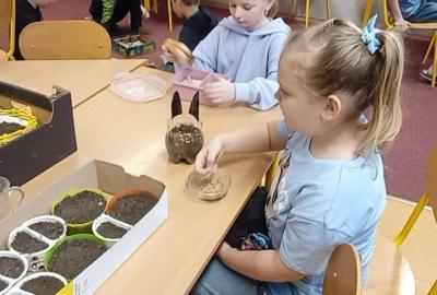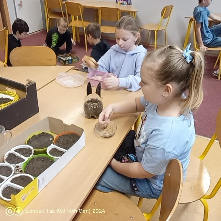 Jako každý rok se chystáme ve školní družině na svátky jara Velikonoce. Děti společně sejí osení , vytvářejí aranžmá, zdobí kraslice a další dovednosti, aby si vyzdobily své domovy a potěšily příbuzné.