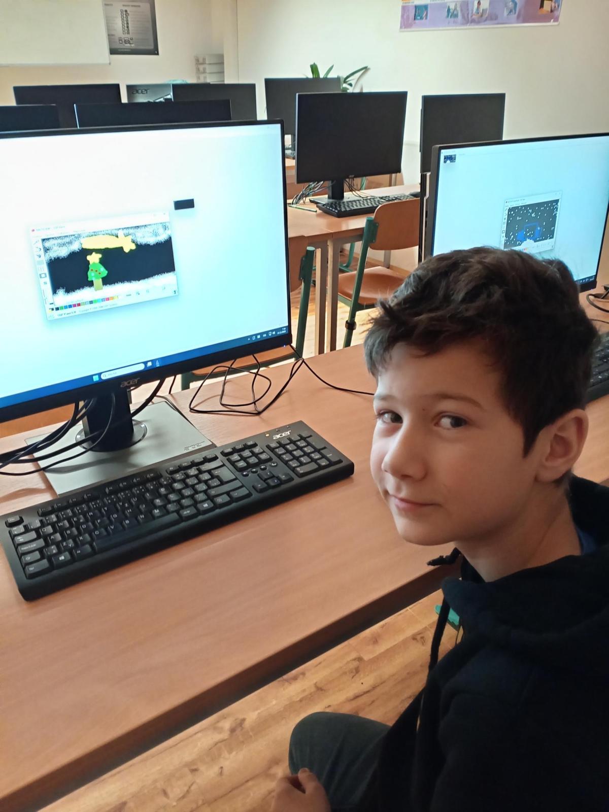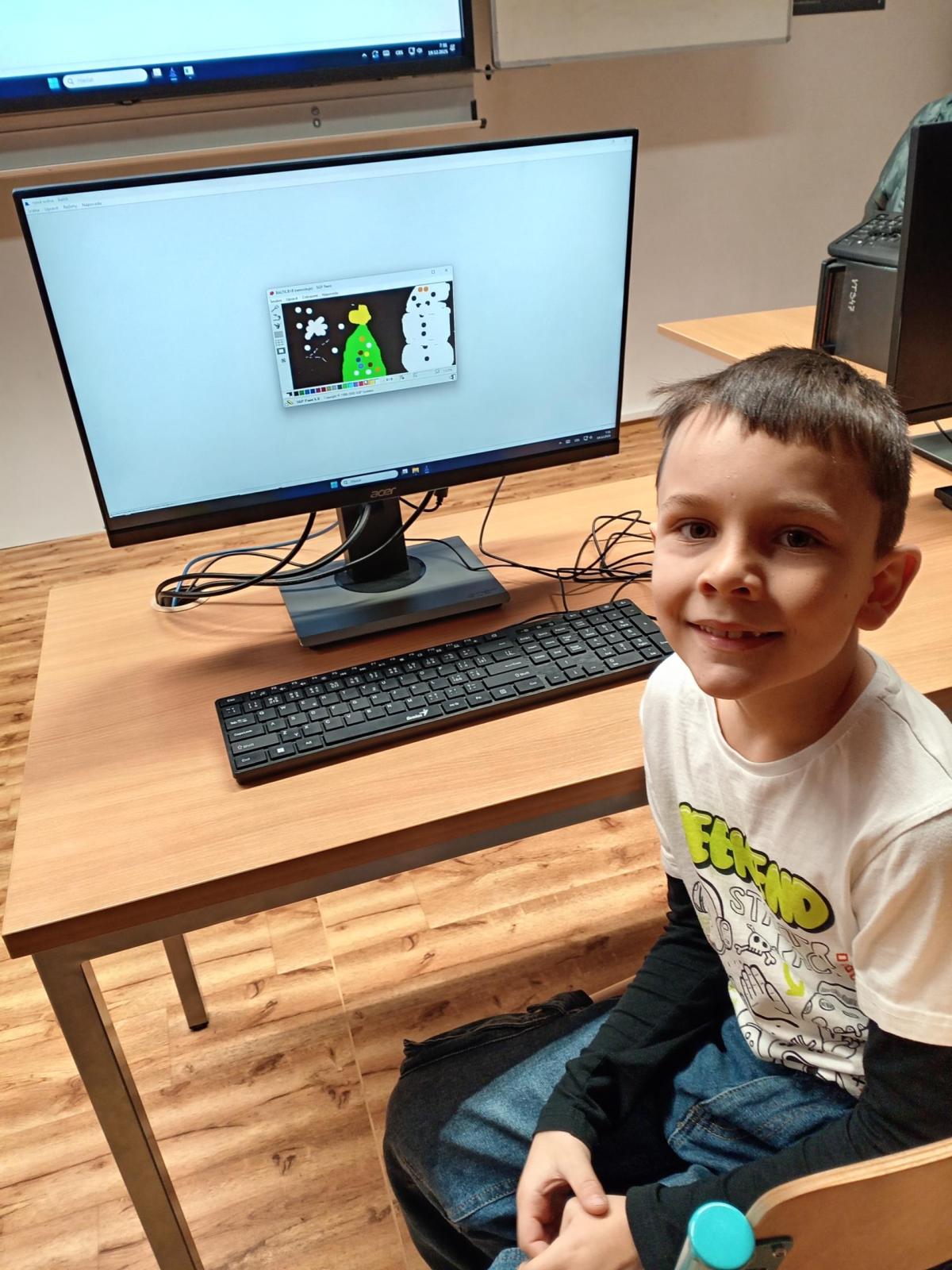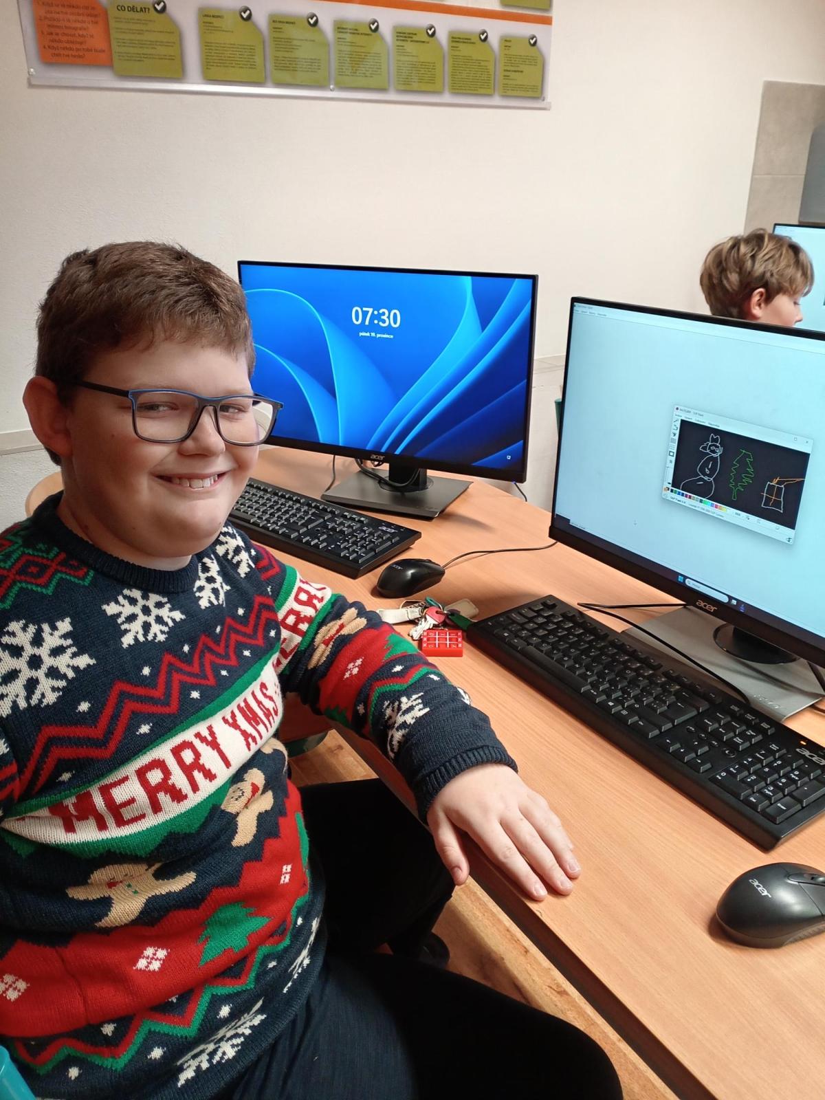 Vánoční atmosféra je všude kolem nás. Ani na počítačovém kroužku jí nelze nevnímat. Děti samy přišly s návrhem na soutěž o nejhezčí vánoční obrázek v počítačovém provedení.