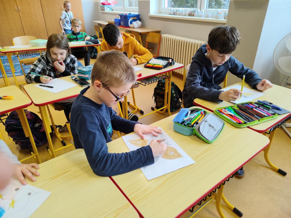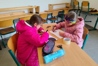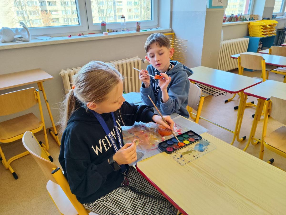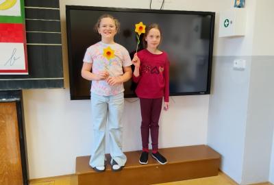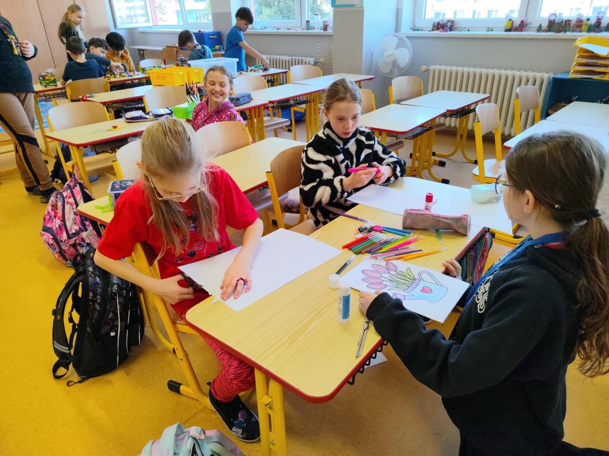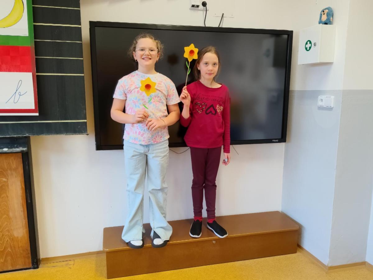 Jaro je v plném proudu a i naši čtvrťáci rádi skotačí venku na dětském hřišti. I přesto jejich venkovními nejoblíbenějšími aktivitami zůstávají vybíjená doplněná o fotbalové klání. Pohyb jim prostě dělá radost. V družině si děti pro své maminky vyrobily narcisy ke dni žen.