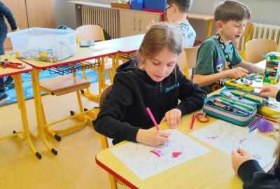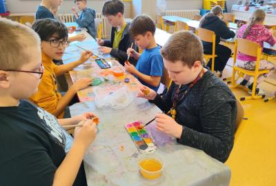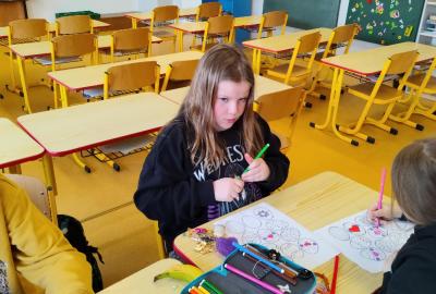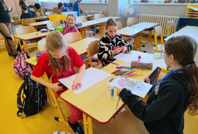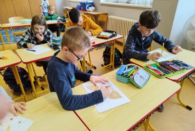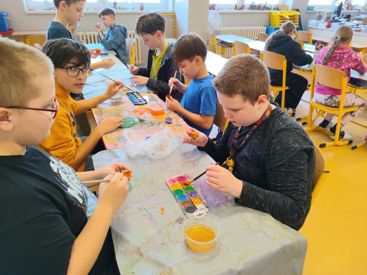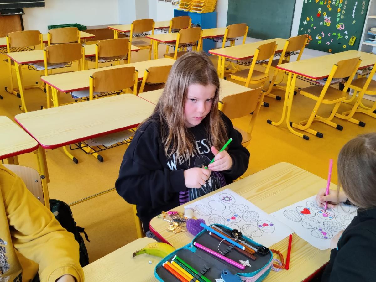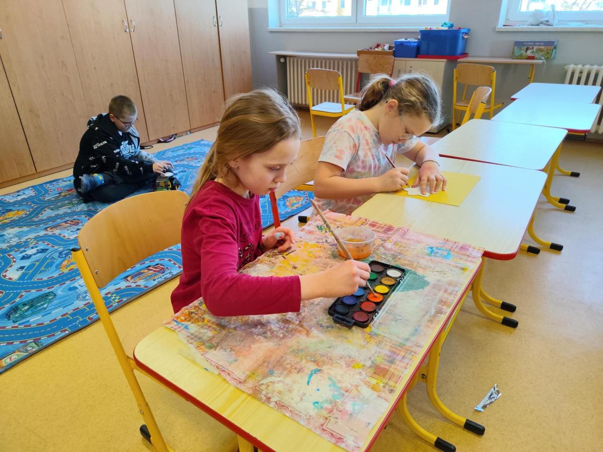 Jaro je v plném proudu a i naši čtvrťáci rádi skotačí venku na dětském hřišti. I přesto jejich venkovními nejoblíbenějšími aktivitami zůstávají vybíjená doplněná o fotbalové klání. Pohyb jim prostě dělá radost. V družině si děti pro své maminky vyrobily narcisy ke dni žen.
