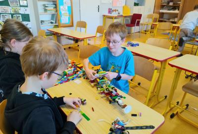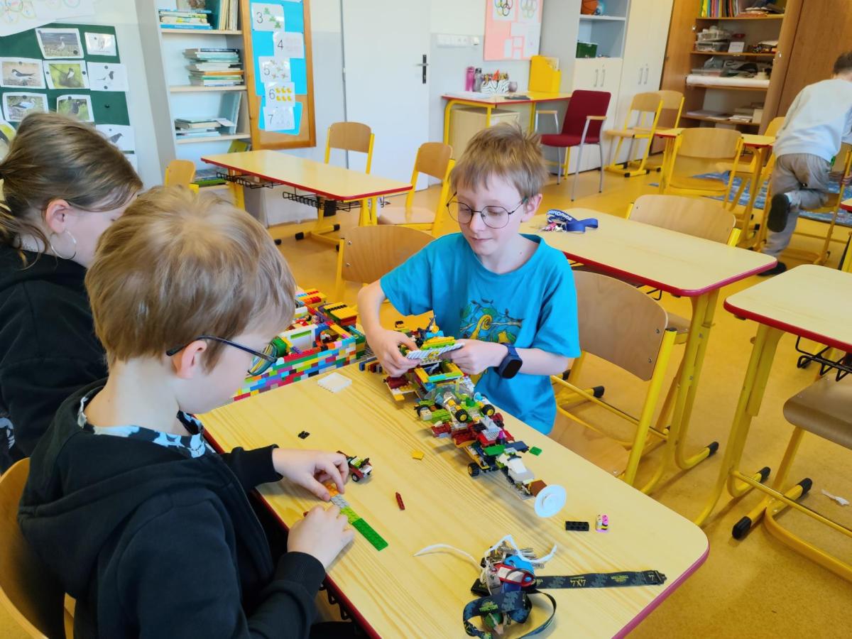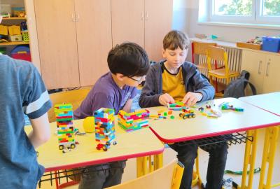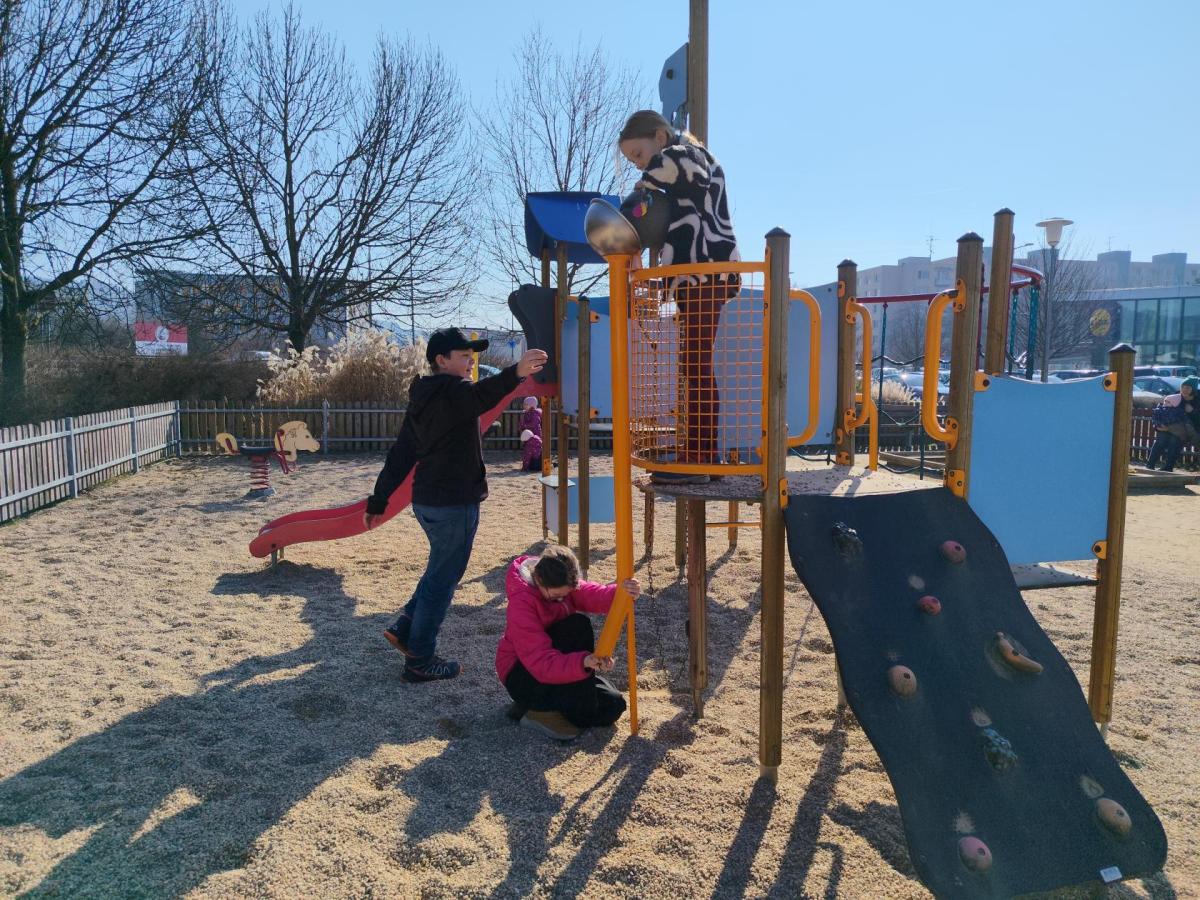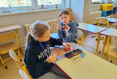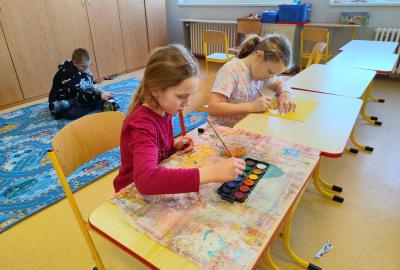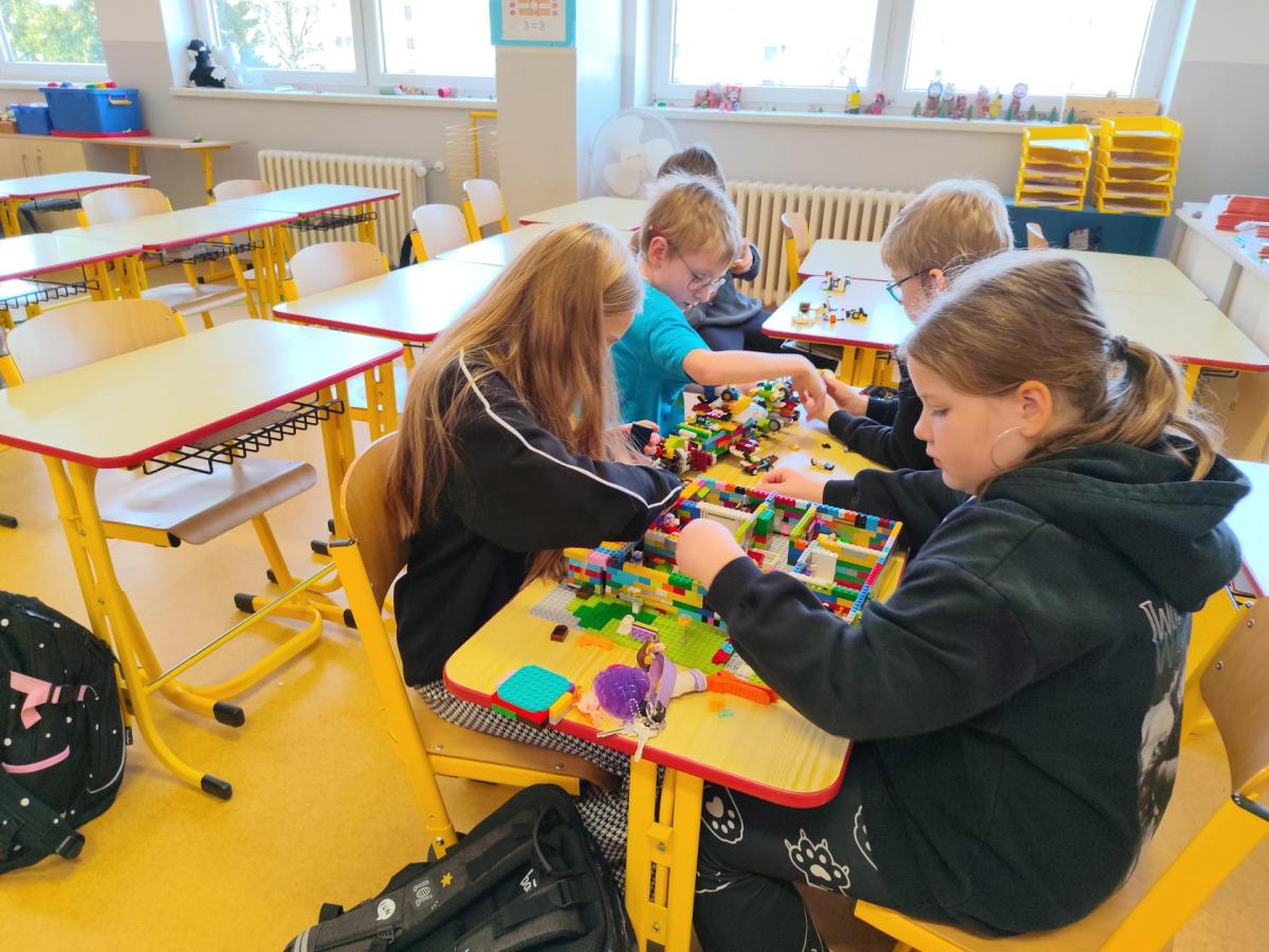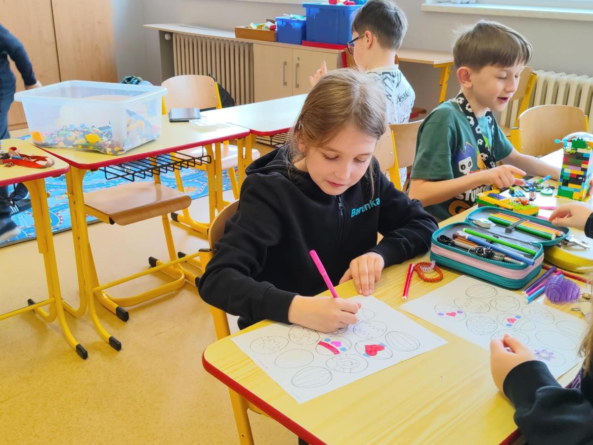 Jaro je v plném proudu a i naši čtvrťáci rádi skotačí venku na dětském hřišti. I přesto jejich venkovními nejoblíbenějšími aktivitami zůstávají vybíjená doplněná o fotbalové klání. Pohyb jim prostě dělá radost. V družině si děti pro své maminky vyrobily narcisy ke dni žen.