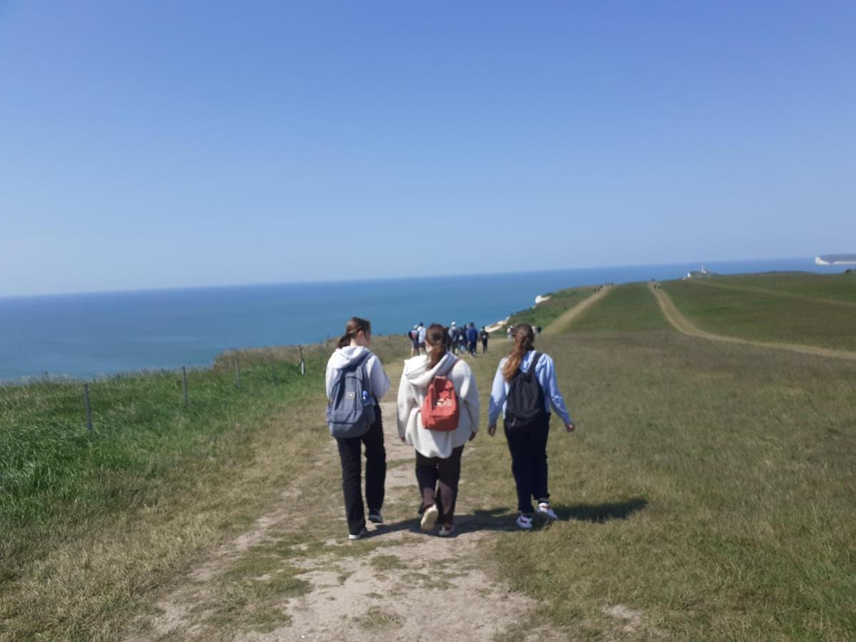 Druhý den ráno, v sobotu 20. 5. 2023 v osm hodin jsme se společně setkali na meeting pointu a vyrazili na celodenní výlet do jižní Anglie k pobřeží Atlantiku. Procházkou po vysokých křídových útesech Seven Sisters – Beachy Head jsme směřovali asi 4 km k majáku, kochali se nádhernými výhledy na moře a útesy. Pak následoval přesun do přímořského letoviska Brighton s kamínkovými plážemi, navštívili jsme Sea Life – nejstarší mořské akvárium. Ti odvážnější a nebojácní výšek se vydali na vyhlídkovou jízdu gigantickou jehlou i360 do výšky 138 metrů. Pohyblivá prosklená vyhlídková plošina nám umožnila během 25minutové jízdy nádhernou vyhlídku na celé letovisko. Někteří se drželi při zemi, a jako alternativu programu si raději zašli prohlédnout nádherný indický palác Royal Pavilon, historické molo West Pier a smočili nohy v moři. Večer nás čekal opět přesun zpět do Londýna, večeře a další noc v rodinách.