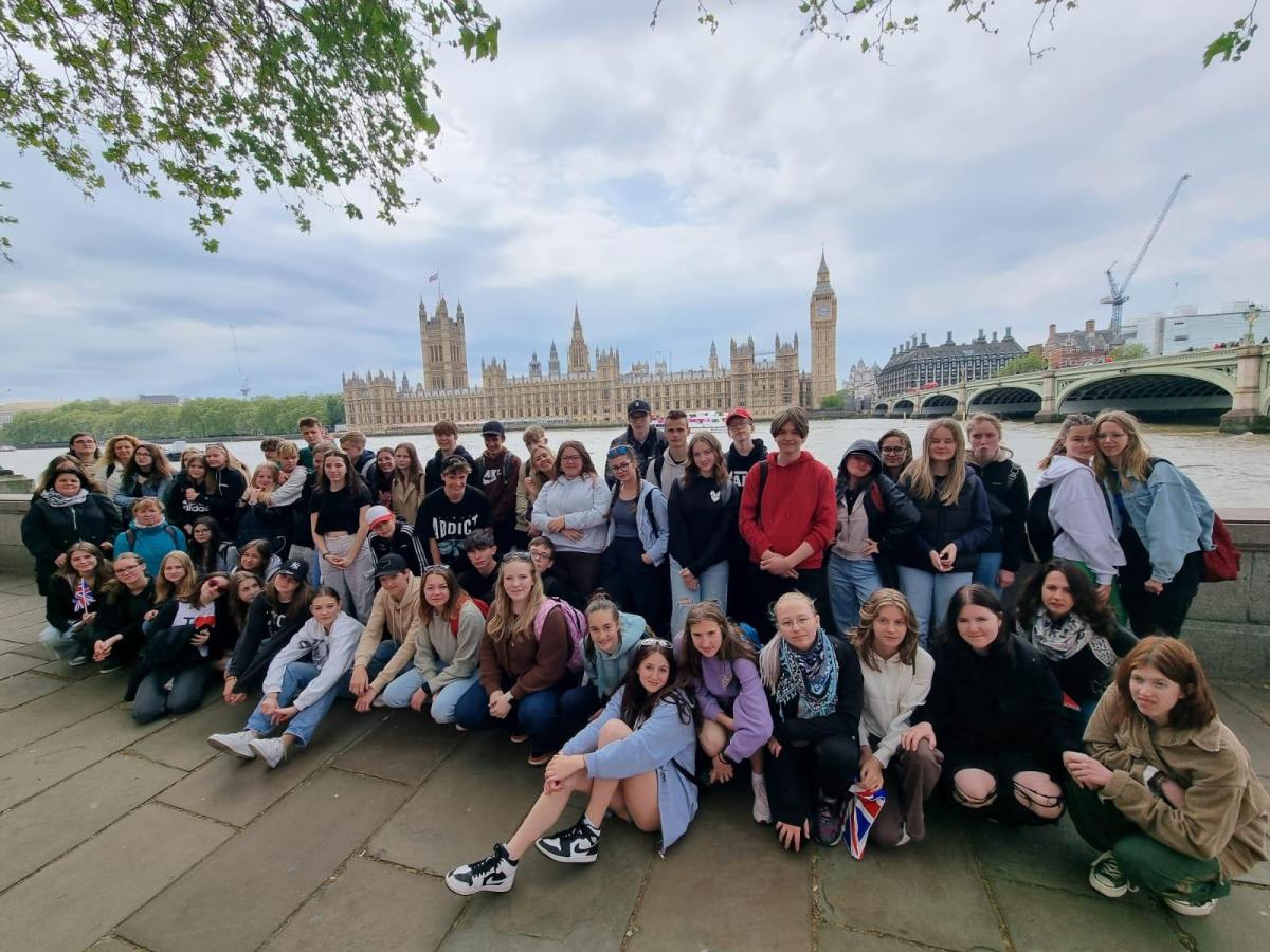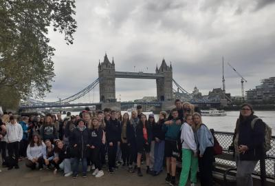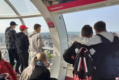 Pondělí 22. 5.2023 patřilo opět Londýnu, tentokrát jsme mířili na historickou východní část. Velkým zážitkem bylo překonání řeky Temže kabinovou lanovkou. Z výšky 90 m jsme viděli Millenium Dome a také slavné bariéry na Temži, které chrání britskou metropoli před možnými povodněmi. Projeli jsme nadzemní linkou a ocitli se u Tower of London. Po bezpečnostní kontrole, kterou jsme museli projít, jsme se pokochali nádhernou vyhlídkou z mrakodrapu The Garden at 120. Prošli jsme si legendární Tower Bridge a kdo měl zájem mohl dojít po jižním břehu řeky Temže až ke křižníku HMS Belfast. Po krátkém občerstvení místními specialitami jako jsou Fish and chips a nákupy suvenýrů jsme doputovali k památníku velkého požáru Londýna Monument. Opět metrem jsme se přesunuli k obřímu vyhlídkovému kolu London Eye. Rozděleni do třech kabin jsme se, díky nádhernému slunečnému počasí, které nás provázelo celý týden, pokochali nezapomenutelnou vyhlídkou na celý Londýn. Opět metrem jsme se přesunuli k 02 Aréně, největší zastřešené aréně na světě, kde na nás opět čekal náš autobus. Byla před námi poslední noc v našich hostitelských rodinách a ráno loučení.