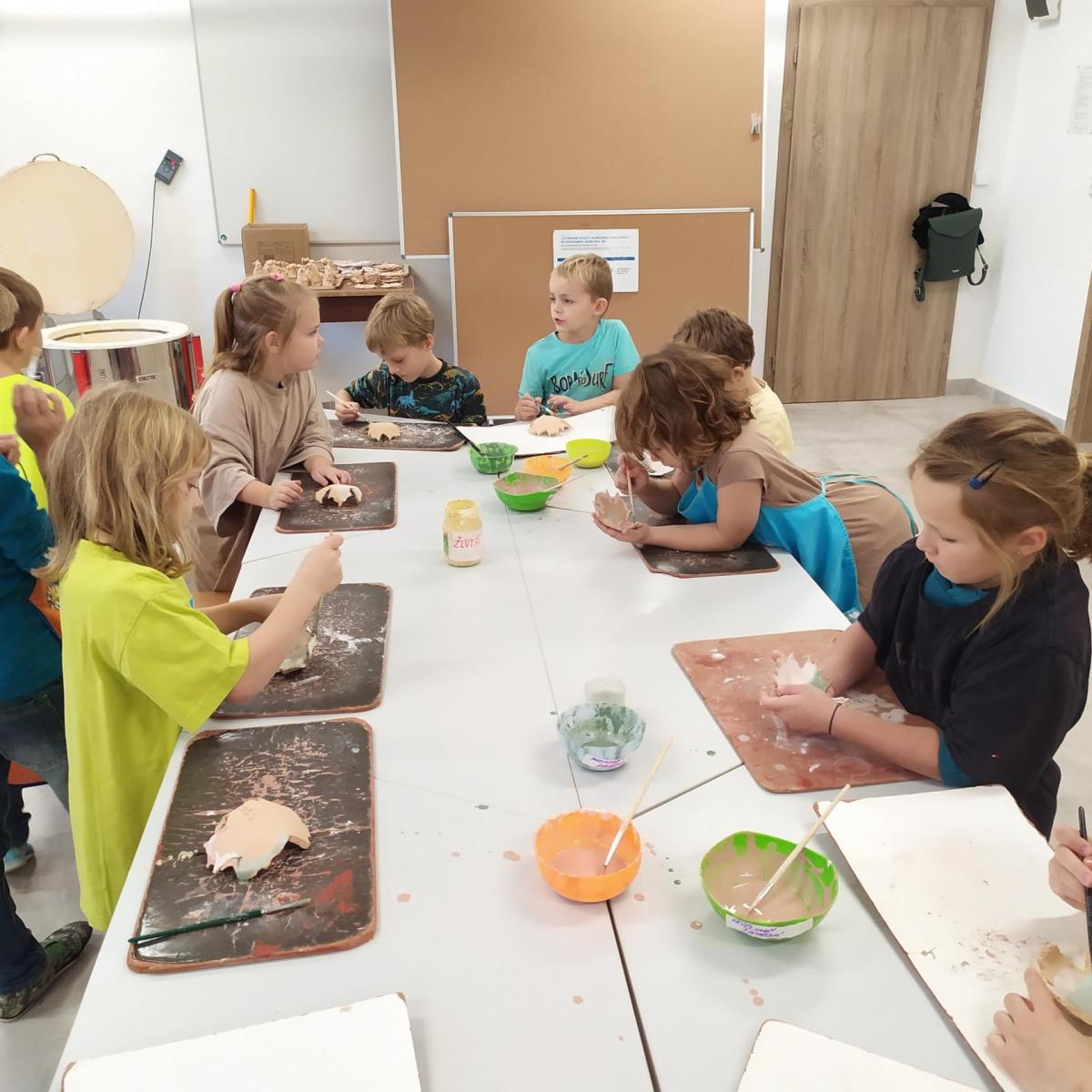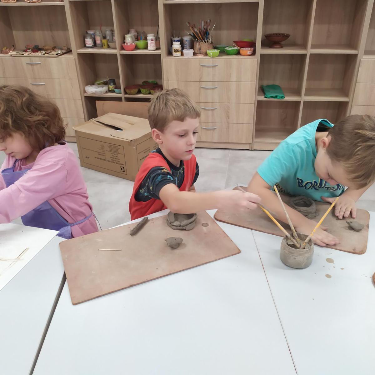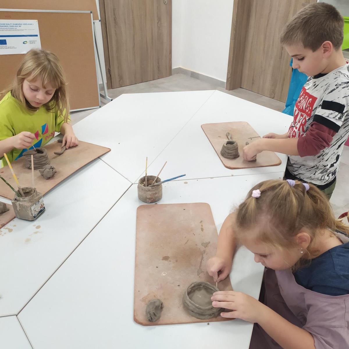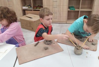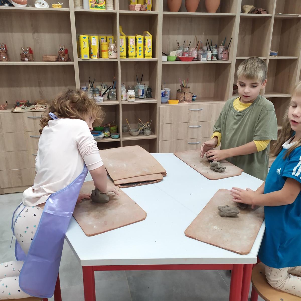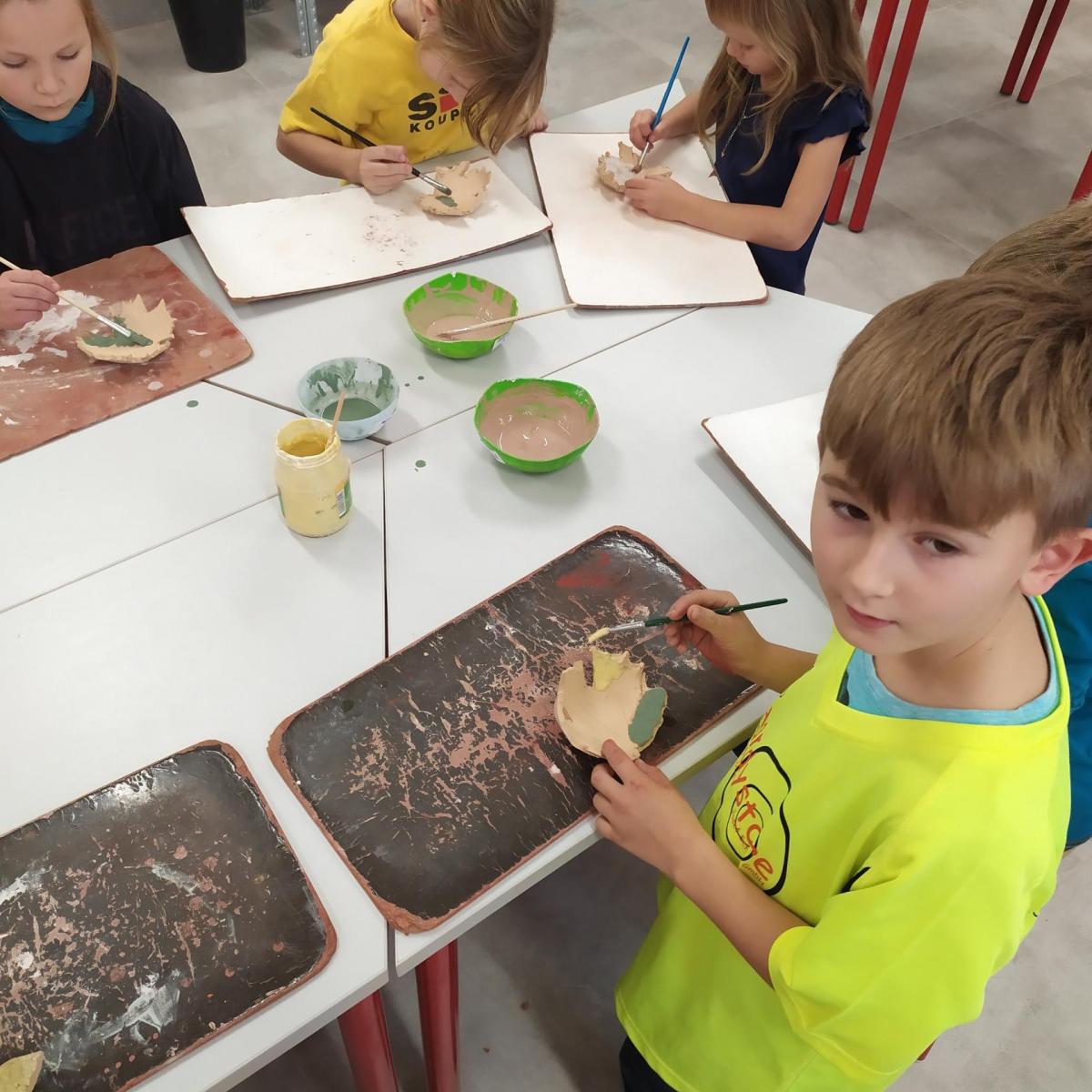 Děti se v kroužku seznamují s různými technikami a postupy při zpracování keramické hlíny.
