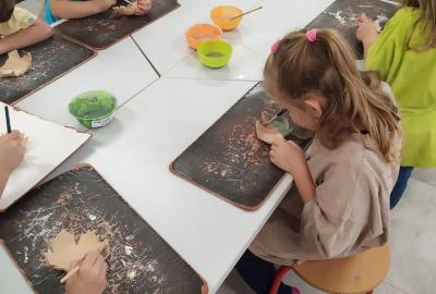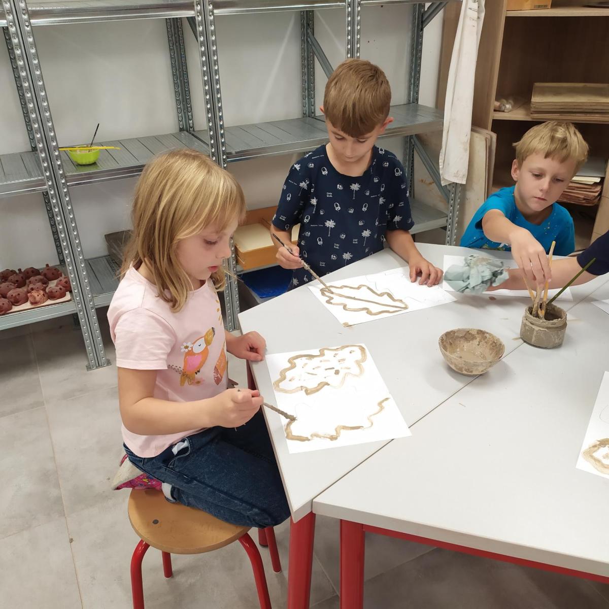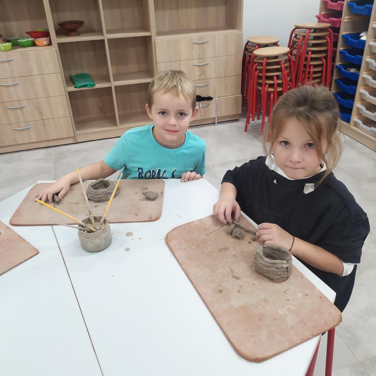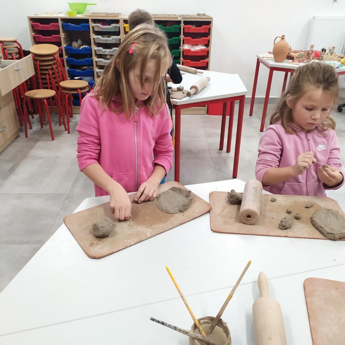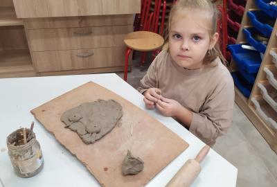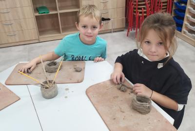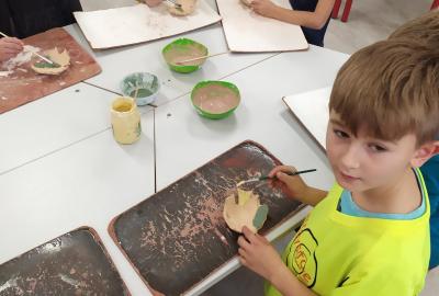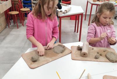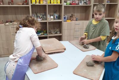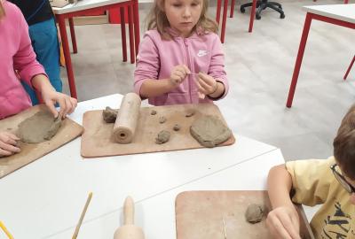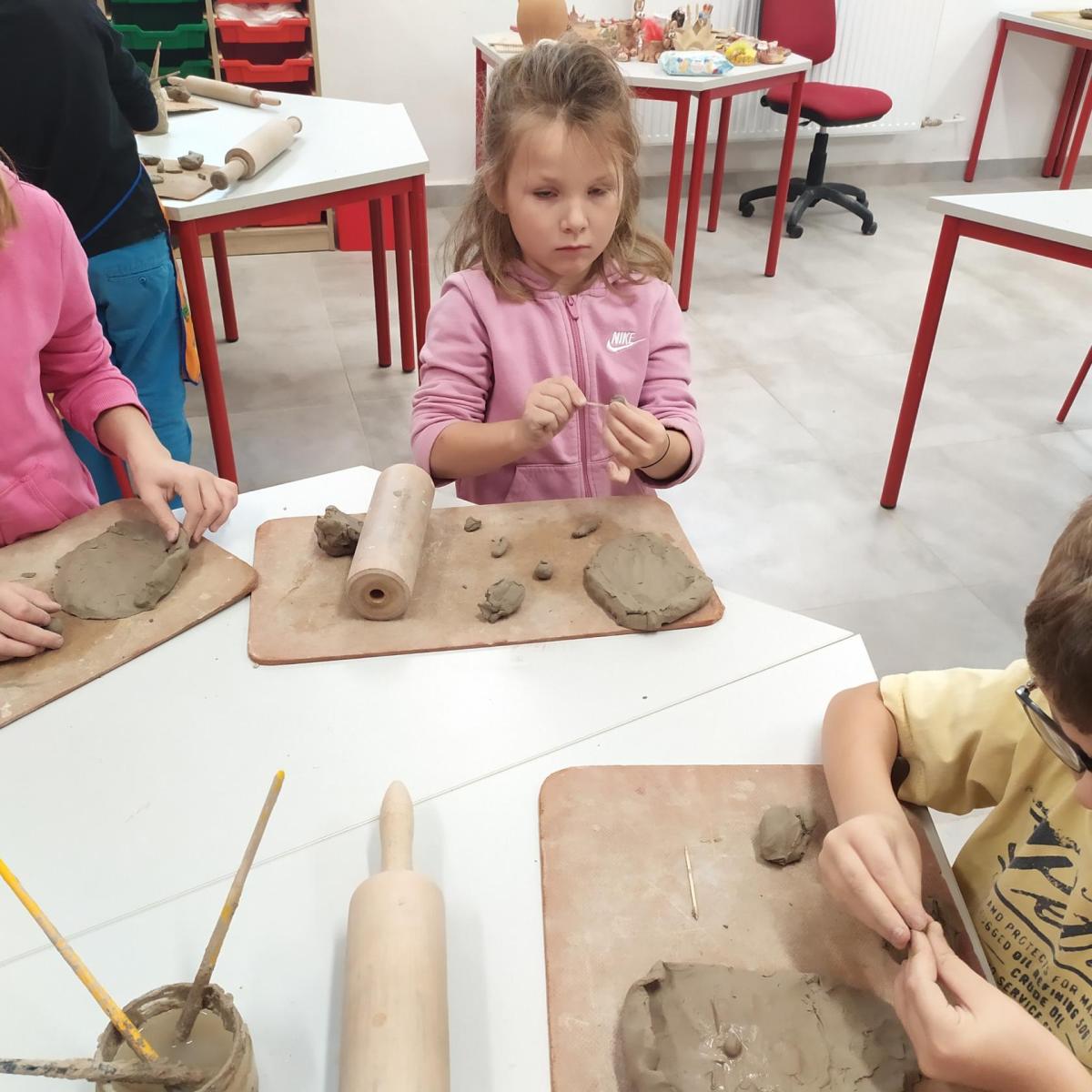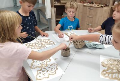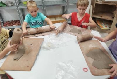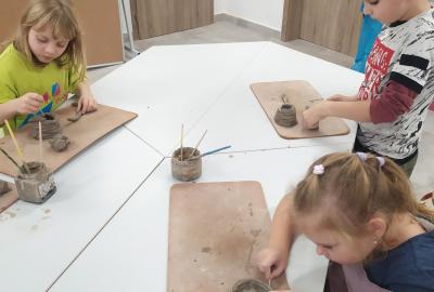 Děti se v kroužku seznamují s různými technikami a postupy při zpracování keramické hlíny.