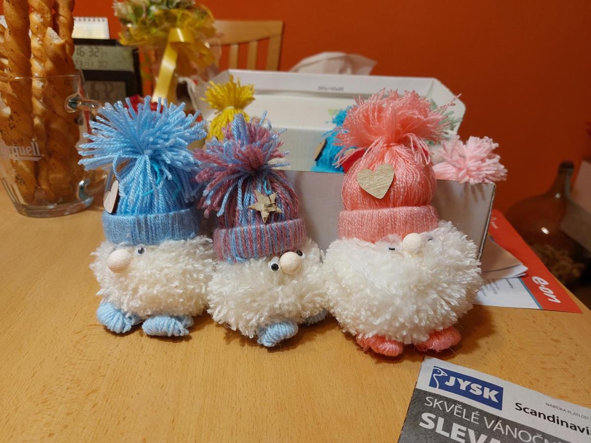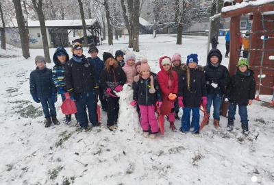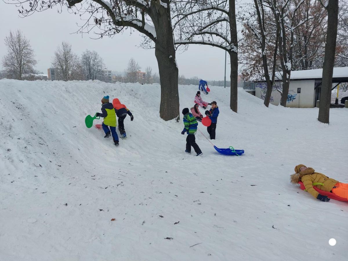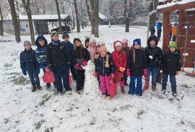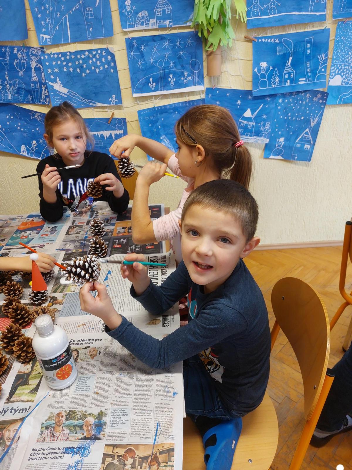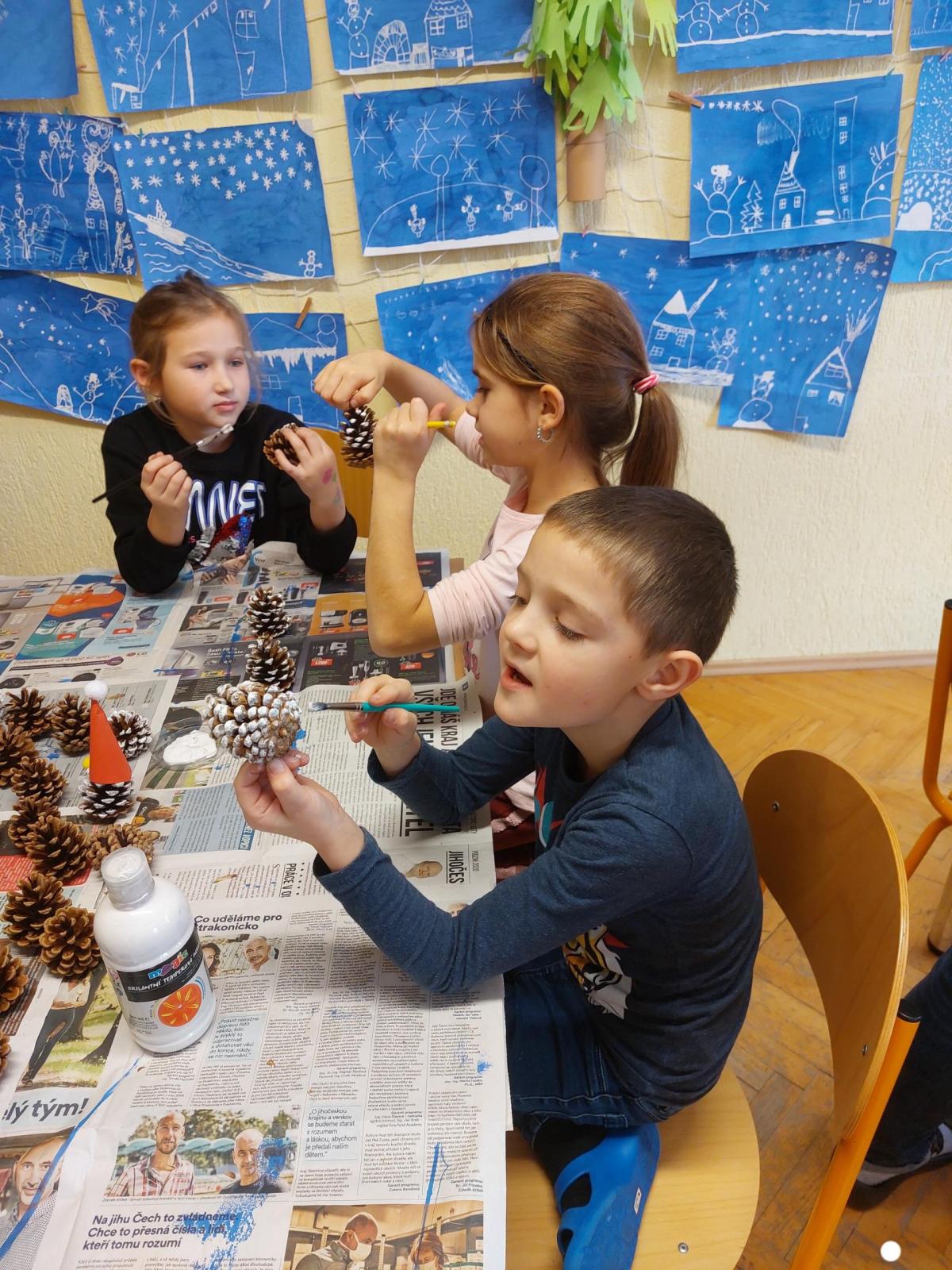 Ještě než napadl sníh, jsme si nakreslili, jak by jsme si přáli vytáhnout sáňky a boby a pořádně si zalyžovat. A ejhle zima nám přání splnila. Napadl sníh a vyrazili jsme si užívat sněhu . A na blížící se vánoční trhy jsme vyrobily zimní skřítky ze šišek a vlny.