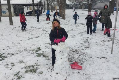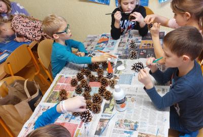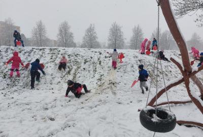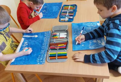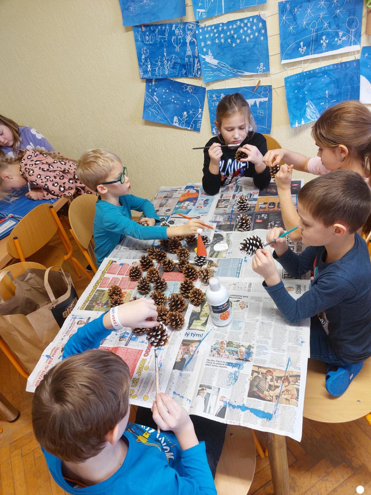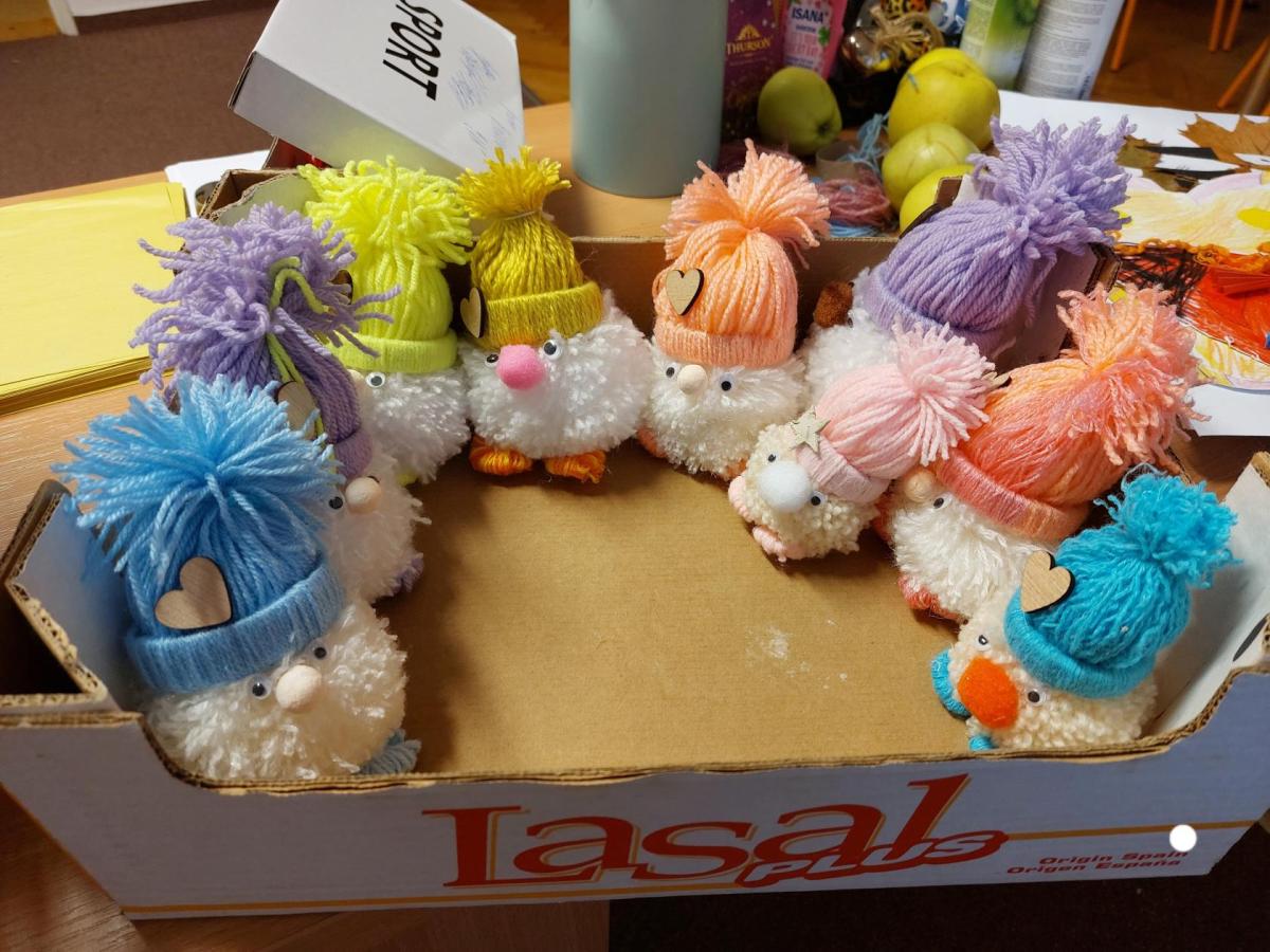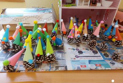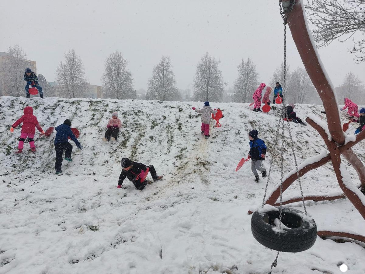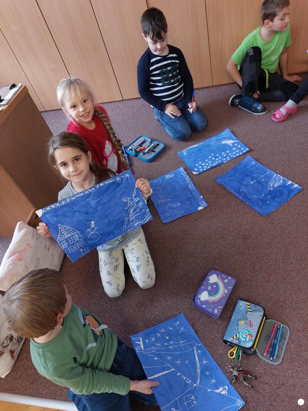Ještě než napadl sníh, jsme si nakreslili, jak by jsme si přáli vytáhnout sáňky a boby a pořádně si zalyžovat. A ejhle zima nám přání splnila. Napadl sníh a vyrazili jsme si užívat sněhu . A na blížící se vánoční trhy jsme vyrobily zimní skřítky ze šišek a vlny.