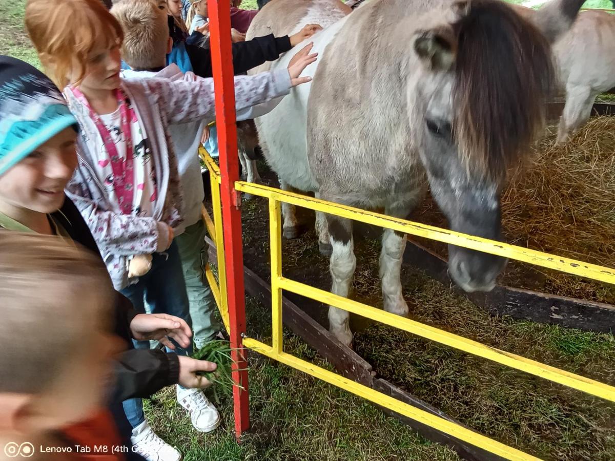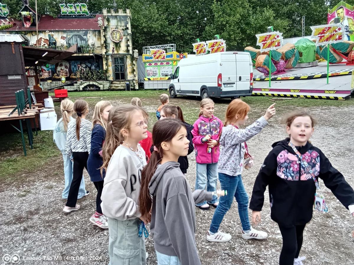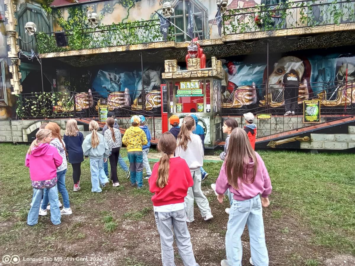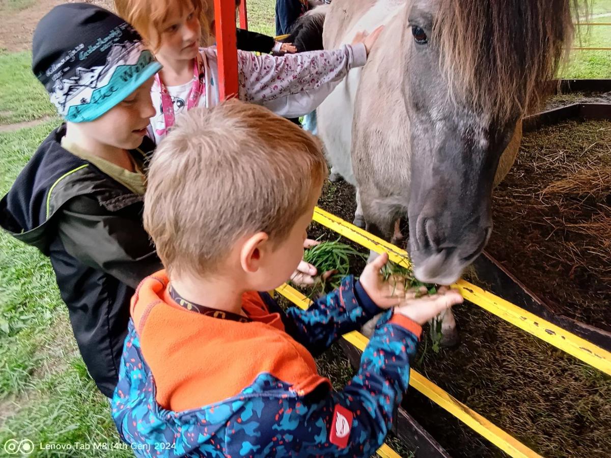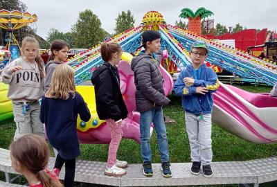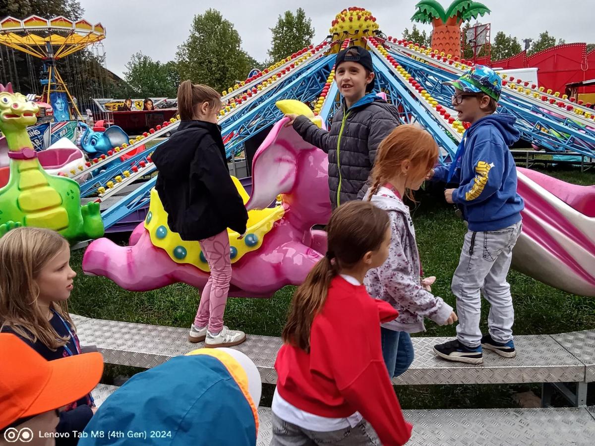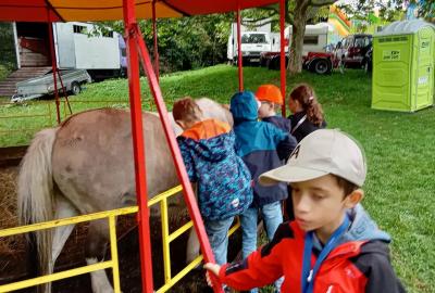 Děti si ve školní družině nejen vyrobily kolotoč, ale také se šly podívat na pouťové atrakce. I když nebylo moc hezké počasí, tak si alespoň pohladily koníčky.