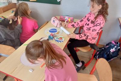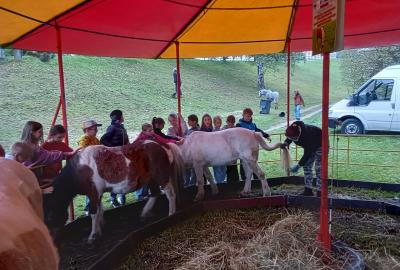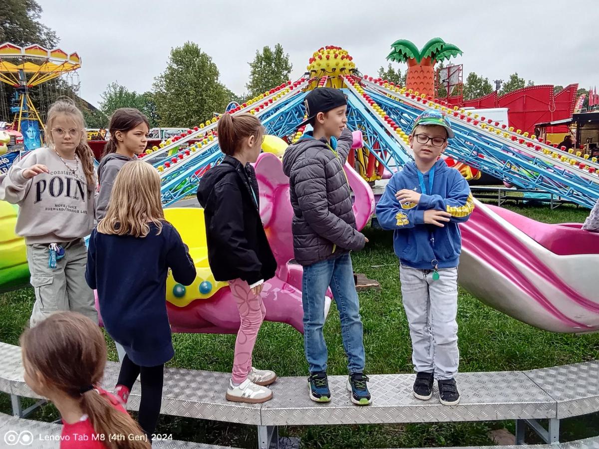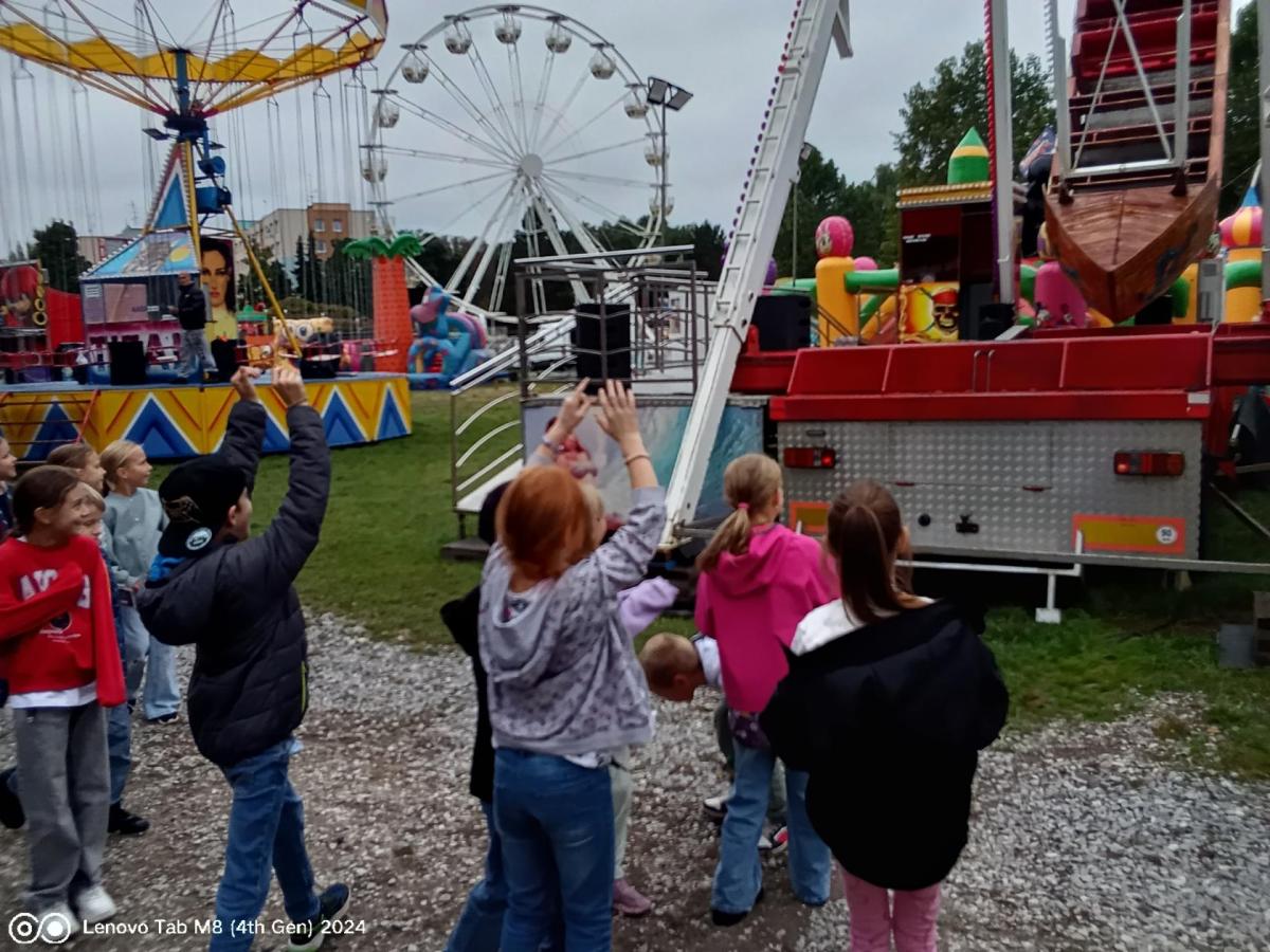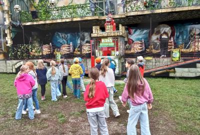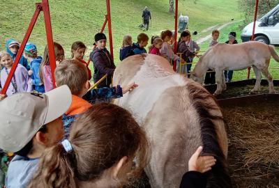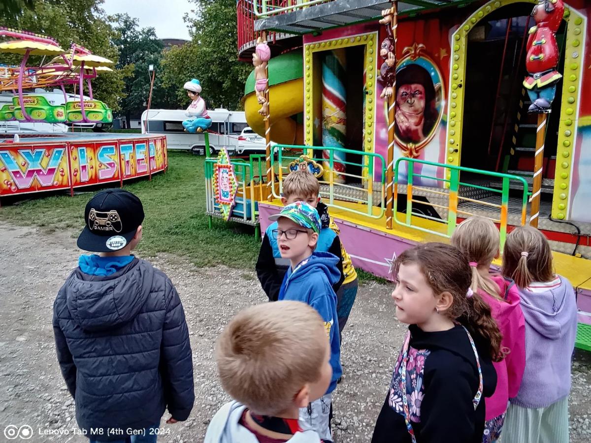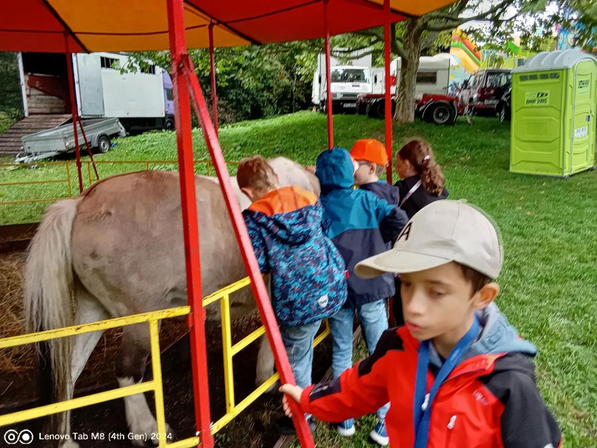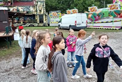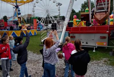 Děti si ve školní družině nejen vyrobily kolotoč, ale také se šly podívat na pouťové atrakce. I když nebylo moc hezké počasí, tak si alespoň pohladily koníčky.