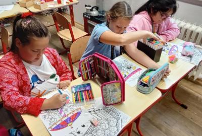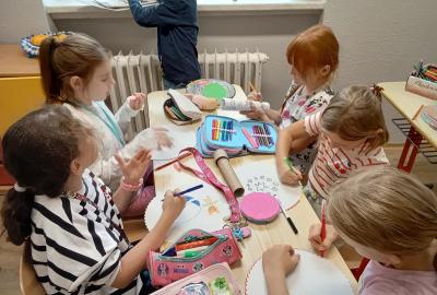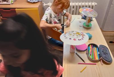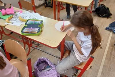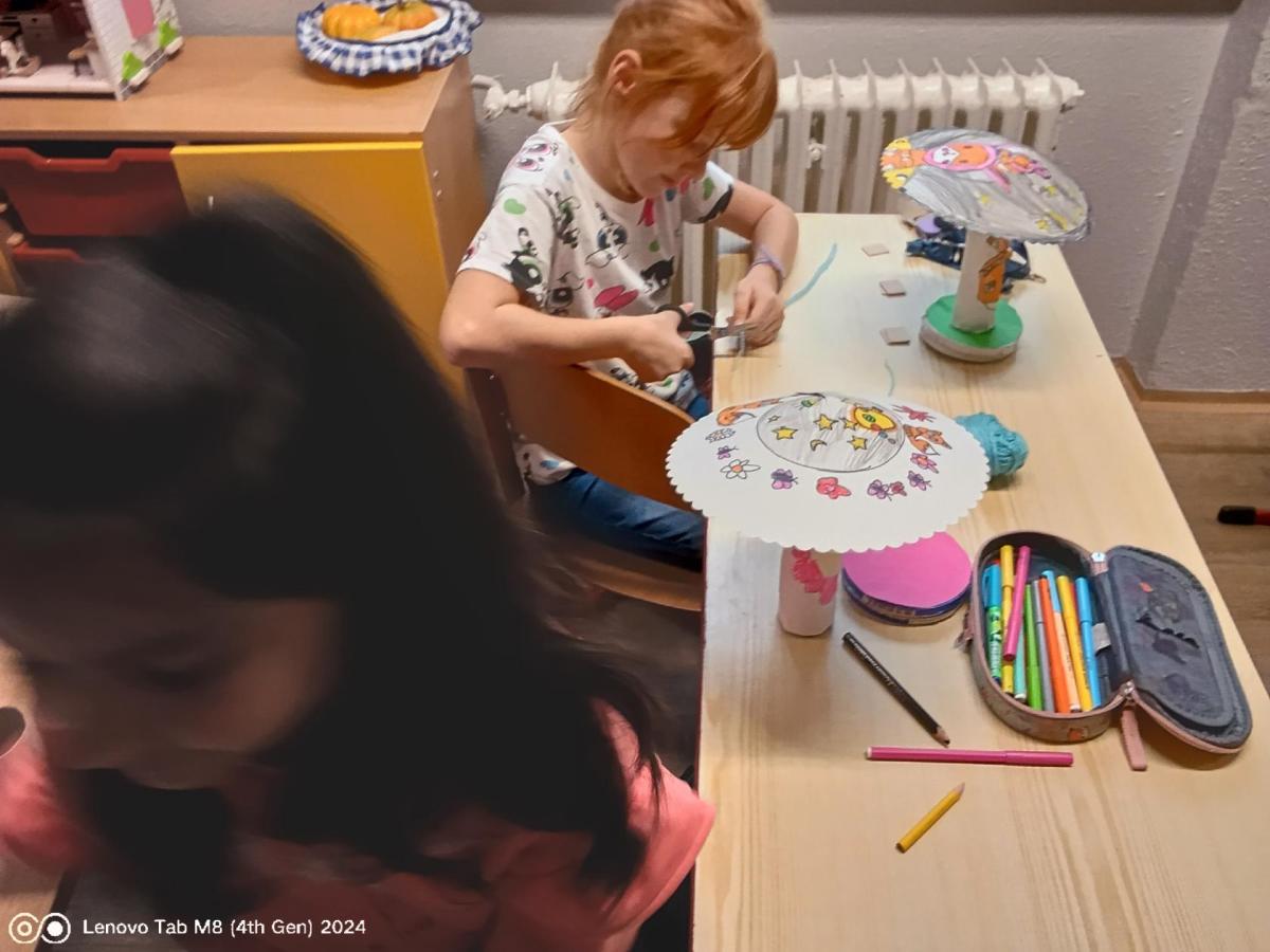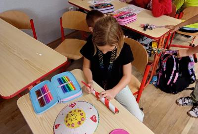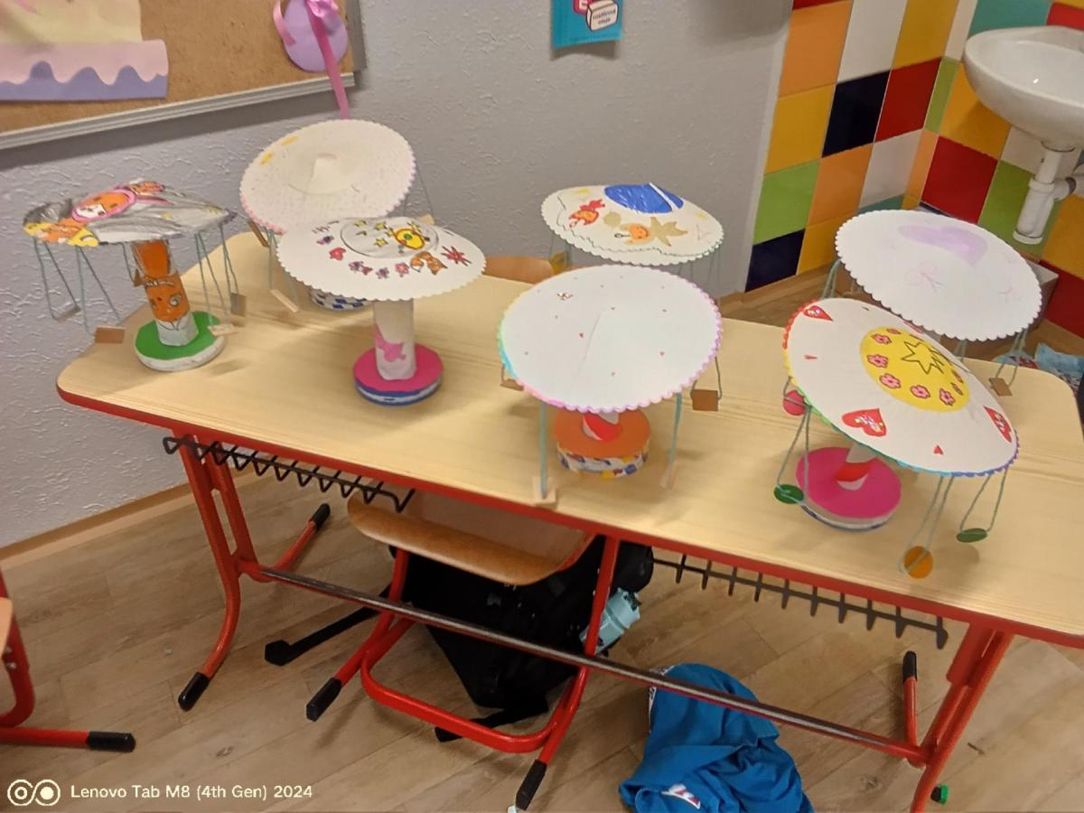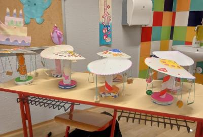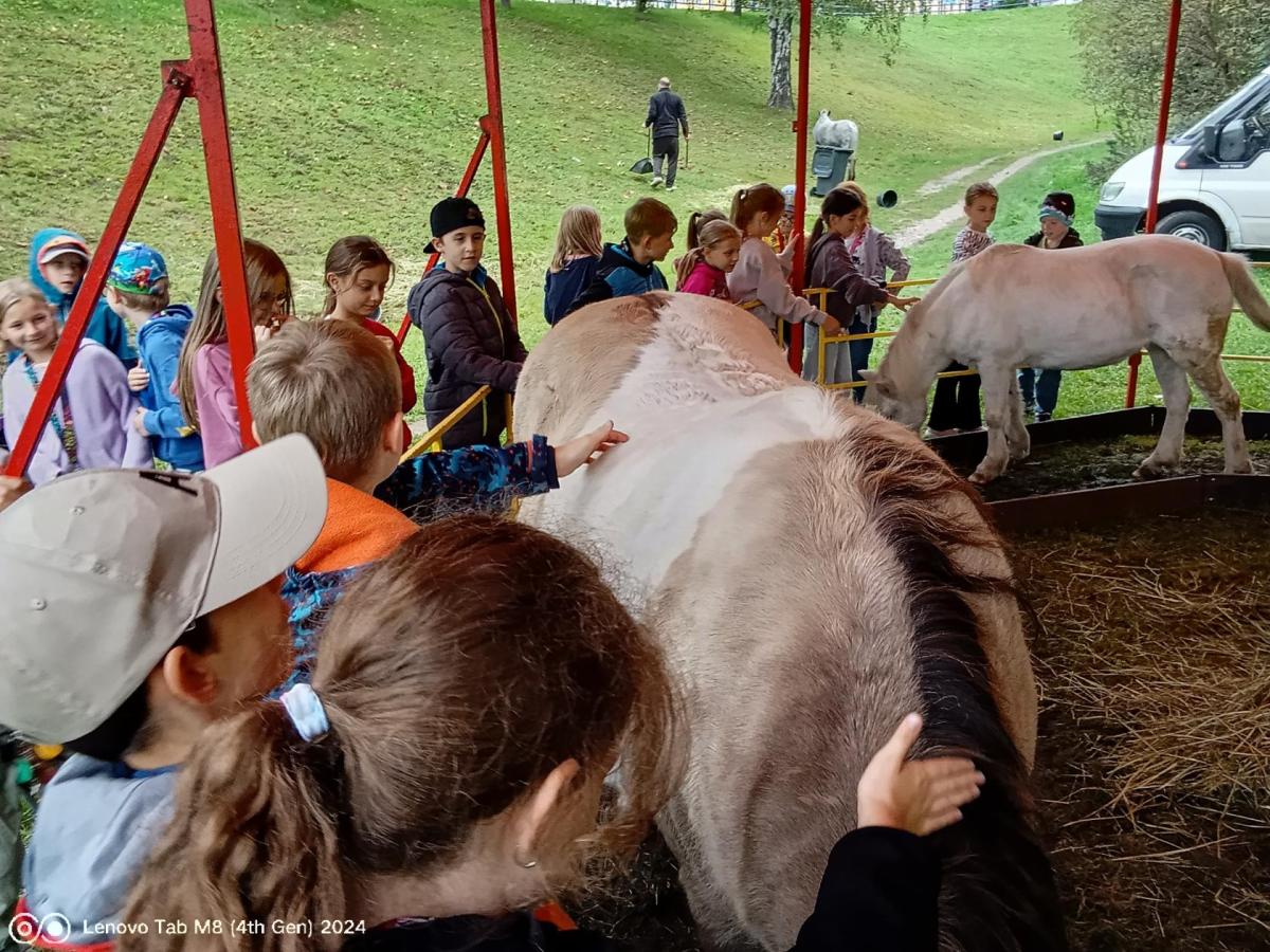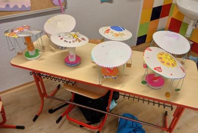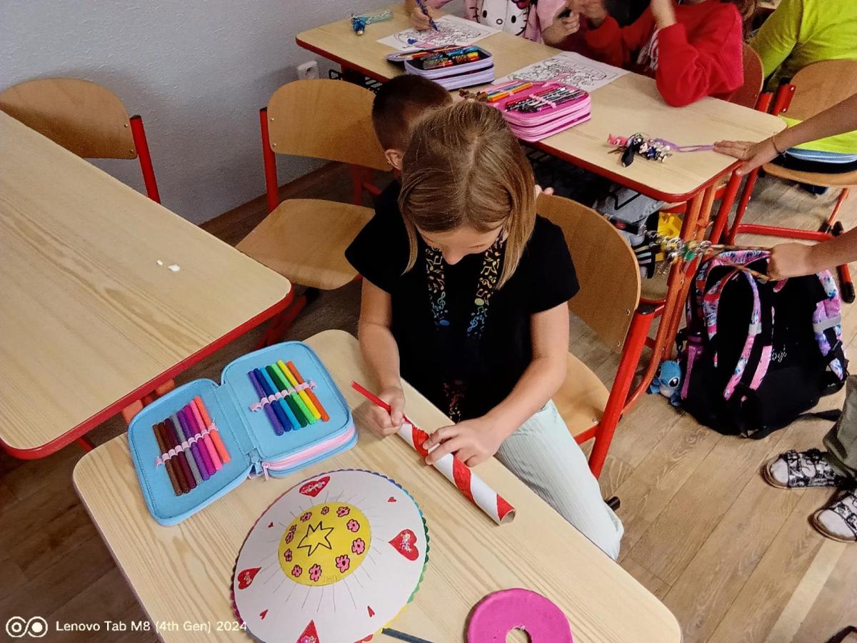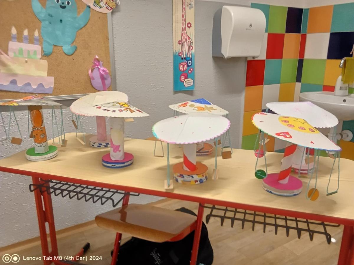 Děti si ve školní družině nejen vyrobily kolotoč, ale také se šly podívat na pouťové atrakce. I když nebylo moc hezké počasí, tak si alespoň pohladily koníčky.