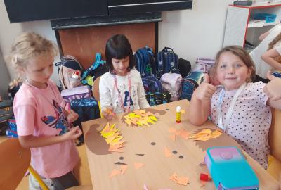 Už během prvního měsíce jsme si družinu vyzdobili vlastnímí výtvory a společně vytvořili našeho "družinového ježka". Září jsme zakončili prohlídkou Václavské pouti.