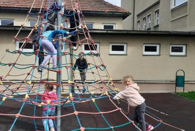 Hrajeme si, vyrábíme, malujeme a volný čas trávíme na školním hřišti nebo na vycházkách.
