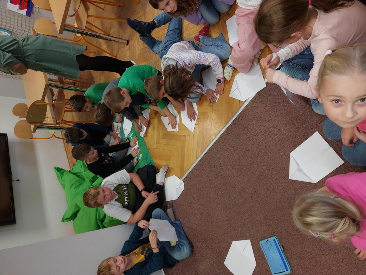 Nejprve si každý mohl vybrat, jaký typ letadélka si chce postavit – někdo zvolil klasickou vlaštovku, jiný experimentoval s delší šipkou nebo zkusil vlastní originální tvar. Pomáhali jsme si navzájem, porovnávali různé způsoby skládání a zkoušeli, která konstrukce poletí nejdál nebo nejrovněji.
