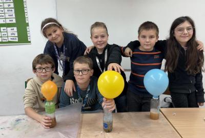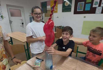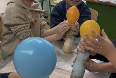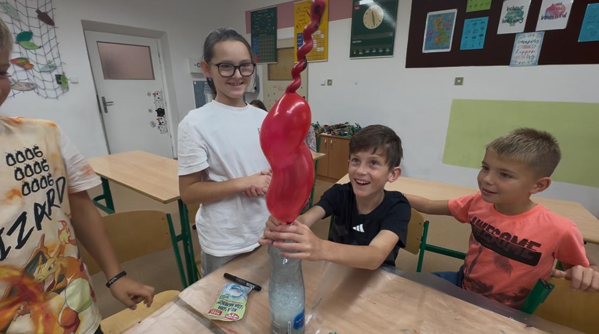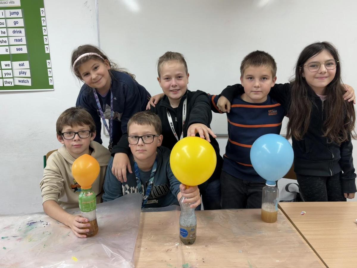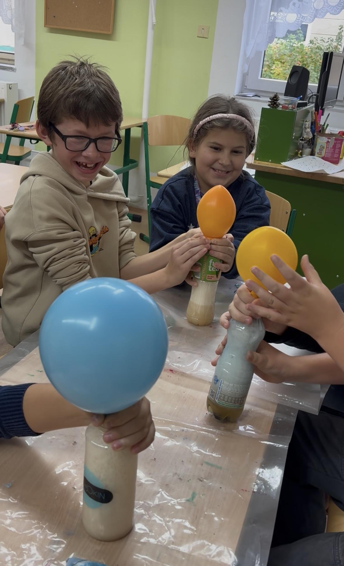 Říjen se nesl ve znamení objevování a tvořivosti. Vyzkoušeli jsme si několik jednoduchých pokusů, například nafukování balónků pomocí směsi jedlé sody a octa. Děti s nadšením sledovaly, jak se balónky samy zvedají, a přitom si ověřily, že i věda může být zábavná.