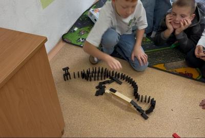 Kromě pokusů jsme stavěli z různých materiálů. Děti společně tvořily věže, stavby i vlastní nápady a učily se spolupracovat, hledat rovnováhu a nebát se zkoušet nové postupy. Nešlo jen o výsledný výrobek, ale hlavně o trpělivost, přesnost a radost z úspěchu.