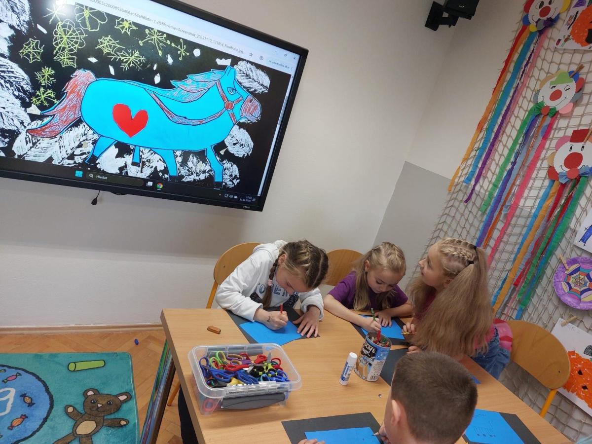 Nechybělo ani tvoření – vyráběli jsme papírové koníky, lucerničky a podzimní dekorace. Při práci panovala příjemná atmosféra a děti si vyzkoušely různé výtvarné techniky. Nakonec jsme si společně zazpívali několik martinských písniček a povídali si o tom, jak můžeme i my být k ostatním ohleduplní a laskaví – tak jako byl svatý Martin.