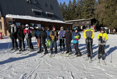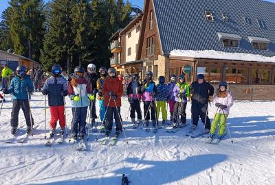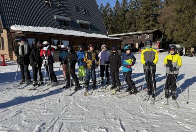V Herbertově nás tradičně uvítal milý personál. Zabydleli jsme se v útulných pokojích a těšili se na oběd. Výborné rizoto nám dodalo tak potřebné síly pro odpolední výcvik. První den na sjezdovce znamenal rozřazení do skupin a následné jízdy na prázdných, perfektně upravených sjezdovkách. Obloha snášela další a další sněhovou nadílku a my se radovali z našich prvních lyžařských úspěchů.