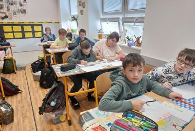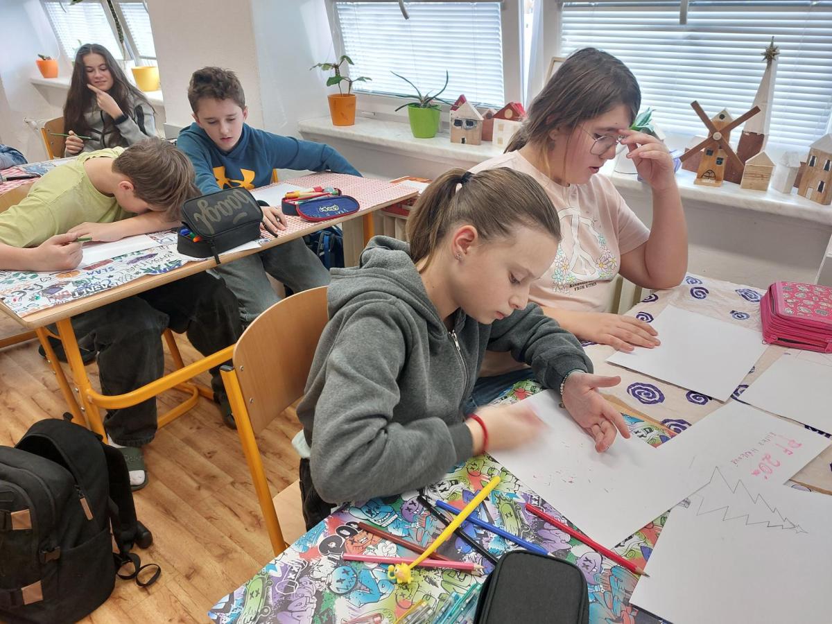 I v hodinách výtvarné výchovy jsme pak navázali, žáci kreslili svůj nejlepší dárek a zážitek z prázdnin, o kterém ostatním povyprávěli. Učíme se vyjadřovat před ostatními, odbourat ostych, umět sdílet a také si naslouchat.