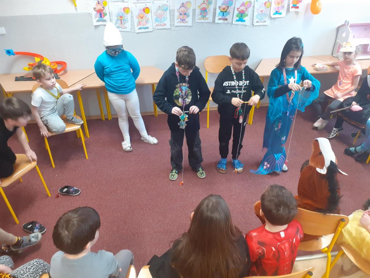 Děti si vyrobily papírové masky a společně jsme si užili odpoledne plné zábavy a her. A protože děti z 2. oddělení tvoří sportovní a živý kolektiv, využili jsme ke sportovním soutěžím a aktivitám také gymnastický sál. Nechyběly balónky a sladká odměna. Prostě karneval jak má být!