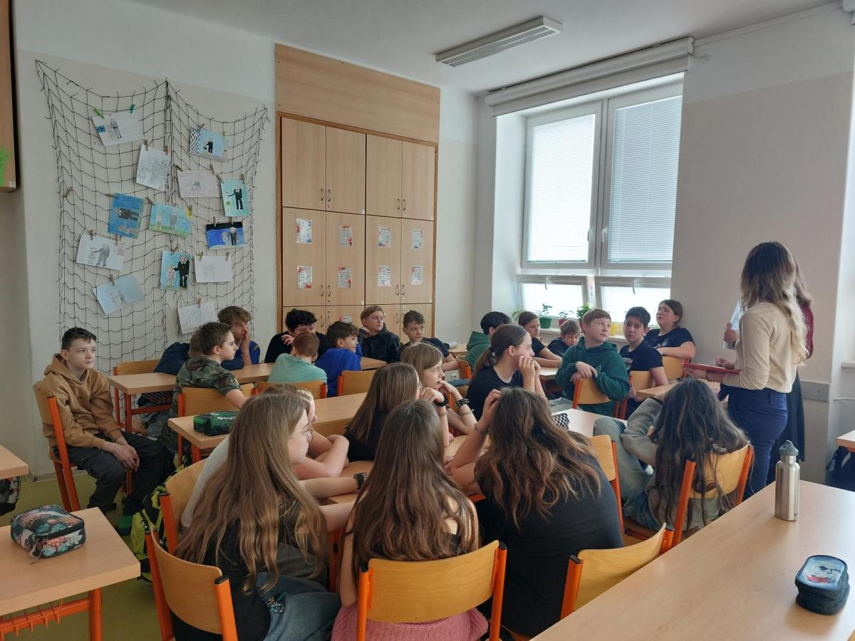 Žáci se formou kvízu a společného povídání s pracovnicemi organizace CROSS dozvěděli, že v našem městě funguje nízkoprahový klub. Je určen dětem a mládeži od 12 let do 26 let ze Strakonic, kteří zde mohou smysluplně trávit volný čas, setkávat se zde s kamarády a využít podporu pracovníků, kteří dokáží poradit v obtížných situacích, pomoci se školou, nebo dát podporu, když se jim nedaří. Zájemci mohou přijít i anonymně a zdarma využívat poskytované aktivity.