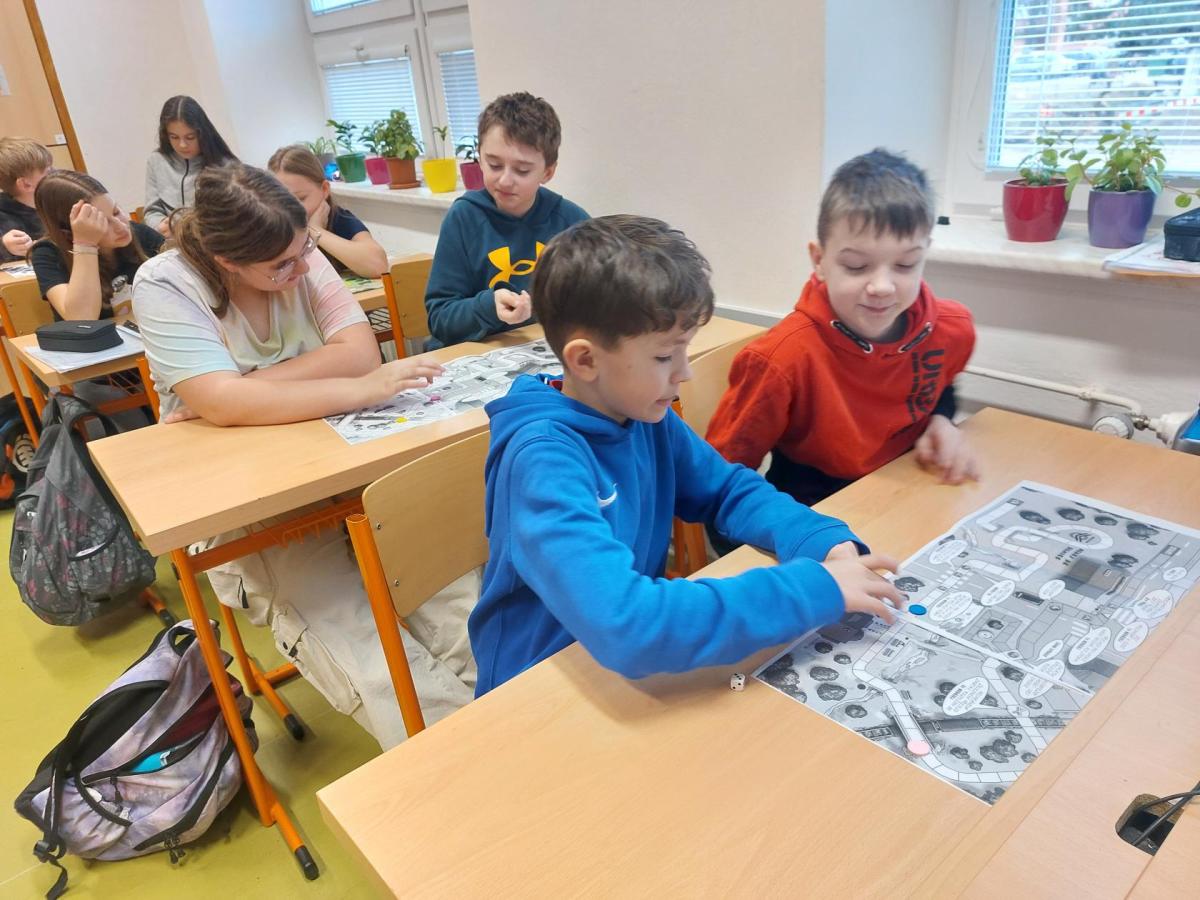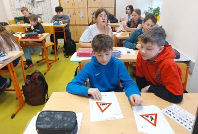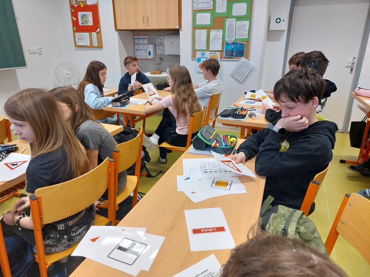 V hodinách výchovy ke zdraví se věnujeme mnoha tématům. Tentokrát jsme zabrousili do dopravní výchovy. Rozebírali jsme společně, jak moc je důležité chovat se zodpovědně v silničním provozu. Co bychom měli dobře znát jako cyklisti i jako chodci jsou mimo jiné dopravní značky. Snažili jsme si je dobře osvojit a zpestřili jsme si hodinu i tématicky zaměřenou dopravní hrou.