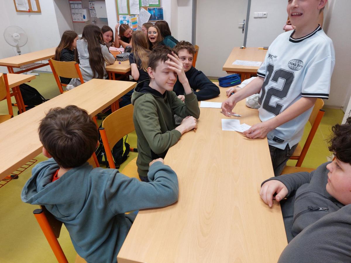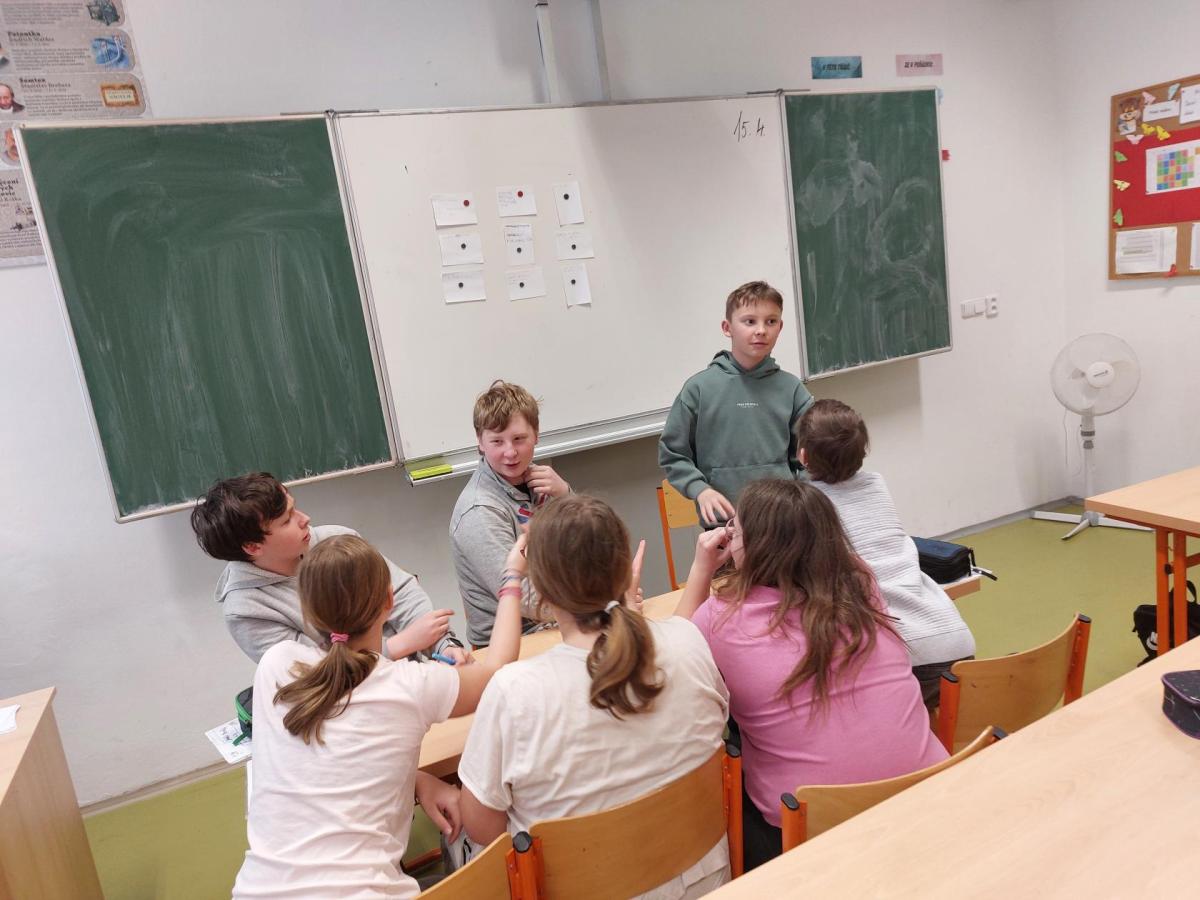 Jak vyjádřit podporu...v další KiVa lekci jsme se učili, jak vyjádřit podporu šikanovanému spolužákovi, proč může být téžké se za oběť šikany postavit a že i malým gestem nebo činem můžeme šikanovanému hodně pomoci. Prakticky jsme si zkoušeli modelové situace, jak se při šikaně zachovat. Scénáře psali sami žáci a o tématech jsme nejen diskutovali, ale došlo i na dramatizaci. Scénky děti bavily. Sedmé pravidlo KiVa úmluvy zní: Šikanované žáky budeme bránit a podporovat je.