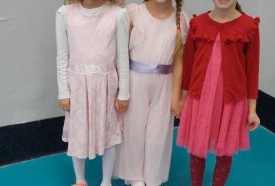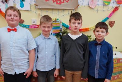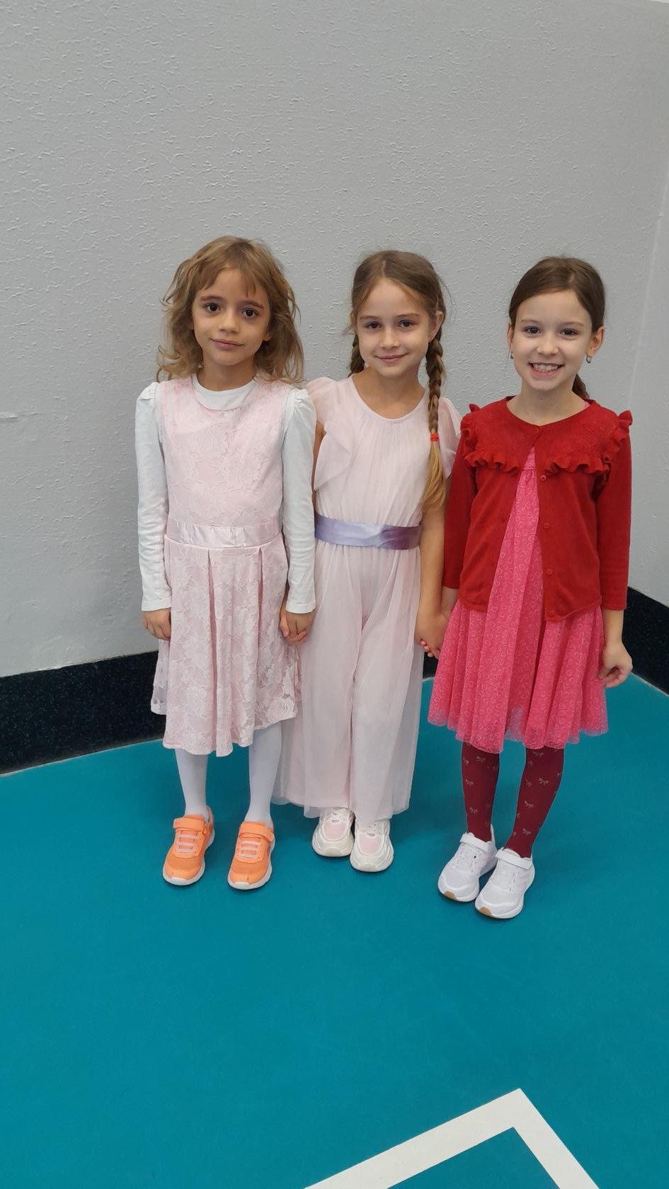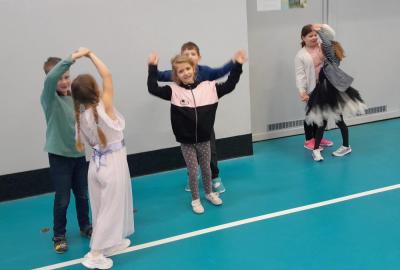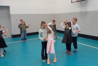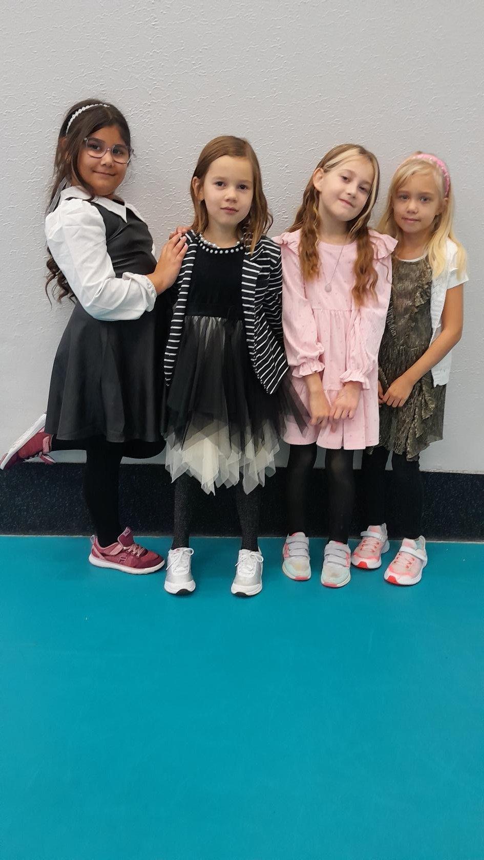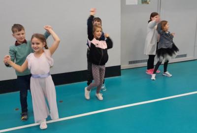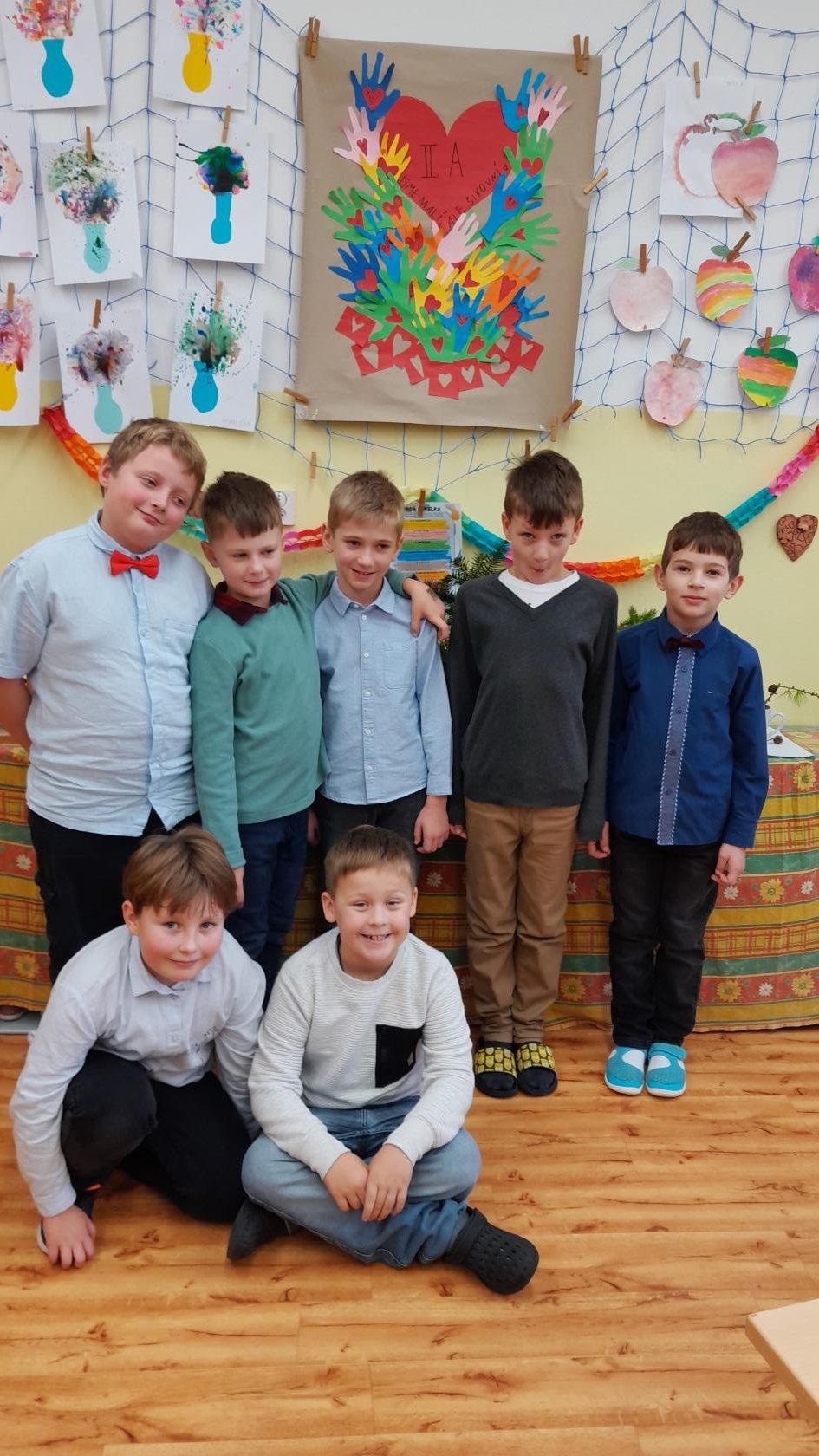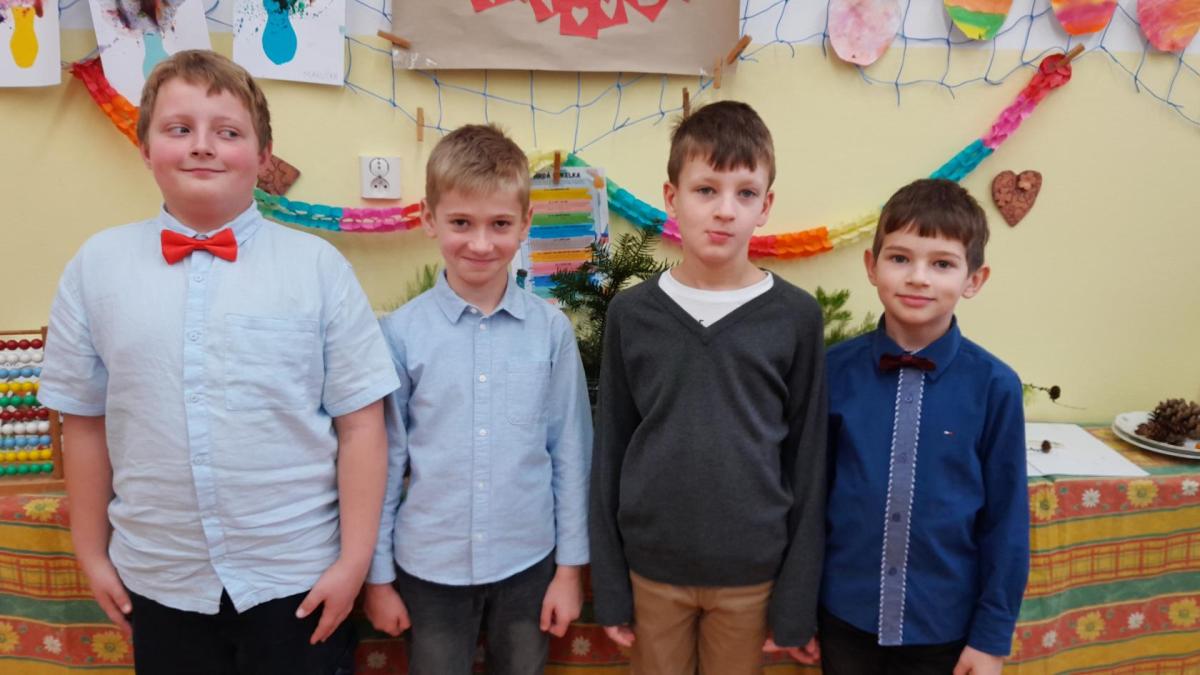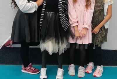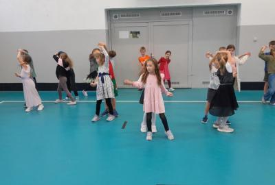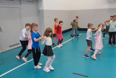 Naprostá většina dětí přišla ve slavnostním oblečení a protože jsme měli první hodinu tělocvik, zkusili jsme si, jaké to bude jednou v tanečních. Naučili jsme se mazurku a předvedli si některé jednoduché taneční kroky.