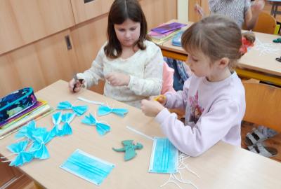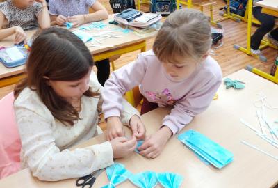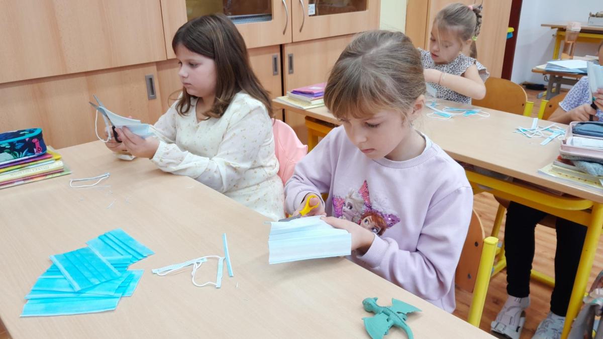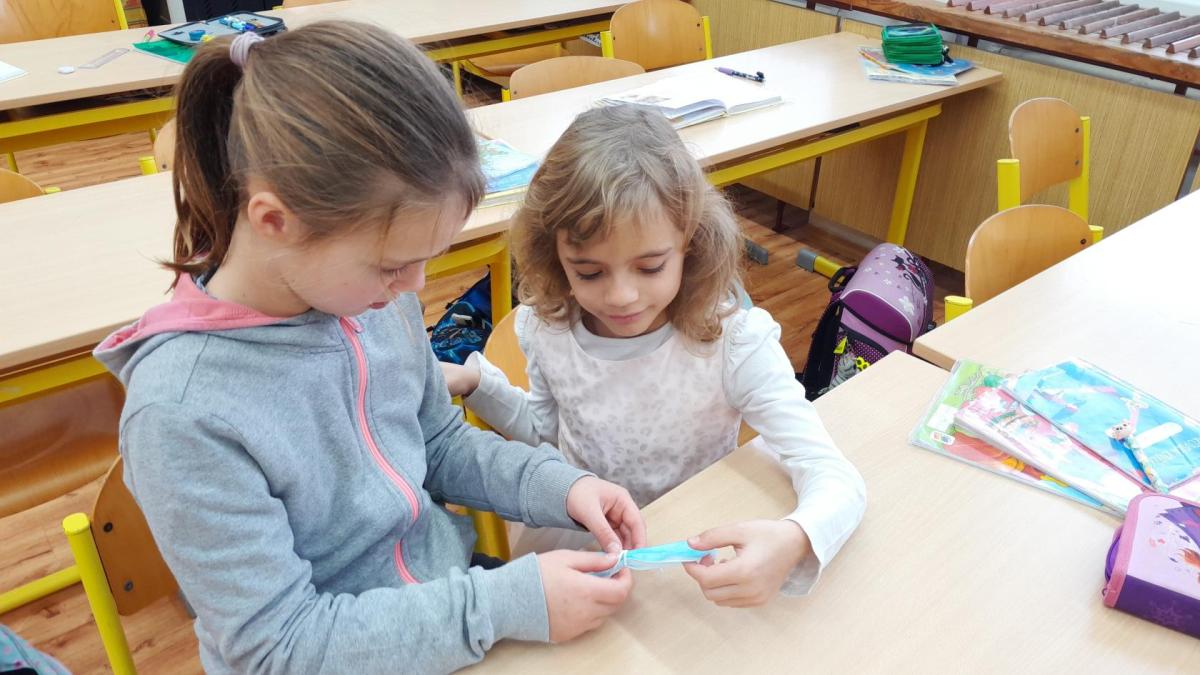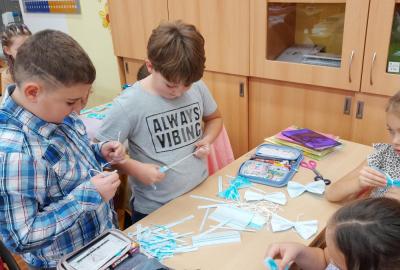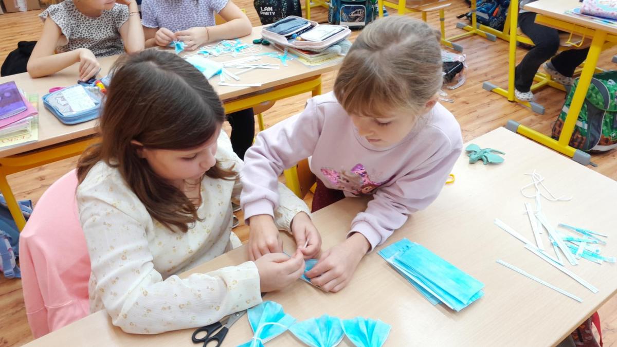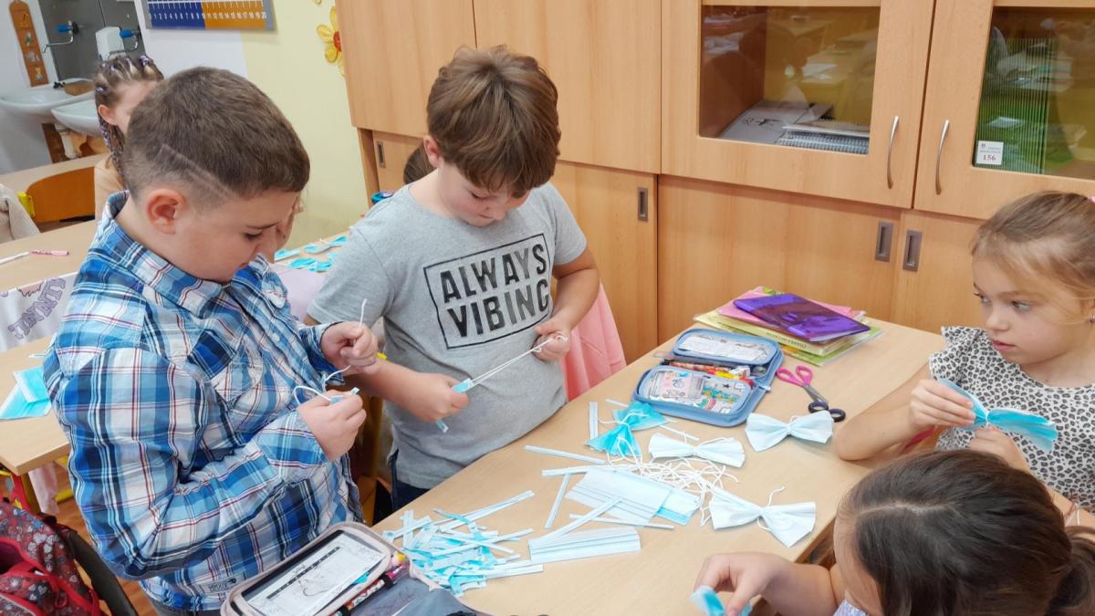 Naše ozdoby vyrobily z covidových roušek kromě jiných tříd i šikovné ruce dětí ze 2.A.