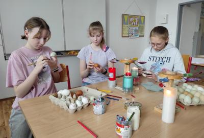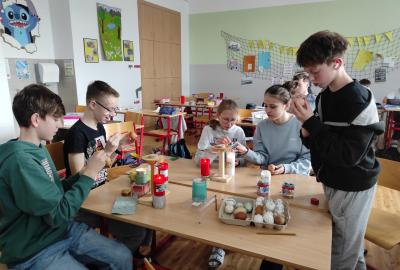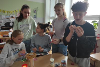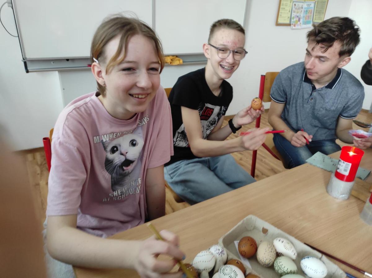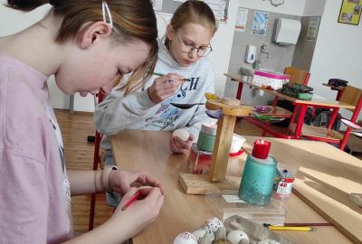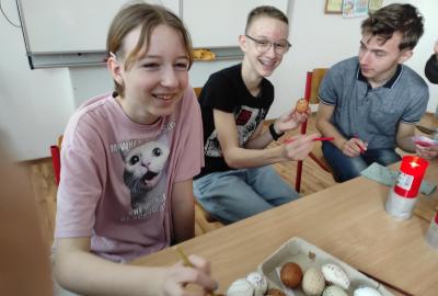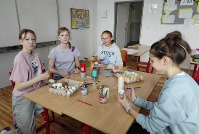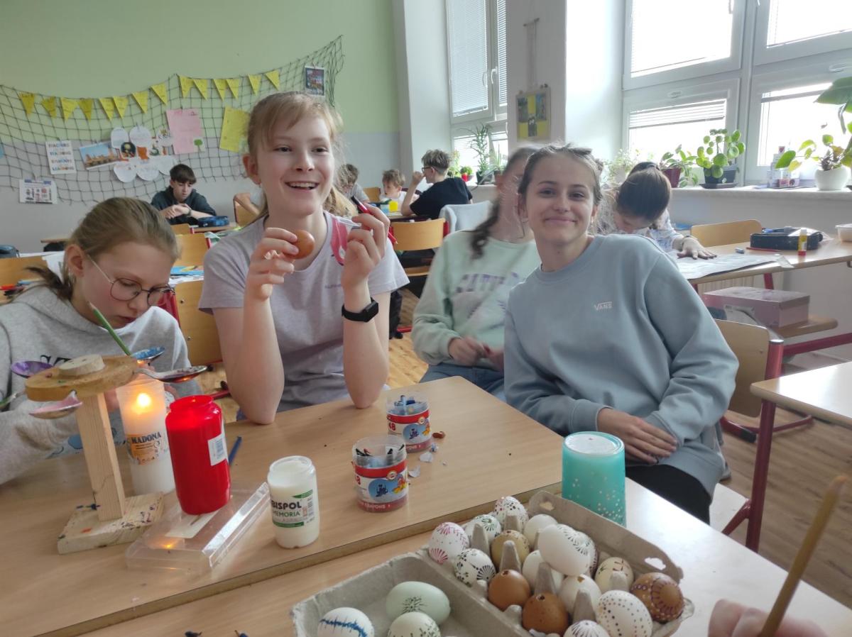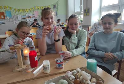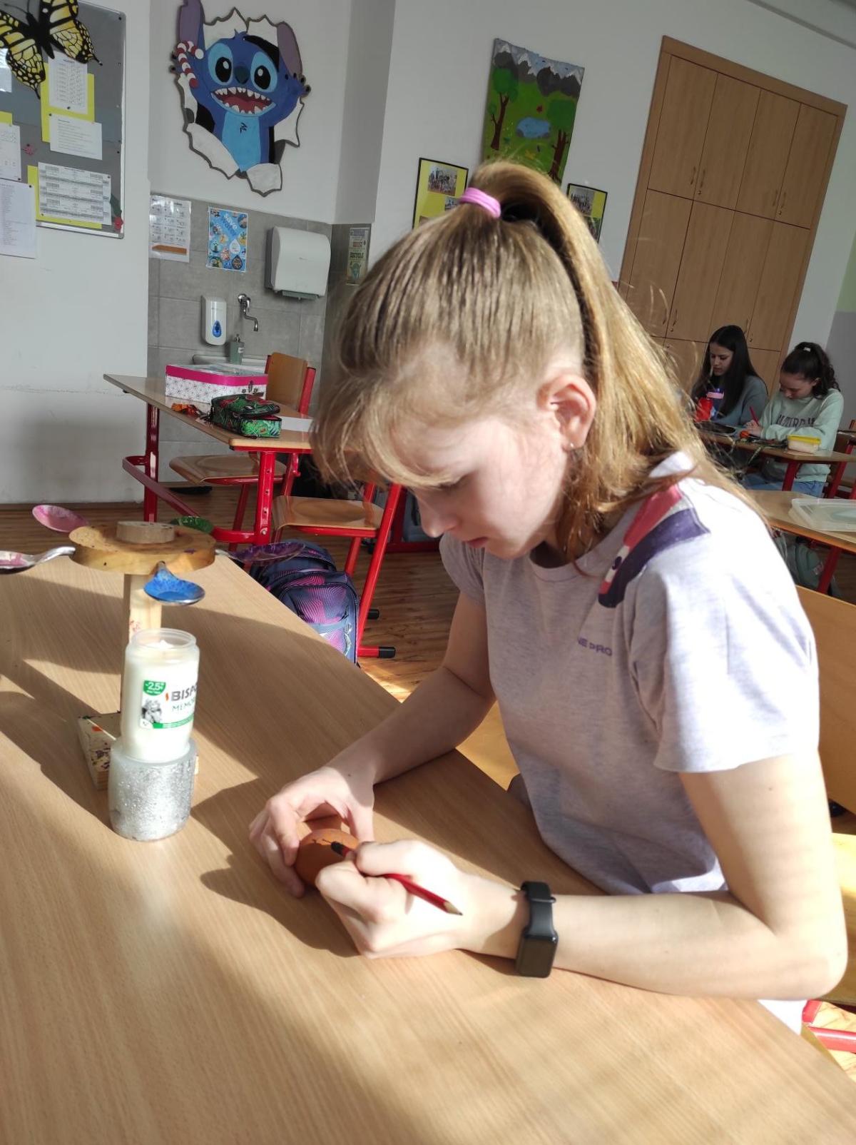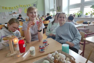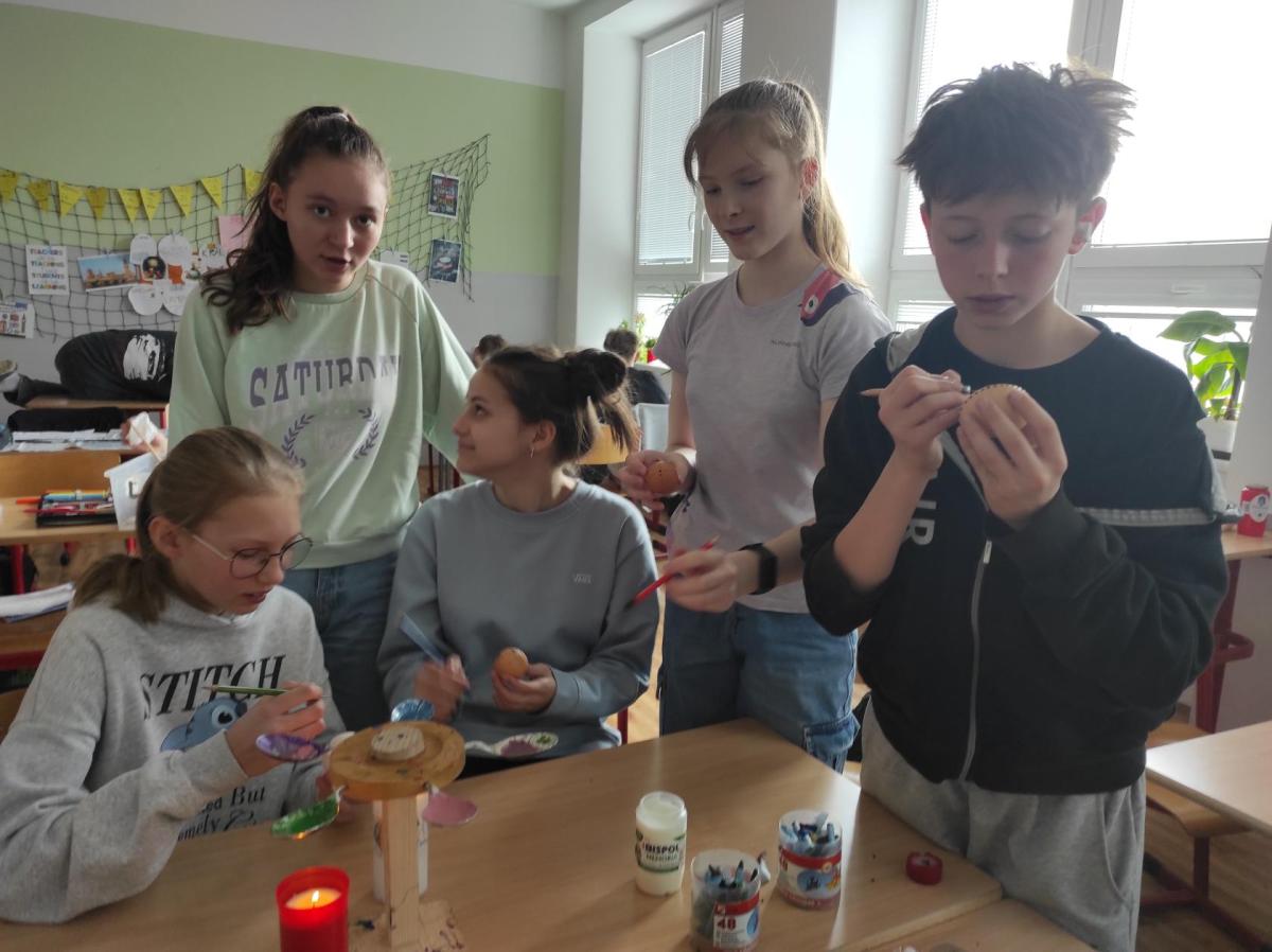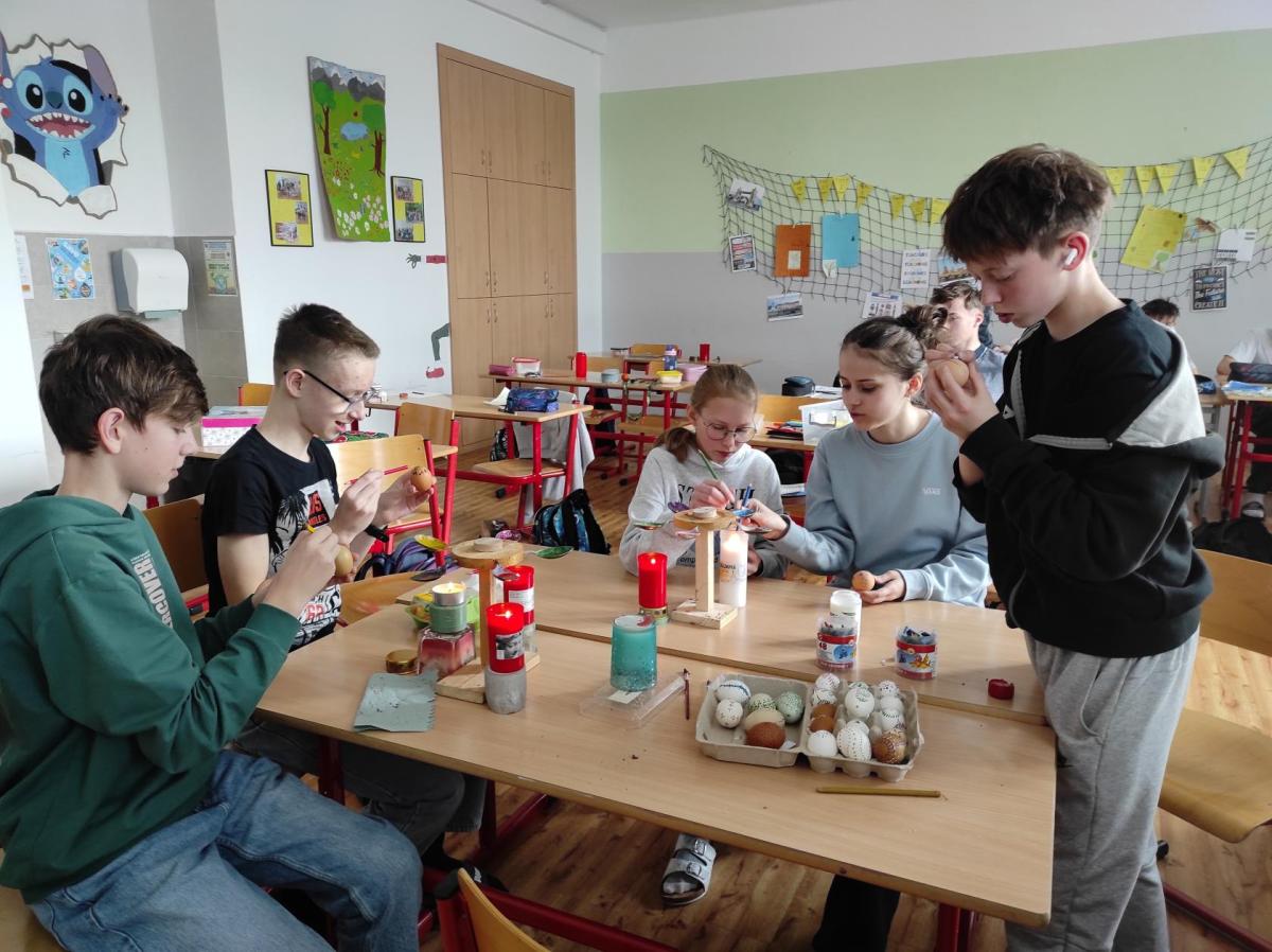 I 7.M si tento týden vyzkoušela tradiční techniku zdobení velikonočních kraslic. Barvení vajíček barevnými vosky se dětem zalíbilo a se svými výrobky se zúčastnily Velikonoční soutěže ve školní jídelně.