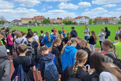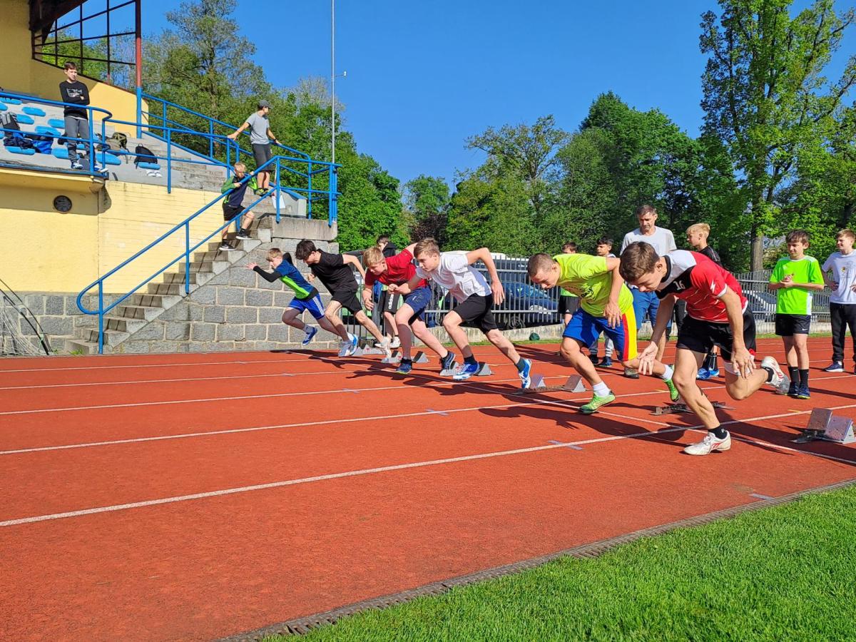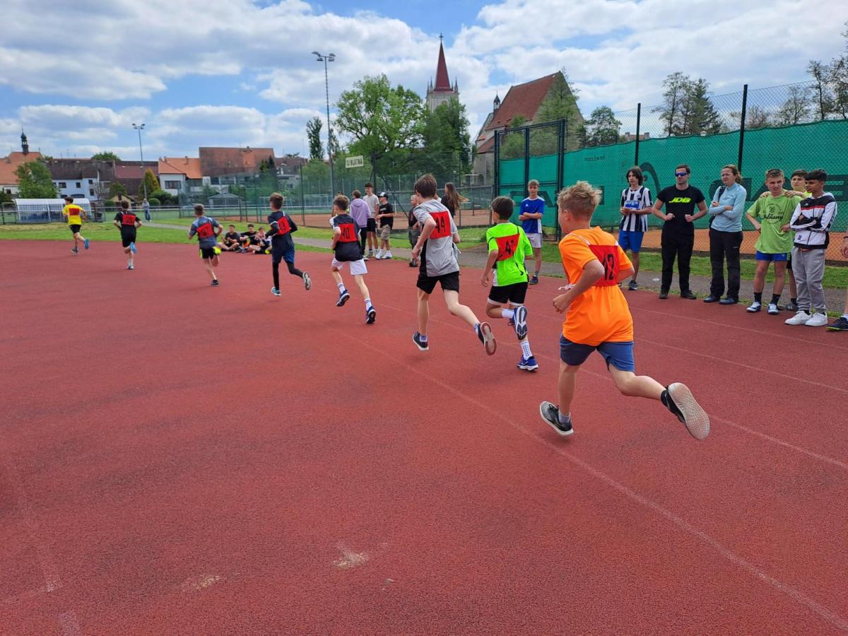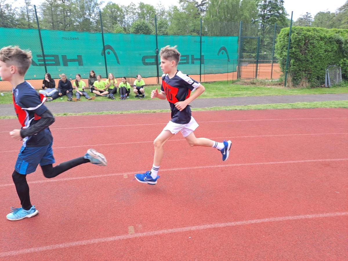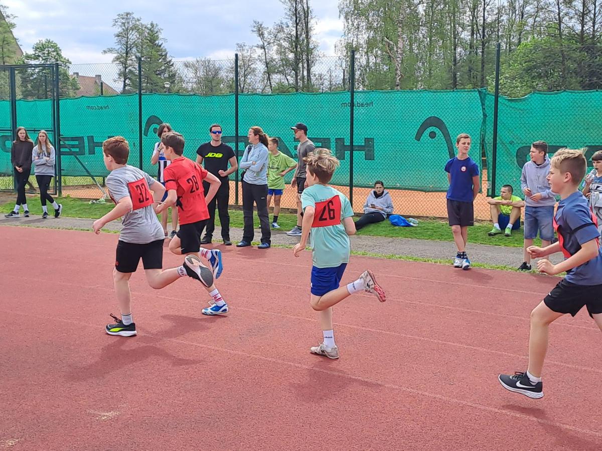 Za slunného počasí se naši sportovci zhostili několika atletických disciplín: 60 m, skok do dálky, skok do výšky, hod kriketovým míčkem, štafeta 4x60 m, mladší žačky běh na 600 m a mladší žáci běh na 1000 m. Žáci a žačky předvedli úžasné a obdivuhodné nasazení hned v první disciplíně v běhu na 60 m: 1. místo - Lucie Němejcová - 8,61 s, 5. místo - Eliška Cibulková - 9,14 s, Andrea Vlčková - 9,48 s, Eliáš Kubíček 9,43 s, Jan Frček 9,60 s, Timon Oliver Bensch 10,36 s