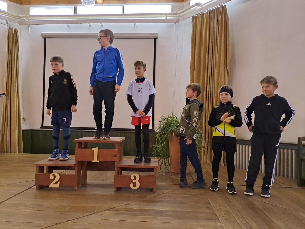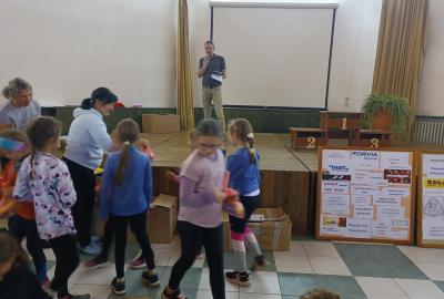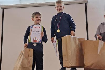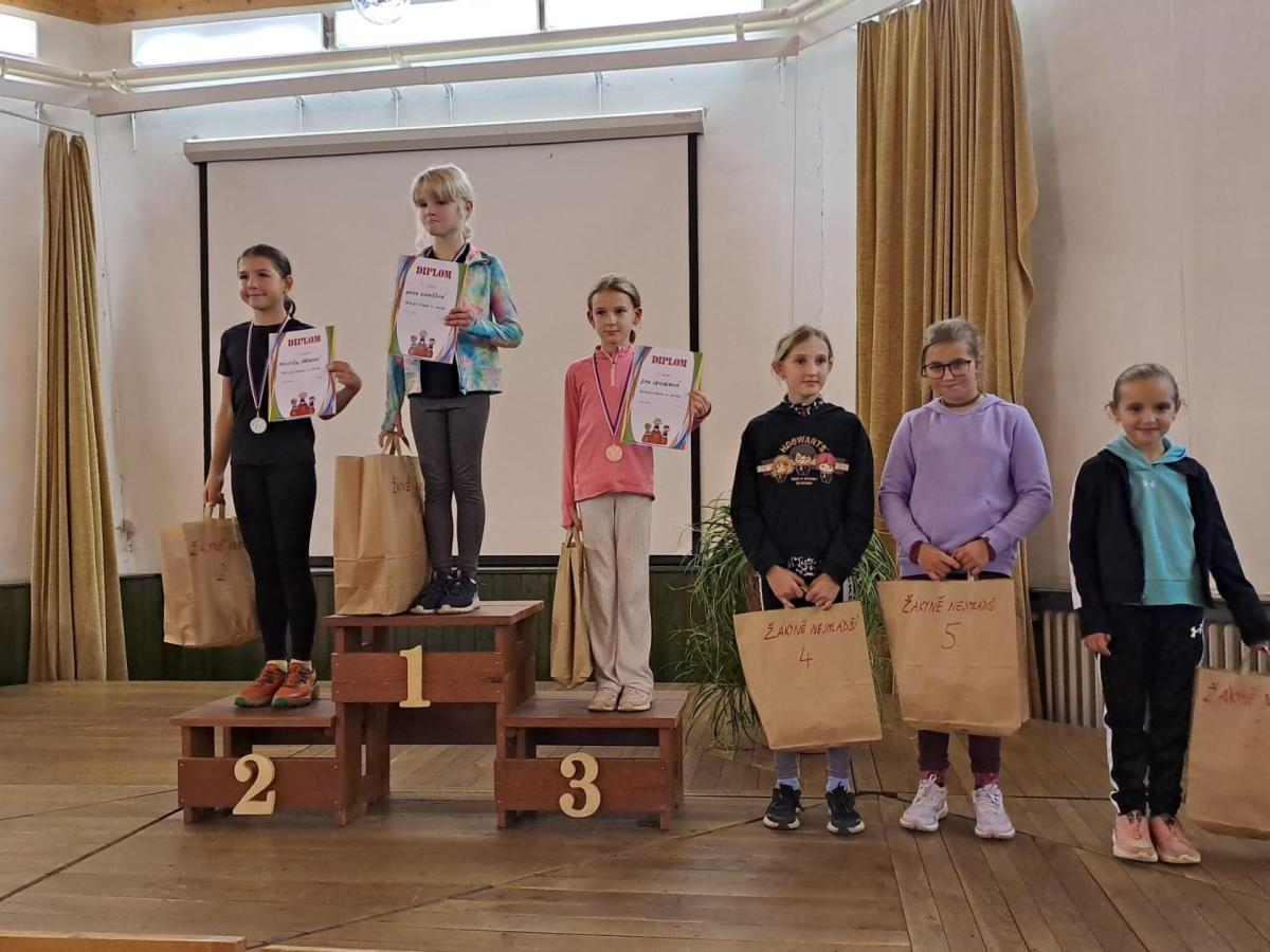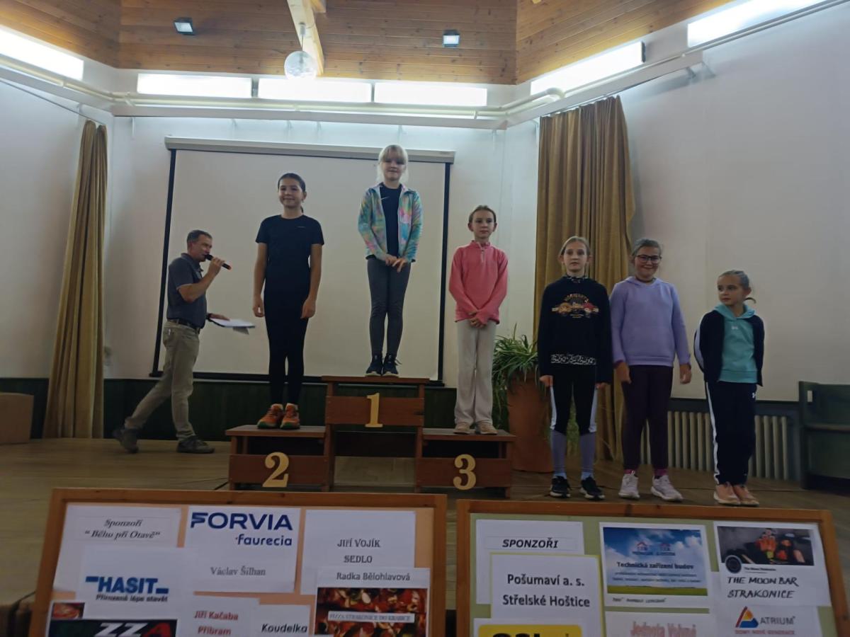 Žáci 1. stupně zahájili závod na trati 400 m. Nejlépe si vedli Luděk Kalina, který kraloval na 1. místě a David Kůrka (oba 2.C) finišující hned za ním na stříbrné pozici. Na trati 680 m zvítězili Anna Kovářová (4.D) a Antonín Kotrč (4.C). Druhé místo vybojovala Kristýna Štěrbová (4.C) a na 3. místě doběhli Ema Vernerová (3.A) a Ondřej Slavíček (4.A). Závod na 800 m skvěle zvládli chlapci, kteří kompletně obsadili stupně vítězů: 1. místo Tomáš Kouba, 2. místo Daniel Vaněk (oba 5.A) a 3. místo Dominik Červeňák (5.D).